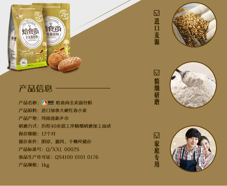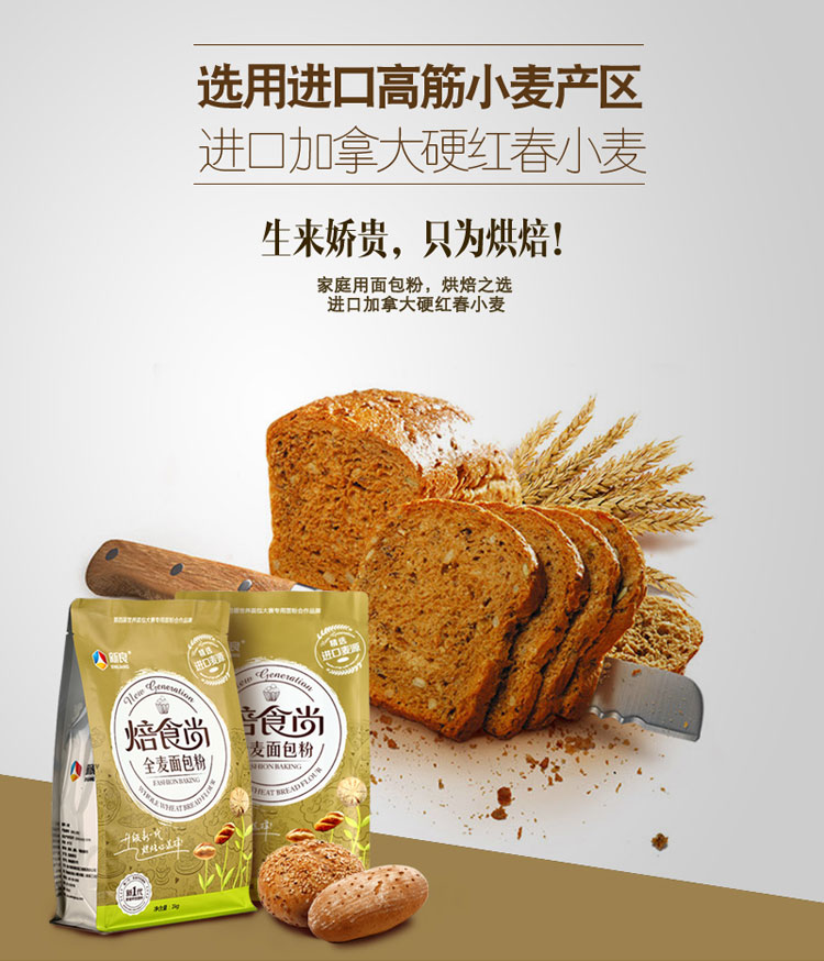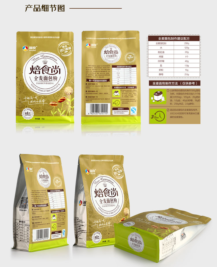 新良焙食尚全麦面包粉 高筋面粉 家用烘焙原材料吐司小麦面粉 1kg