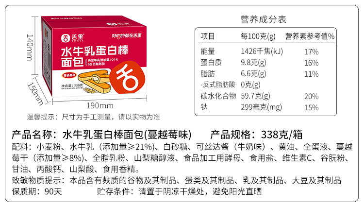 舌里水牛乳蛋白棒面包1箱*338g(蔓越莓味)
