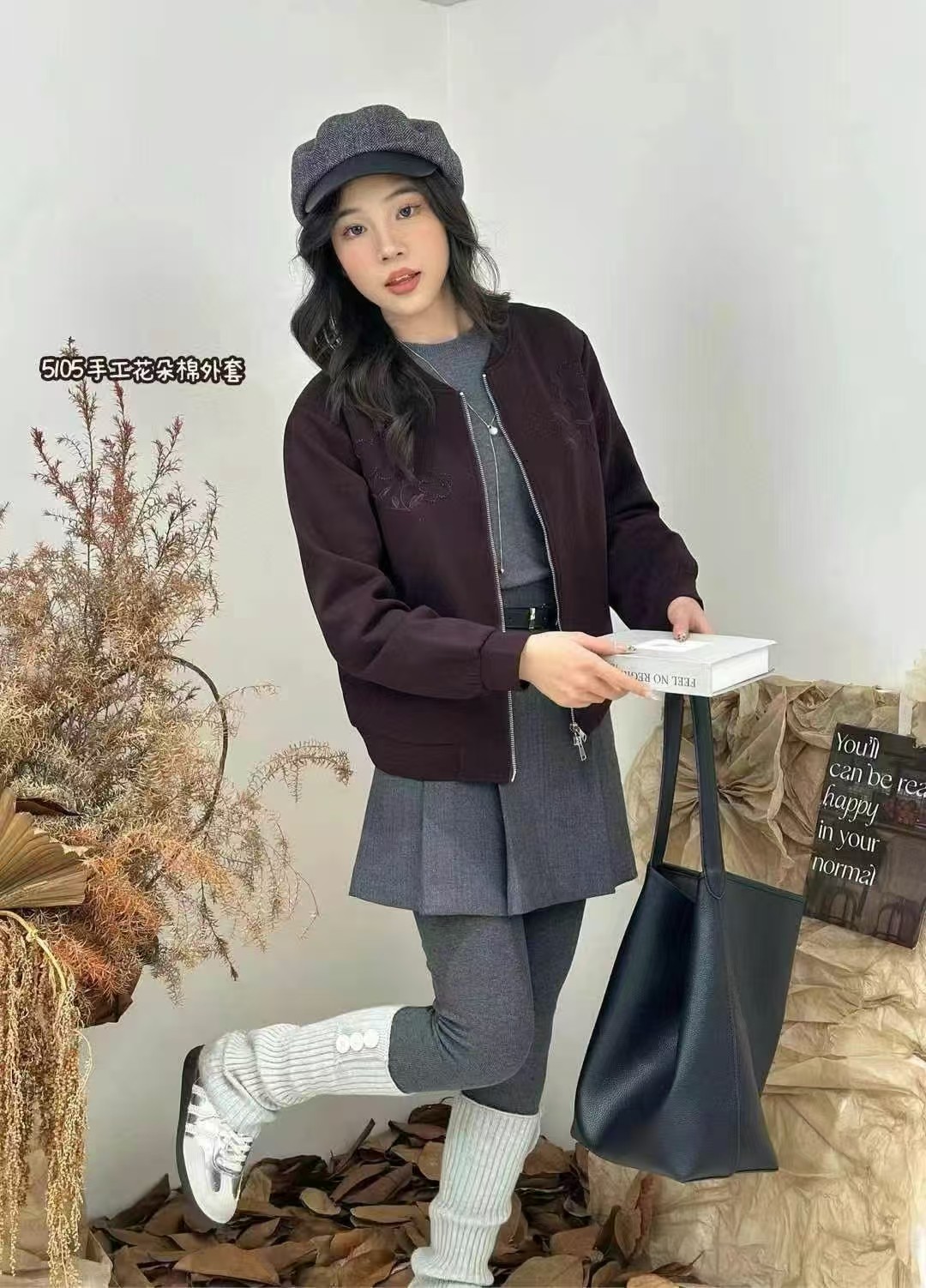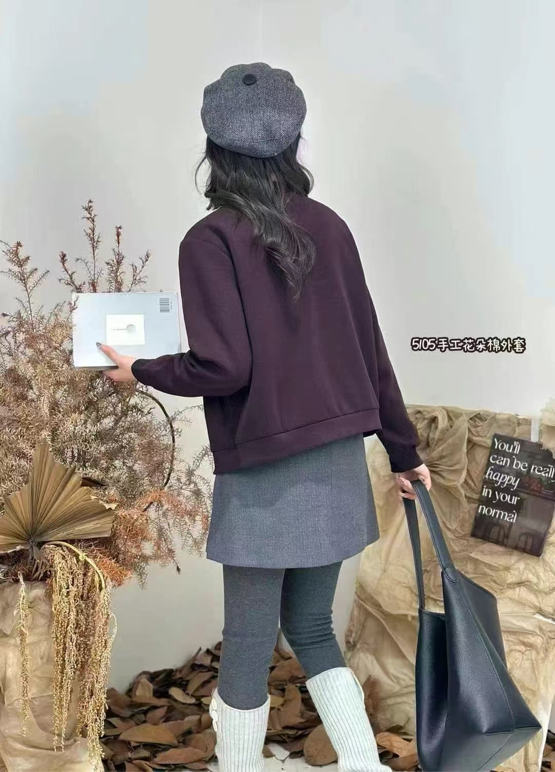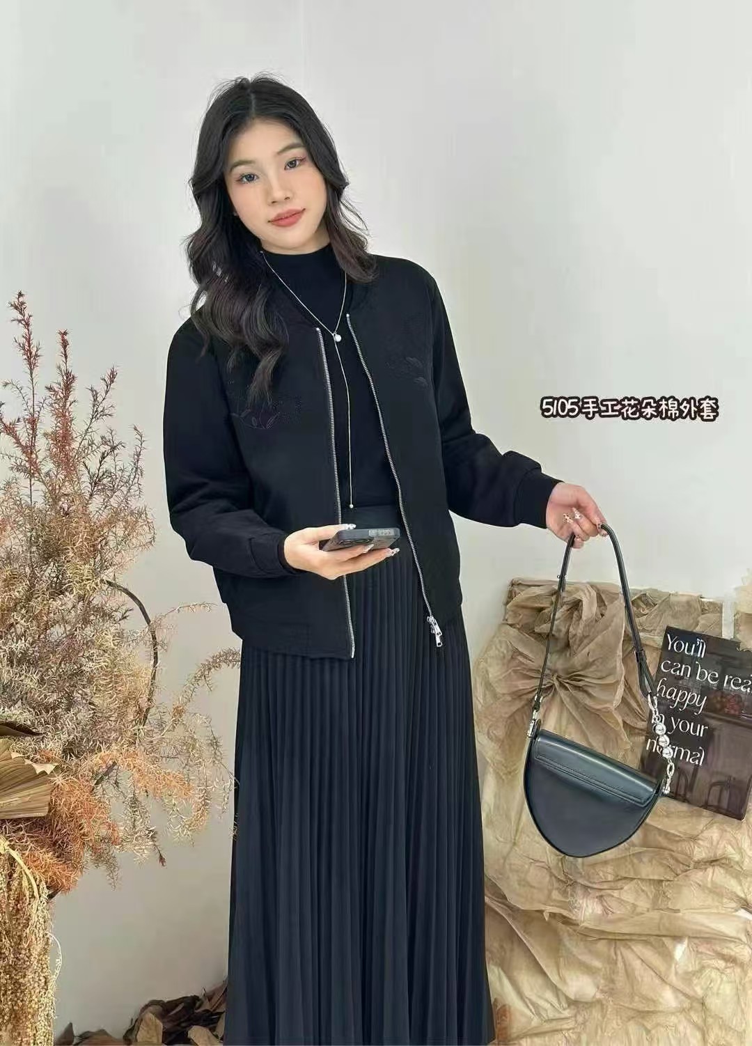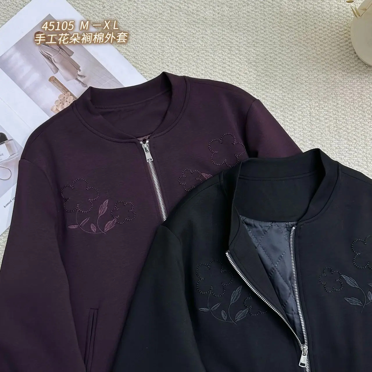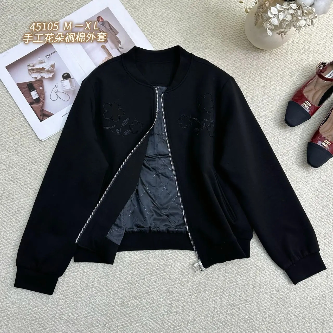 W45105#手工花朵裥棉外套