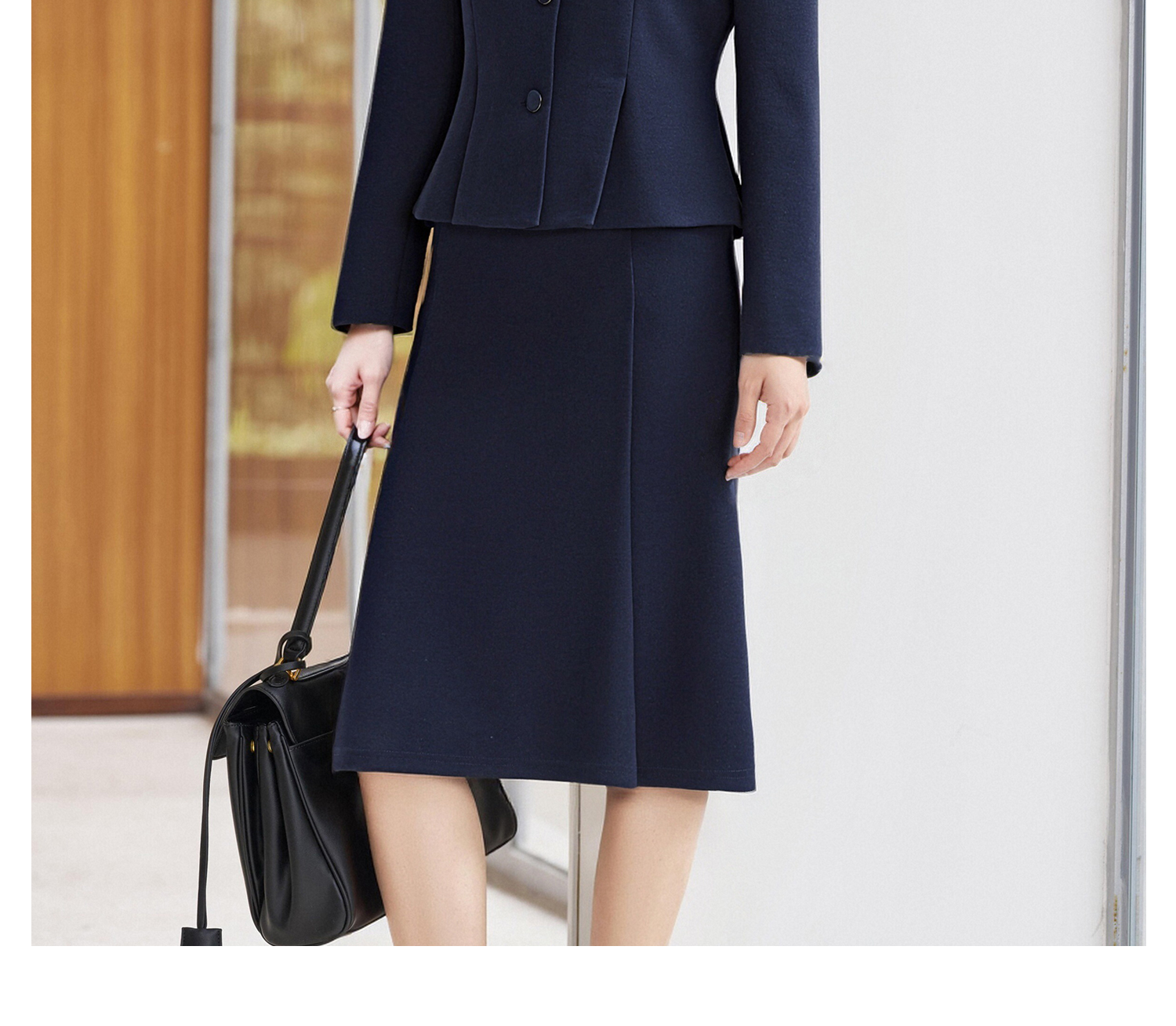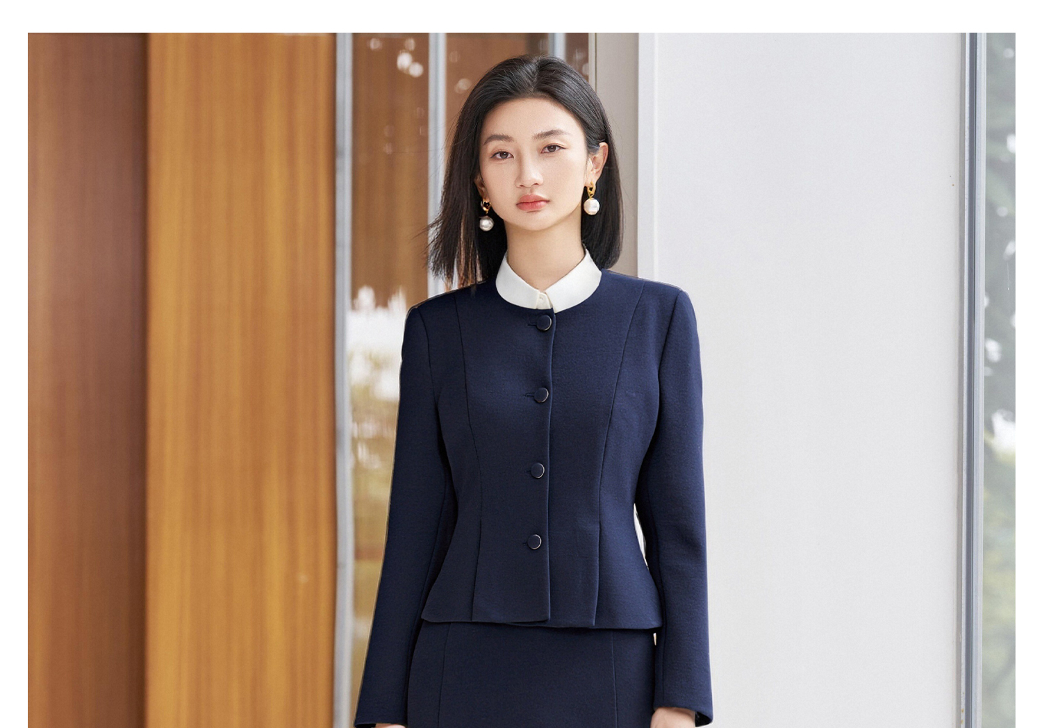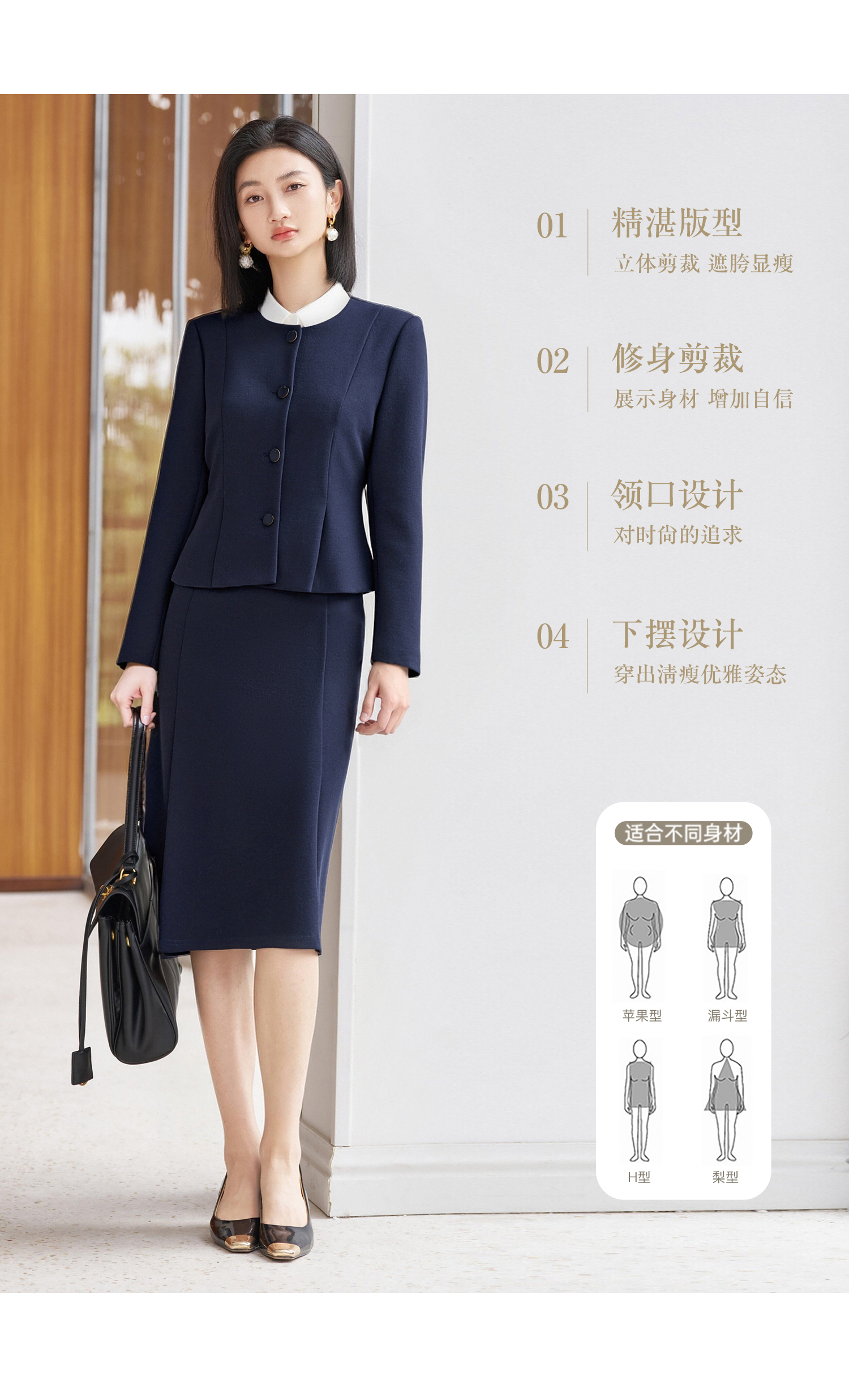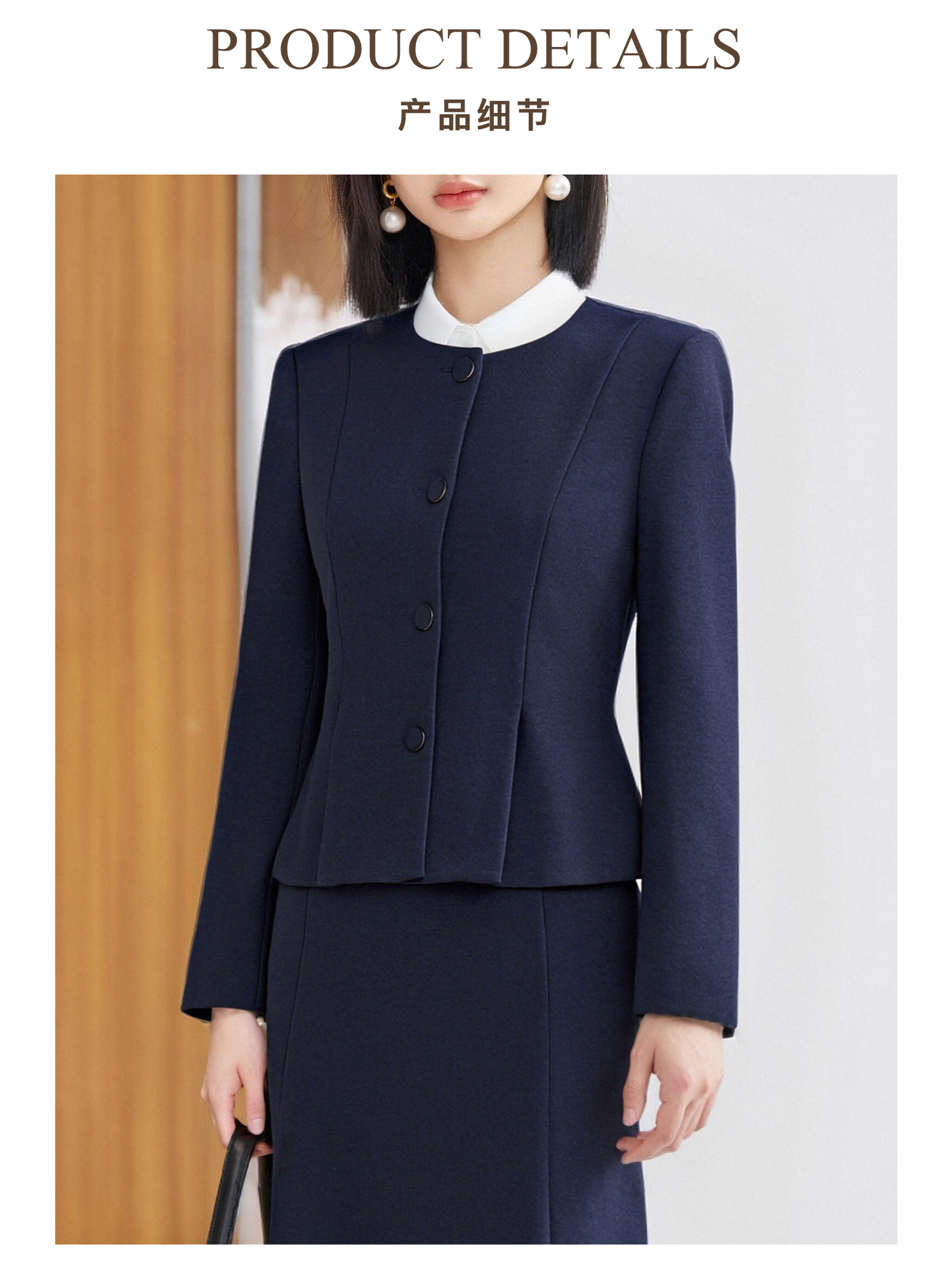 米思阳2026春季新款知性气质时尚修身立裁圆领单排扣短外套+高腰鱼尾半身裙4534/4533