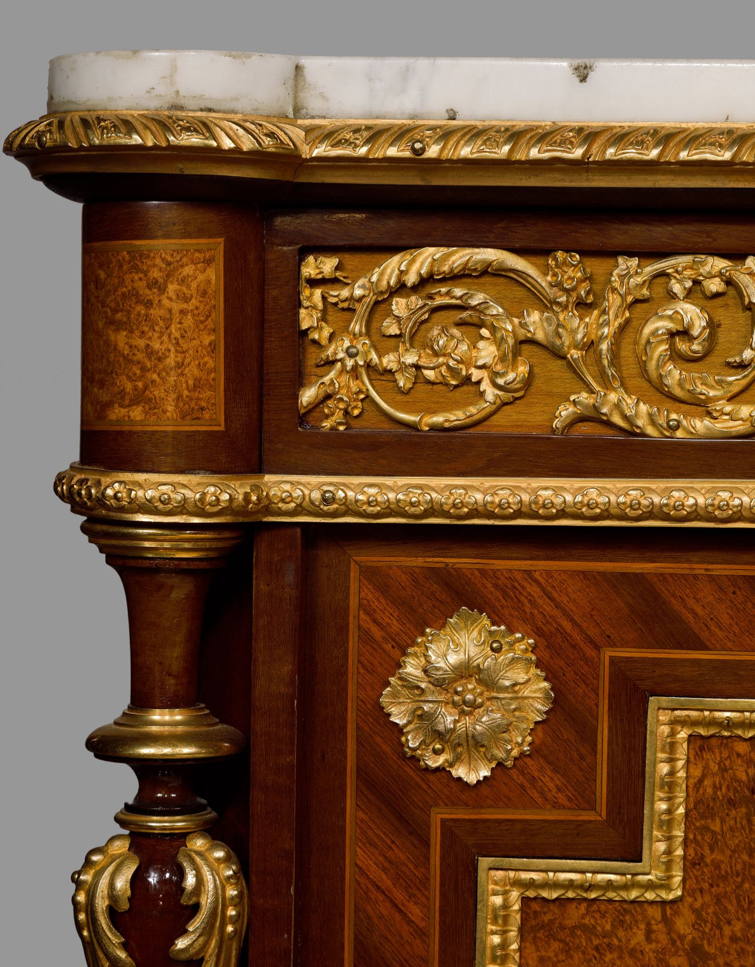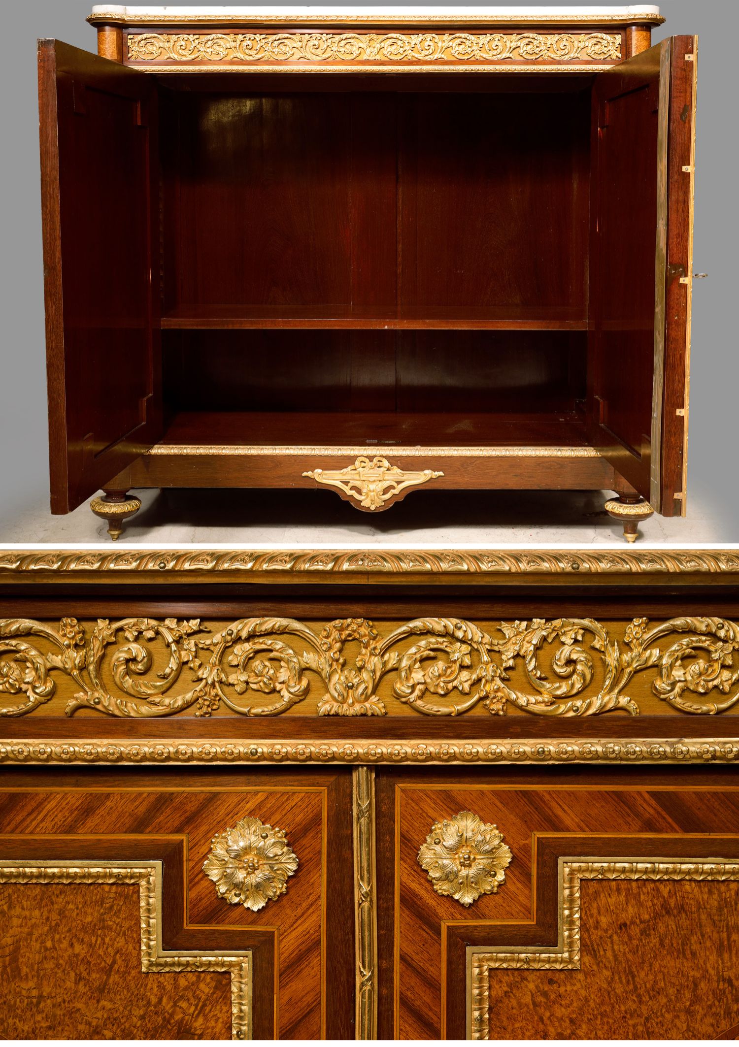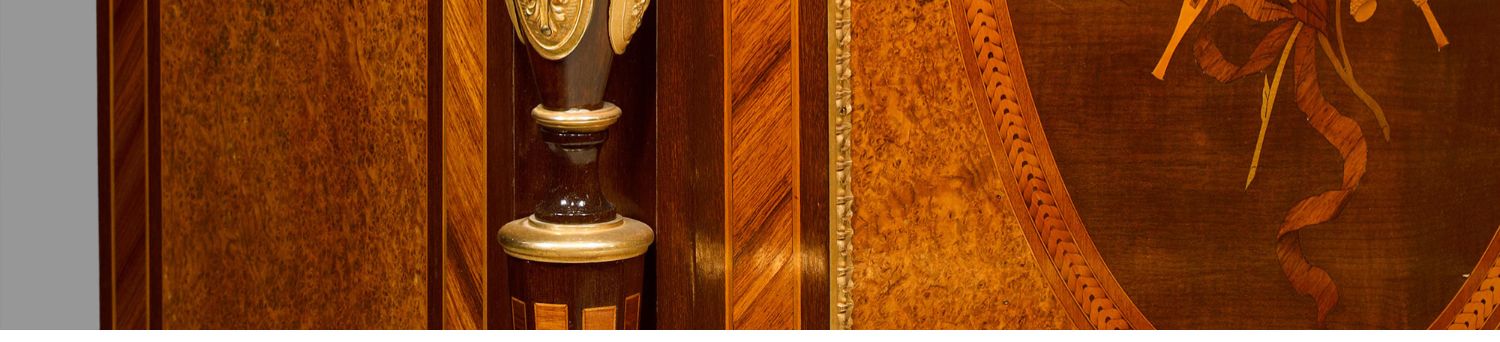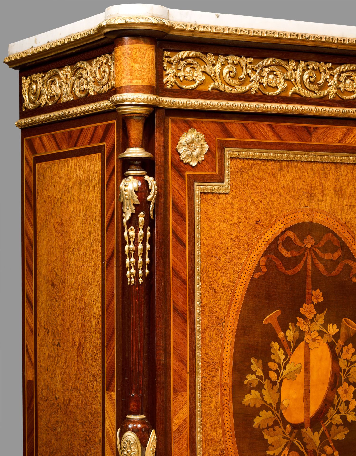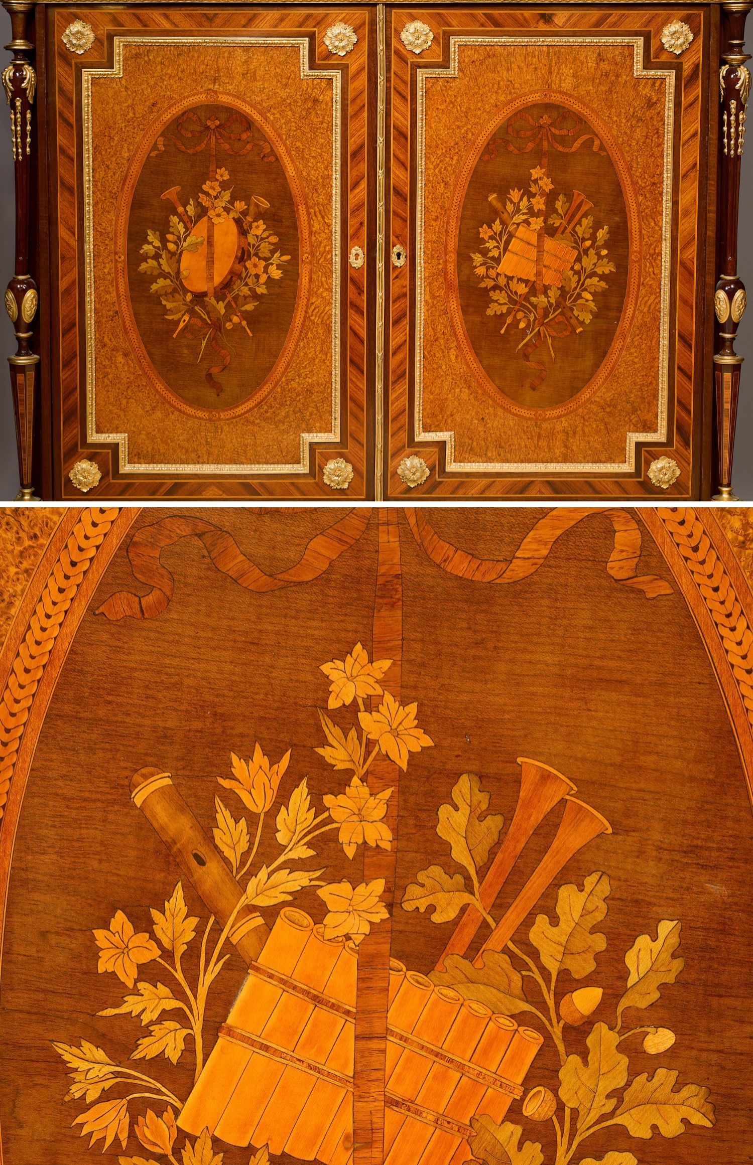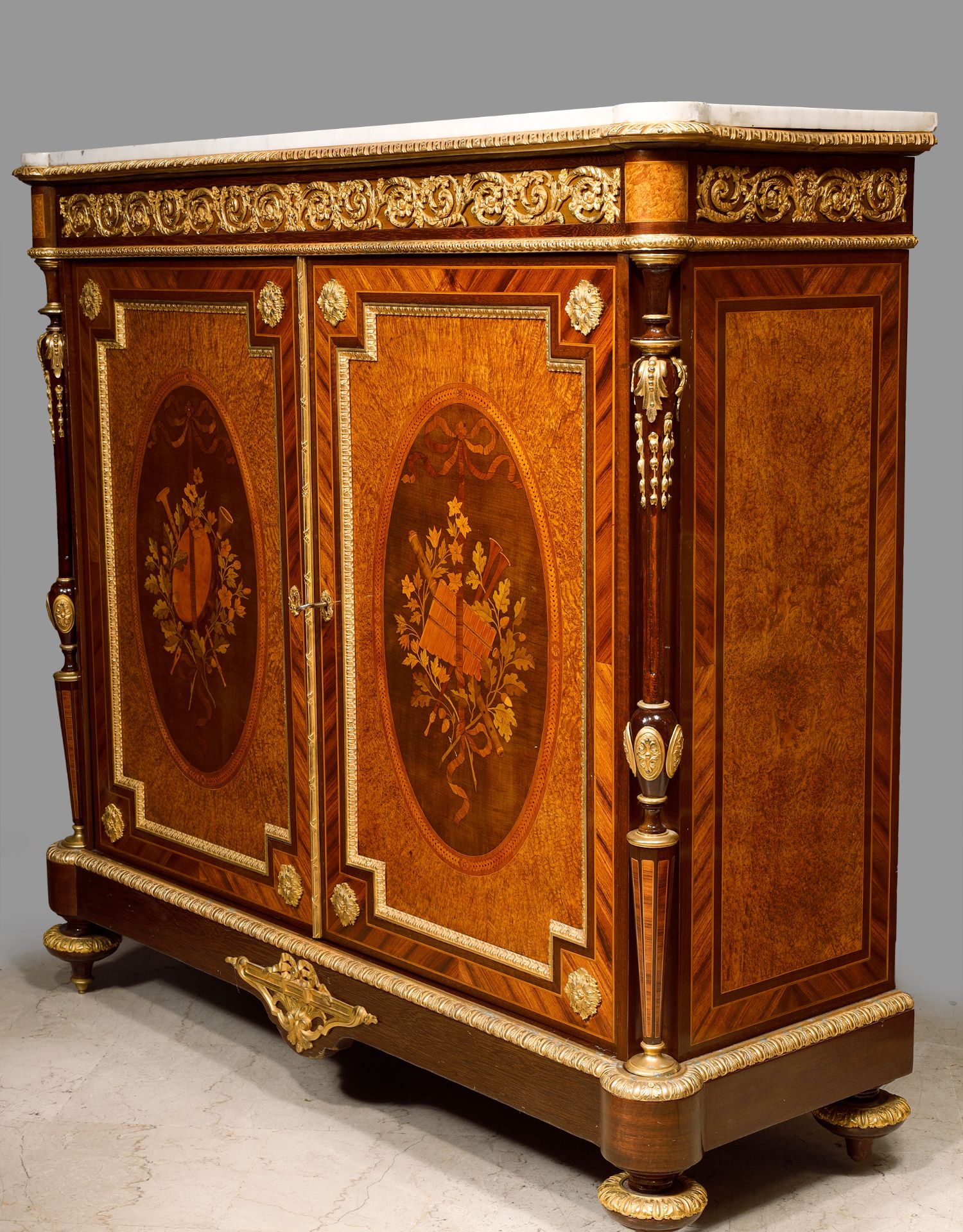 独角鹿西洋古董家具路易十六风格铜鎏金细木镶嵌大理石台面边柜
