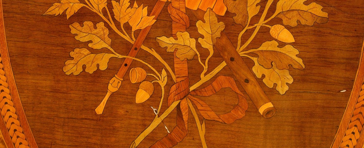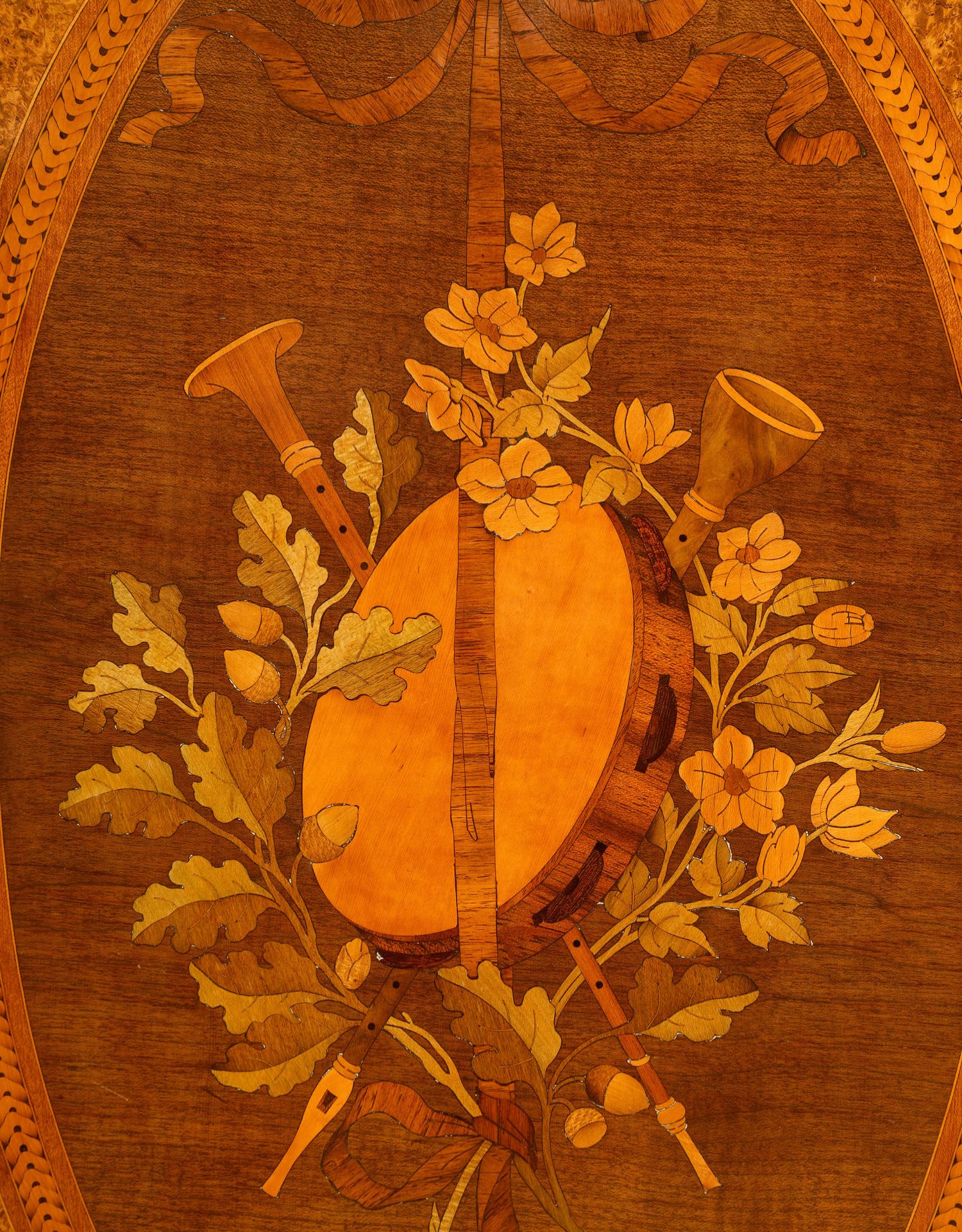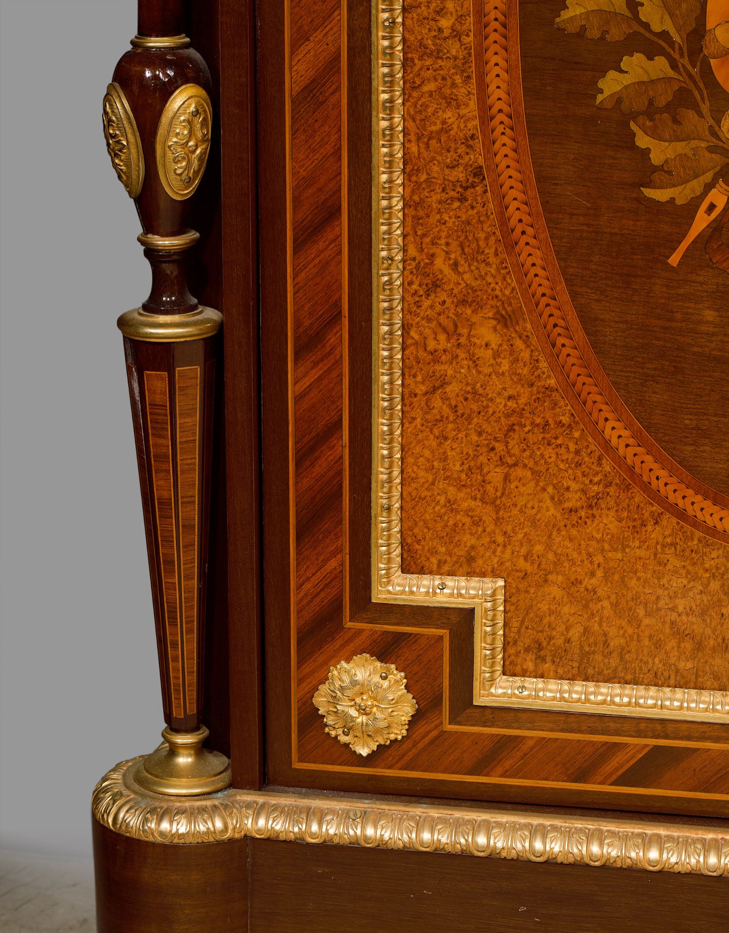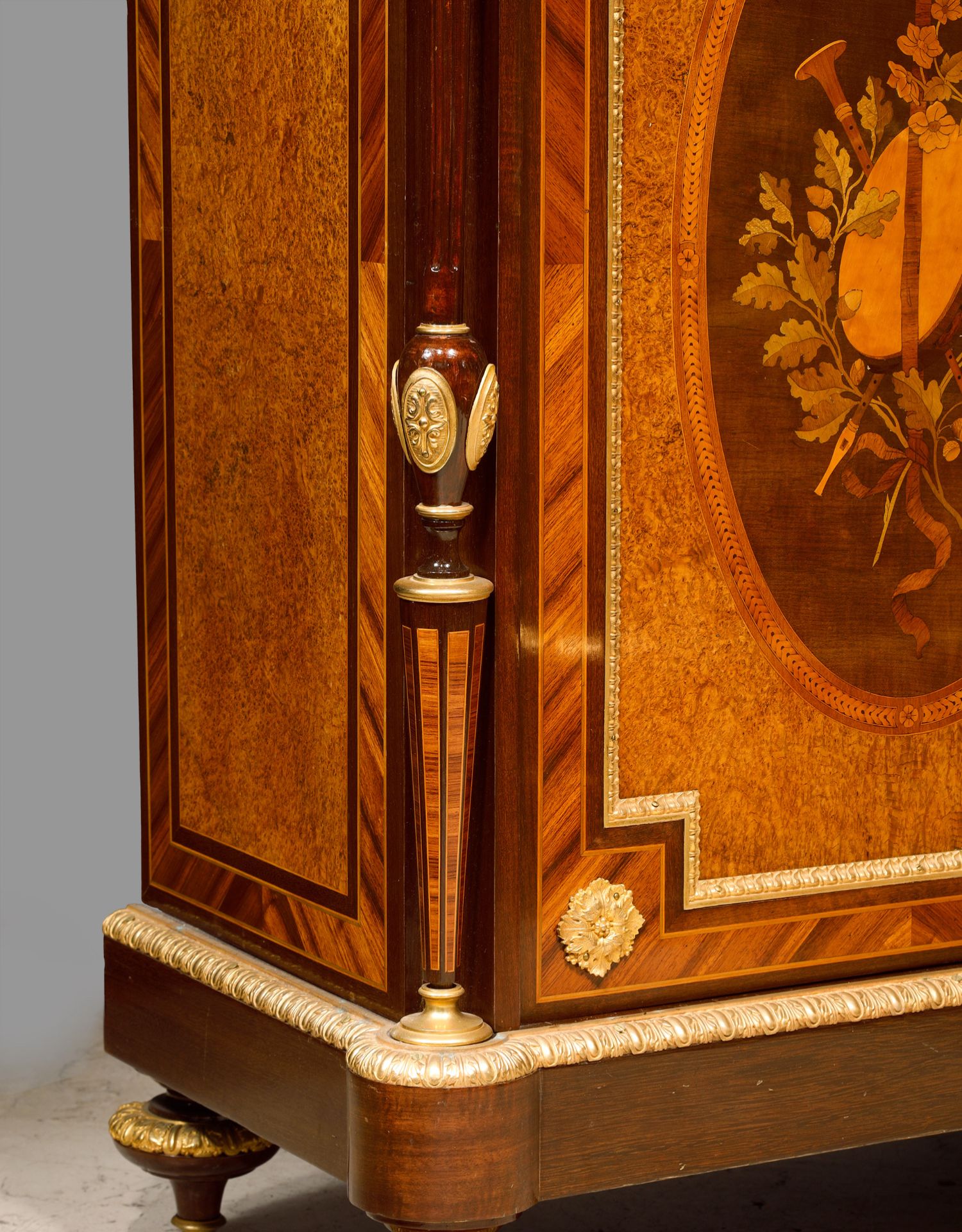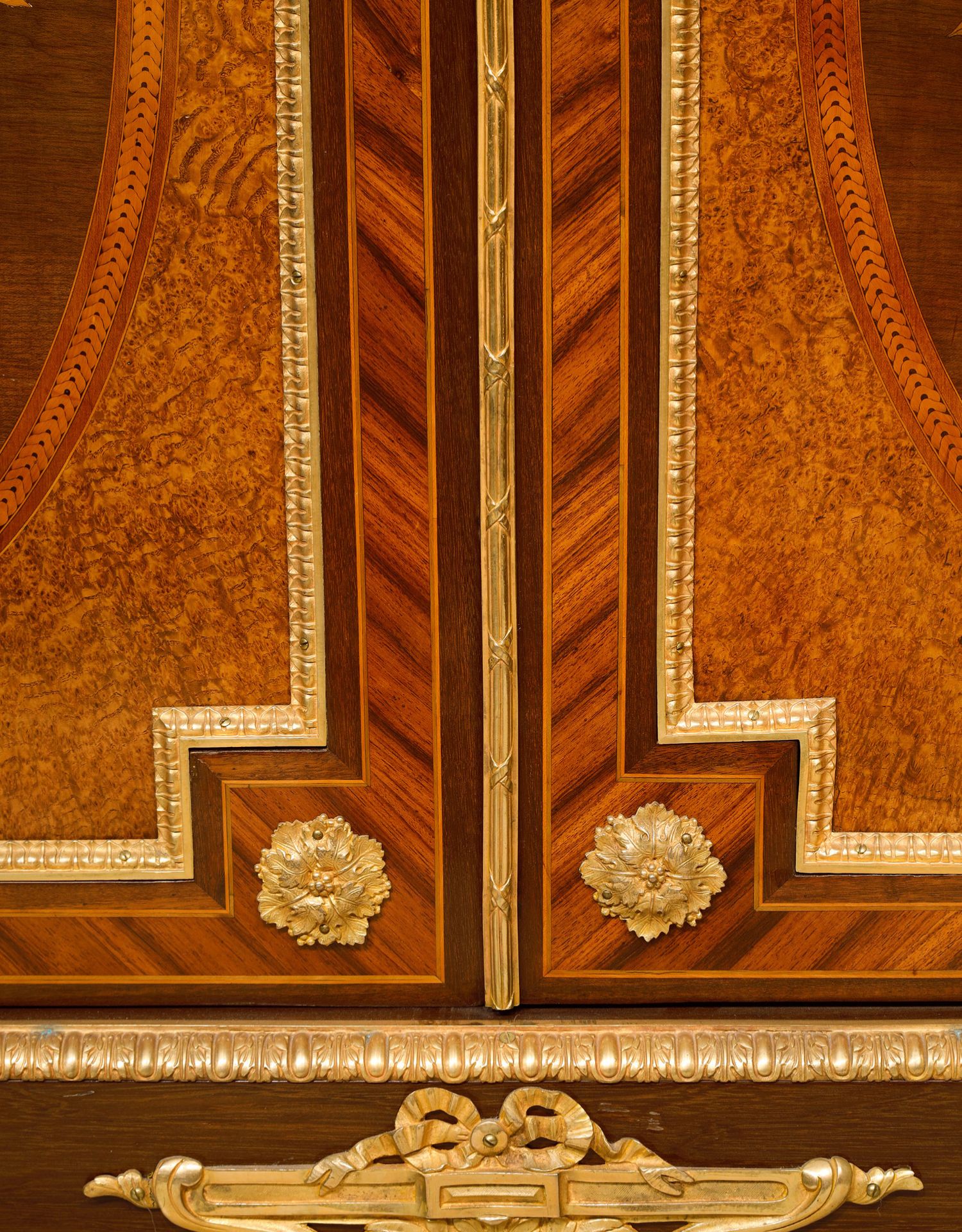 独角鹿西洋古董家具路易十六风格铜鎏金细木镶嵌大理石台面边柜
