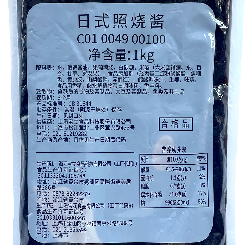 宝立日式照烧酱1kg商用照烧酱汁烧烤肉拌饭酱章鱼小丸子调味酱料