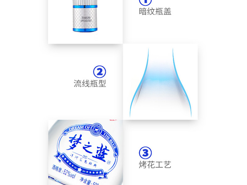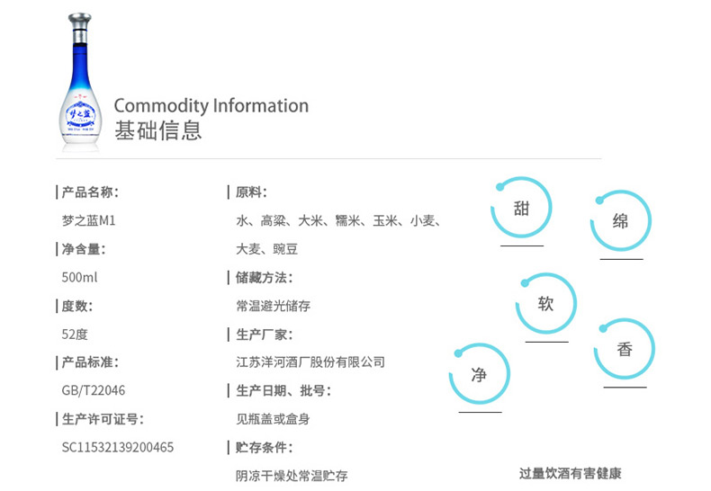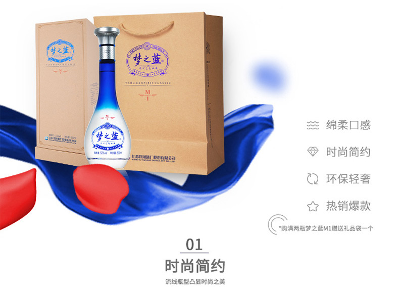洋河梦之蓝m1-52度-浓香型白酒-500ml-多规格可选