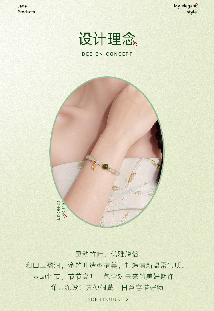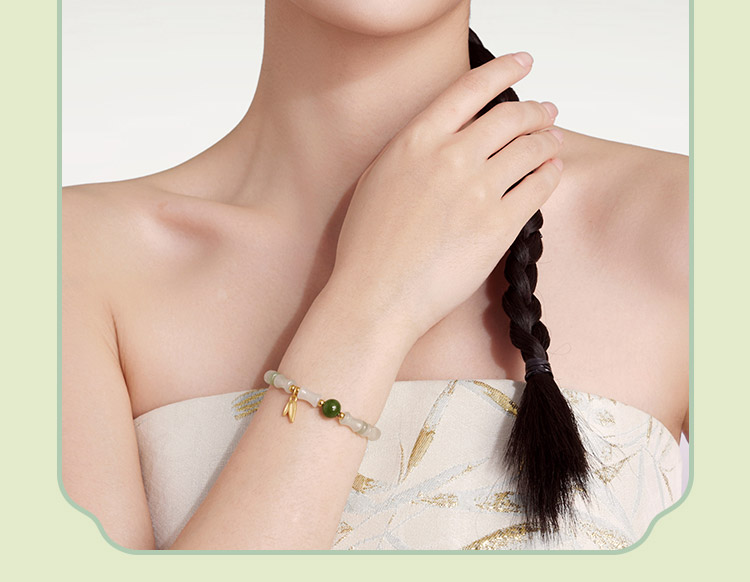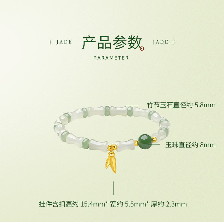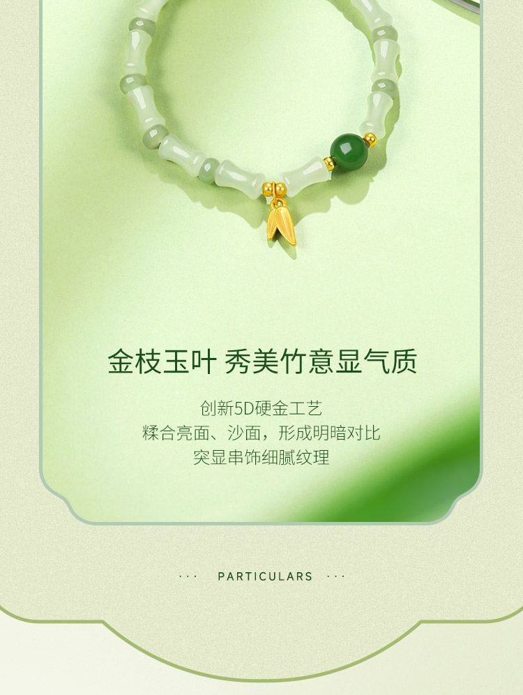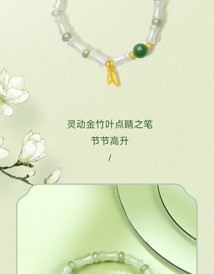 周六福黄金和田玉手链女款和田玉石金竹玉叶手串送女友礼物