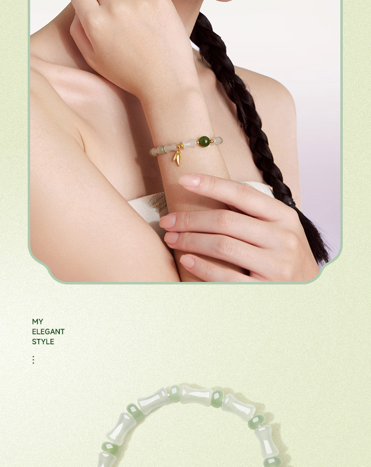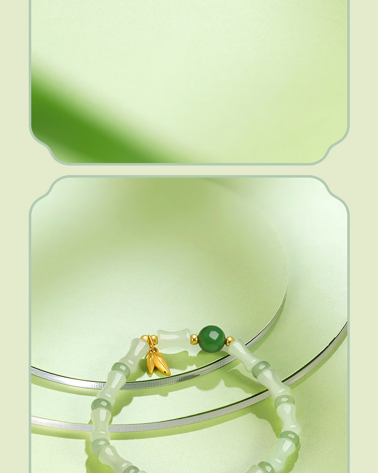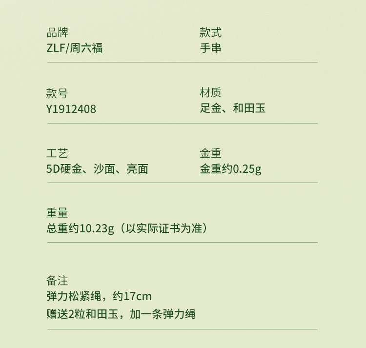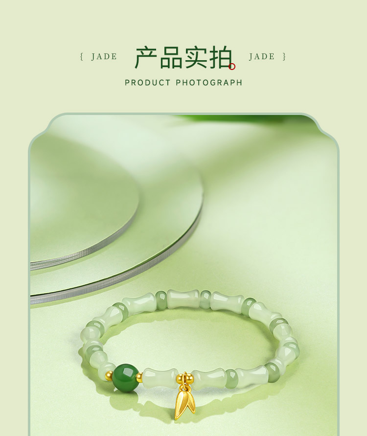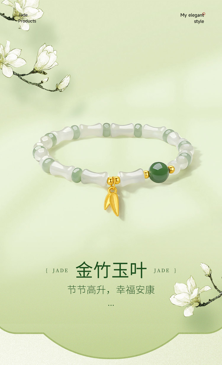 周六福黄金和田玉手链女款和田玉石金竹玉叶手串送女友礼物
