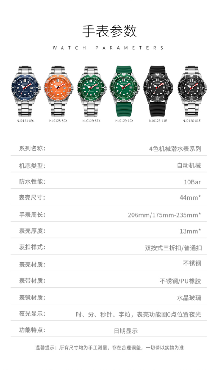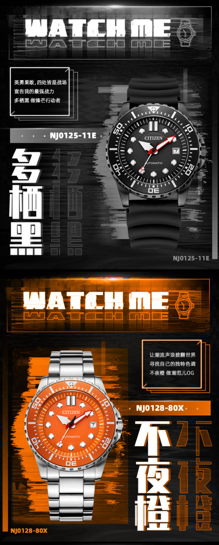 西铁城新品日本官方正品ME彩系列机械潜水手表运动表NJ0129-10X
