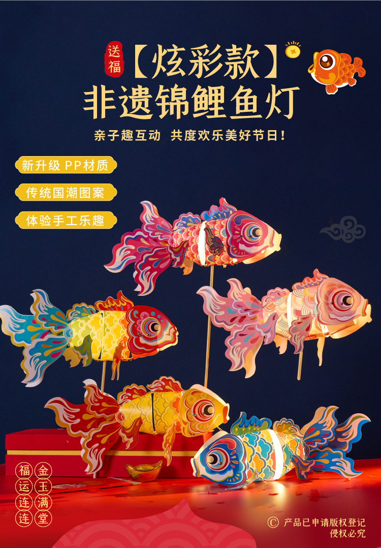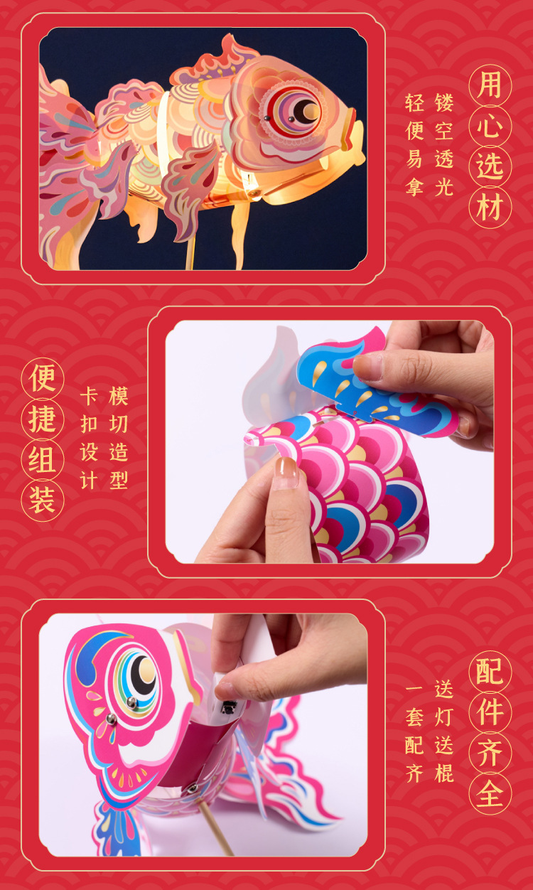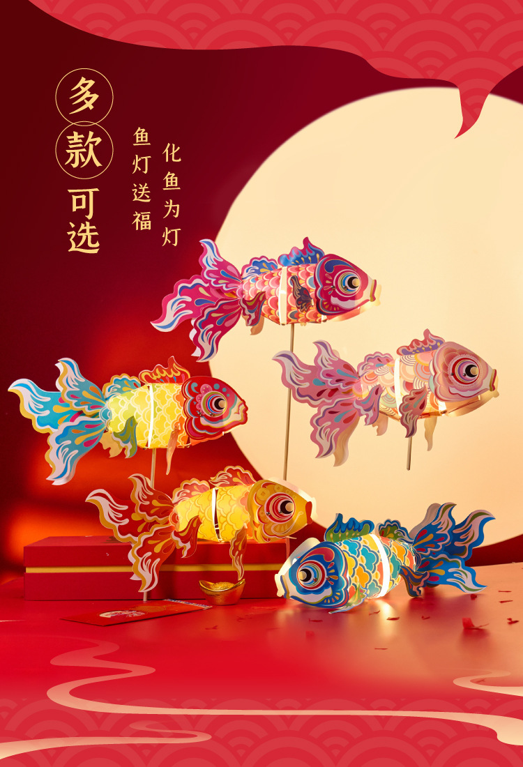 【17.9秒!超吸睛金鱼鱼灯】2026 马年锦鲤鱼灯笼手工 DIY 材料包 儿童制作金鱼花灯挂饰