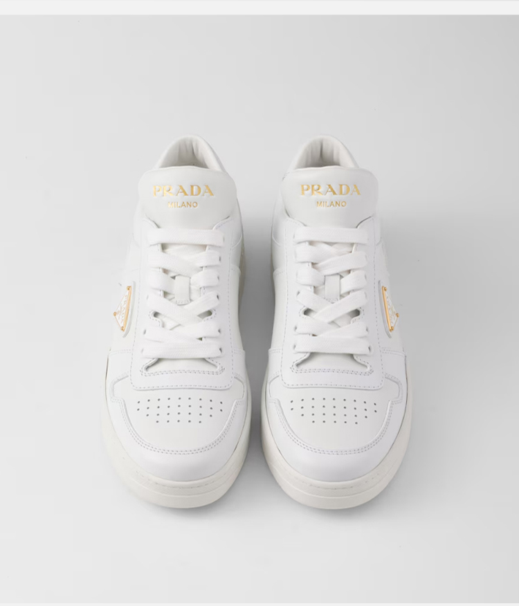 PRADA 普拉达 女士珐琅金属三角形徽标 Downtown 皮革休闲运动鞋 白色 1E792M 3LPH F0009