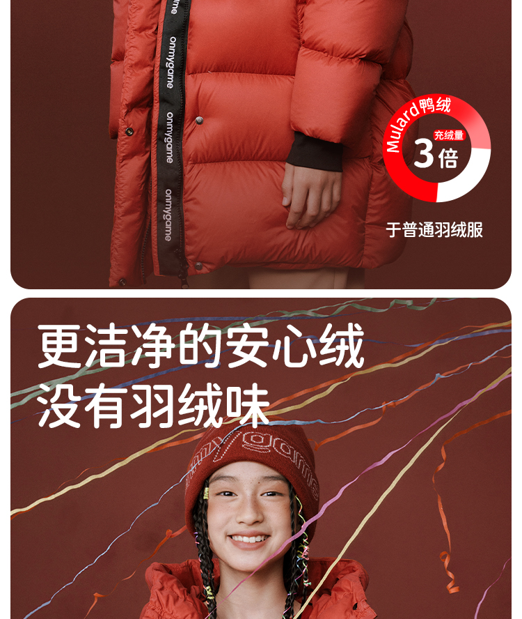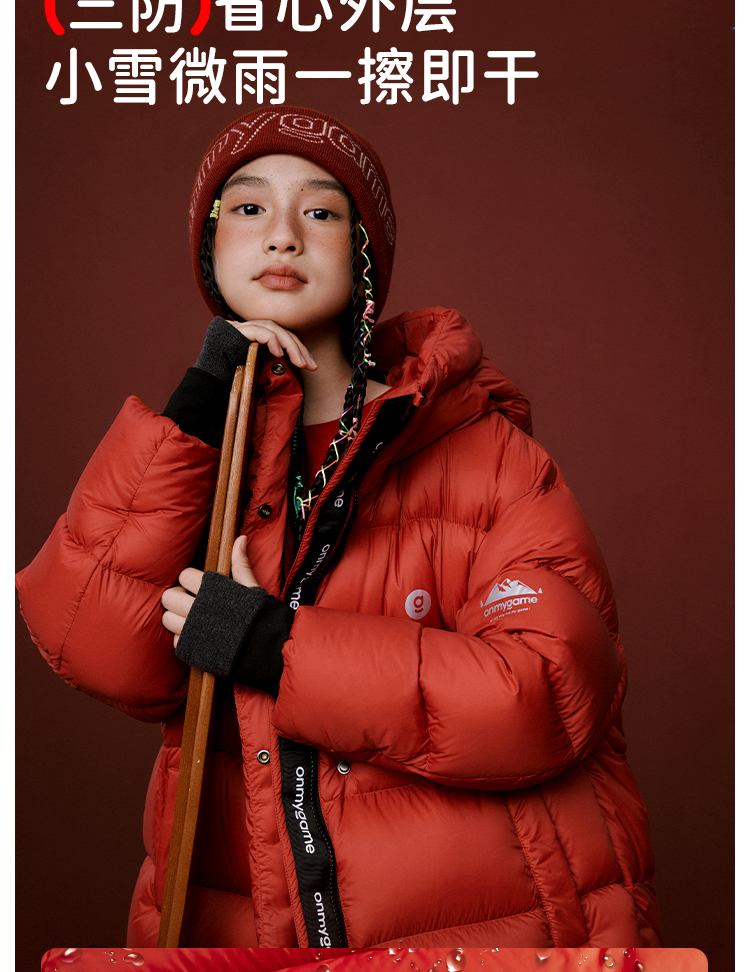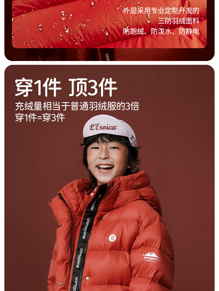 onmygame儿童三防羽绒服冬季男童保暖抗寒羽绒服女童加厚运动外套