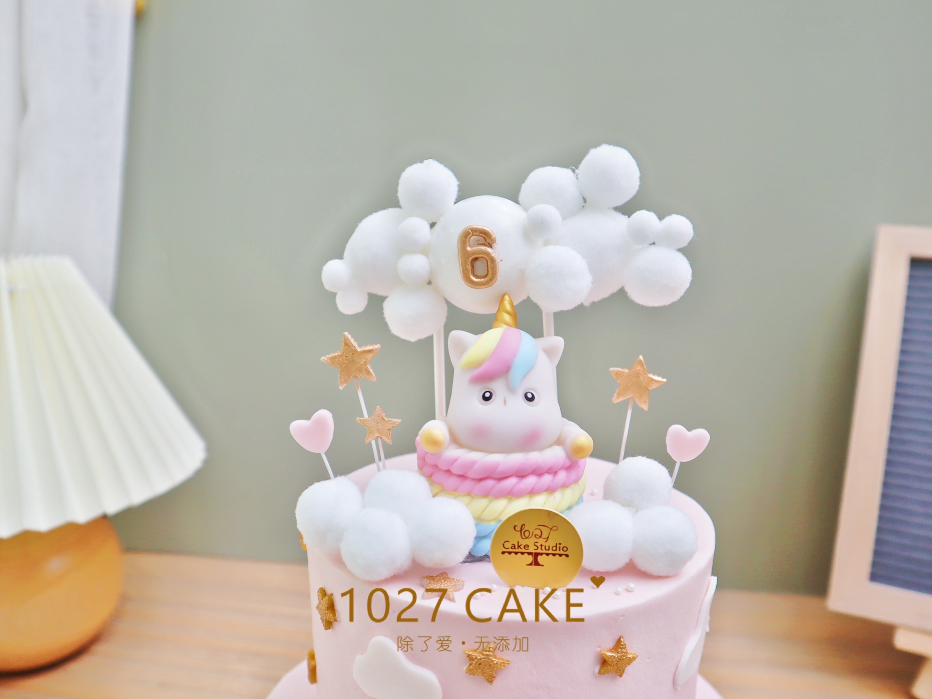 1027CAKE| 独角兽 双层 翻糖装饰 粉色系 梦幻
