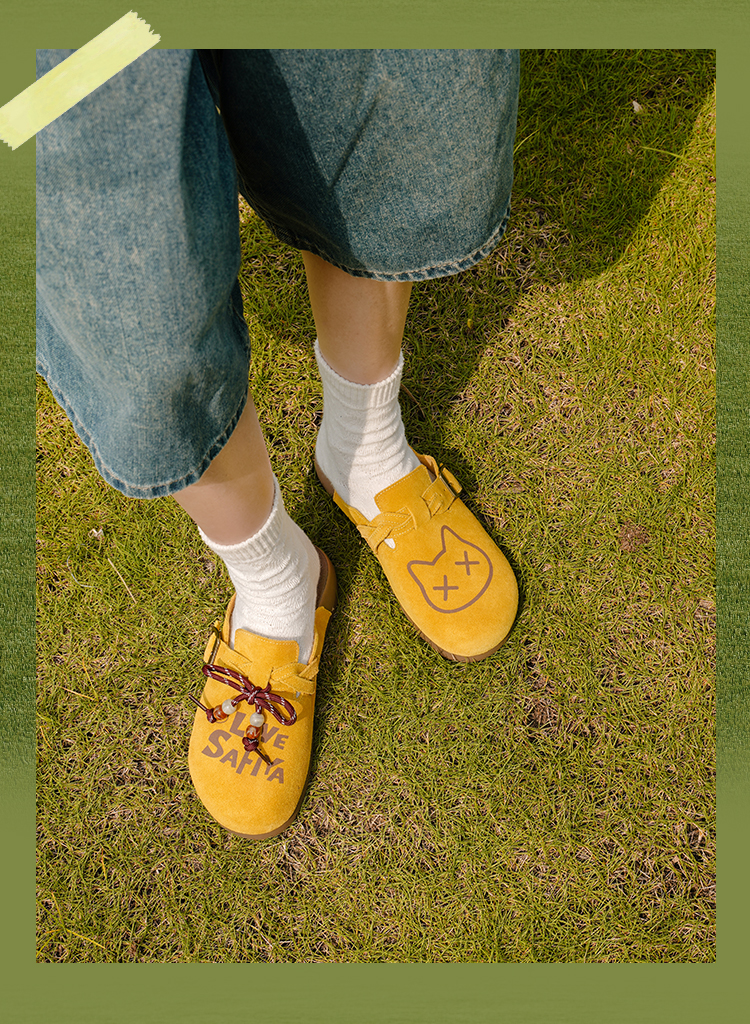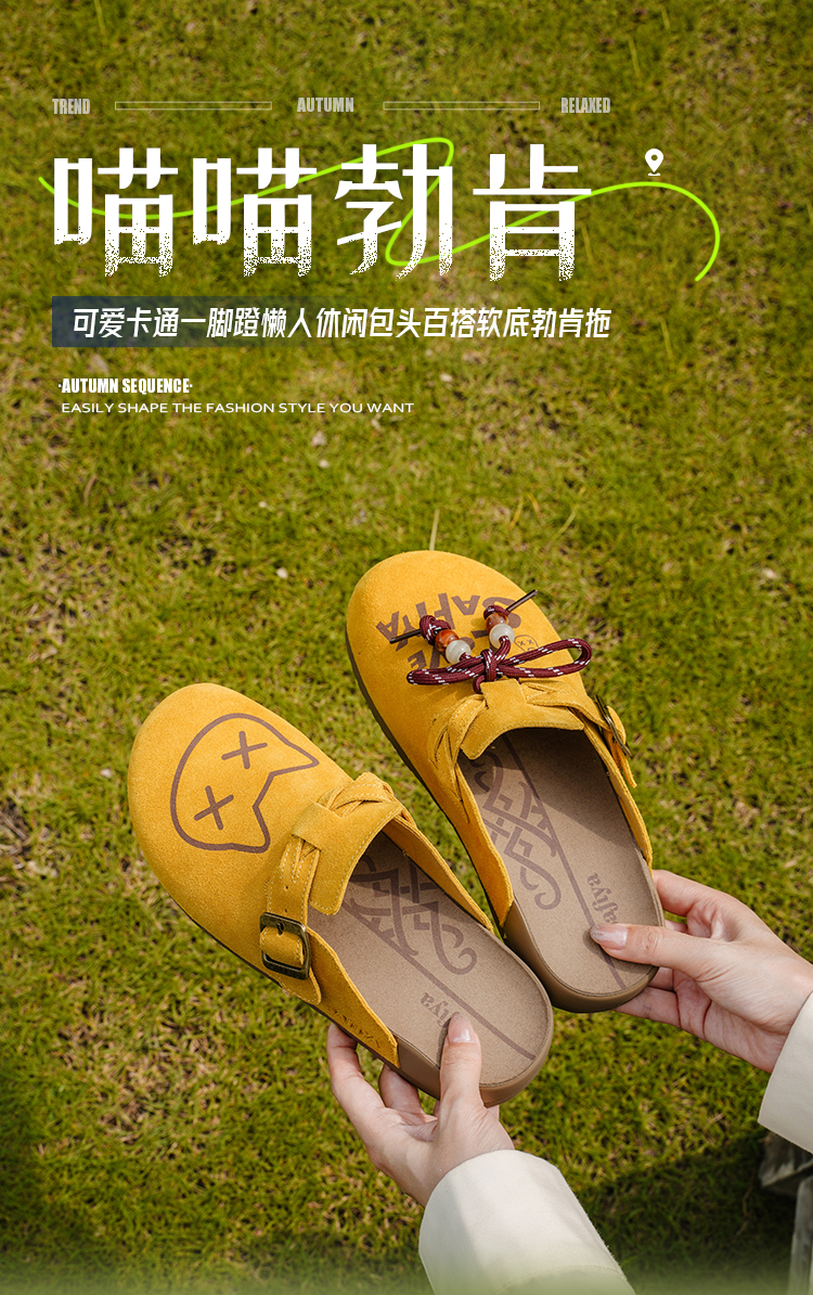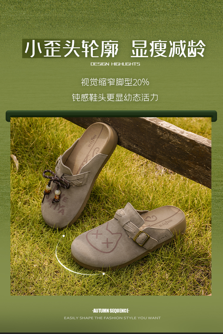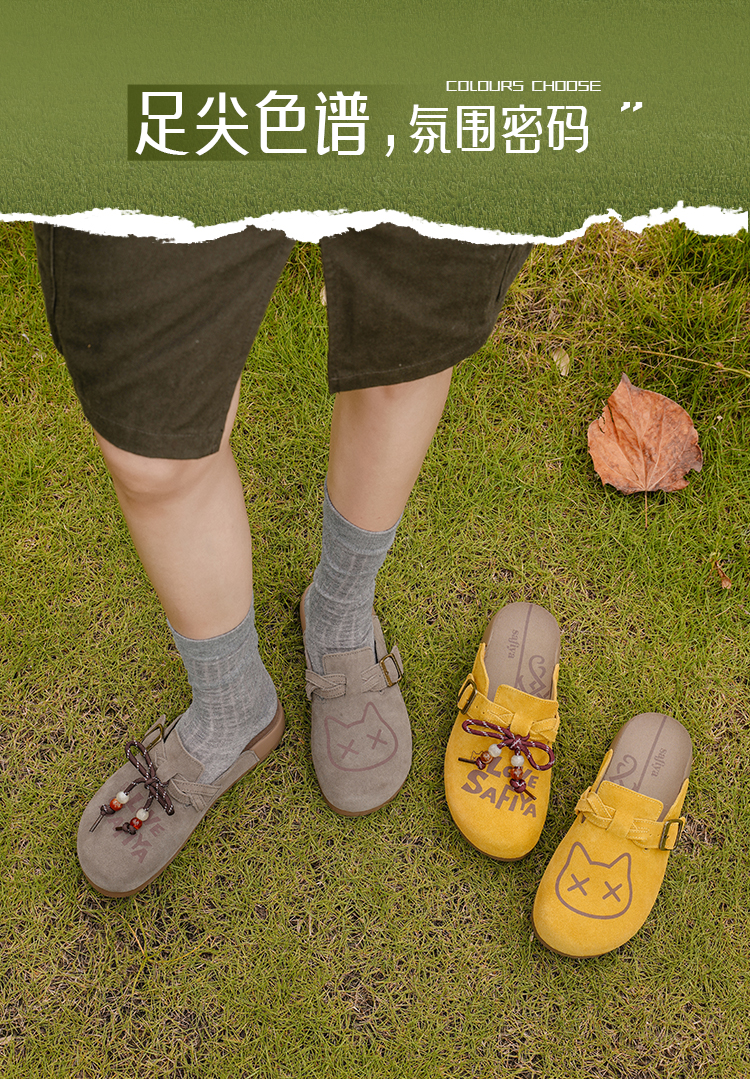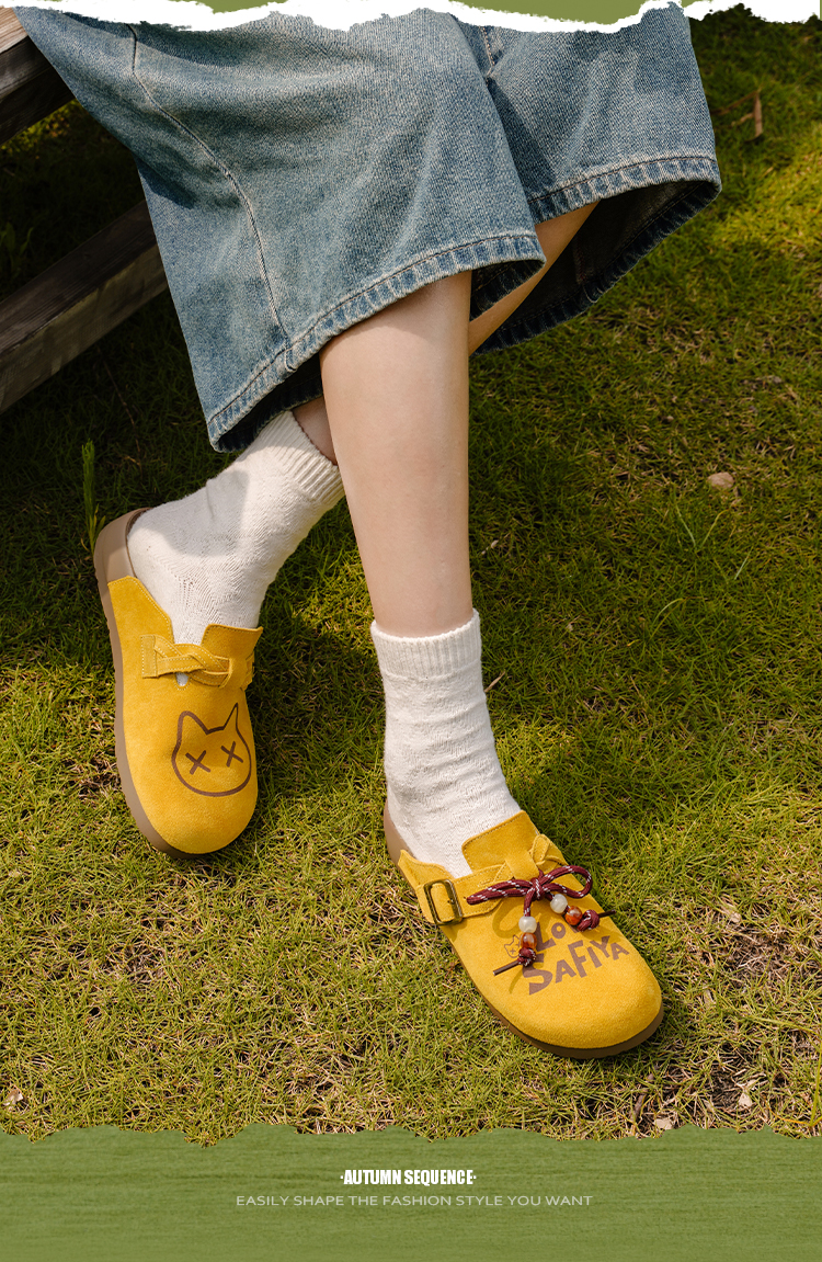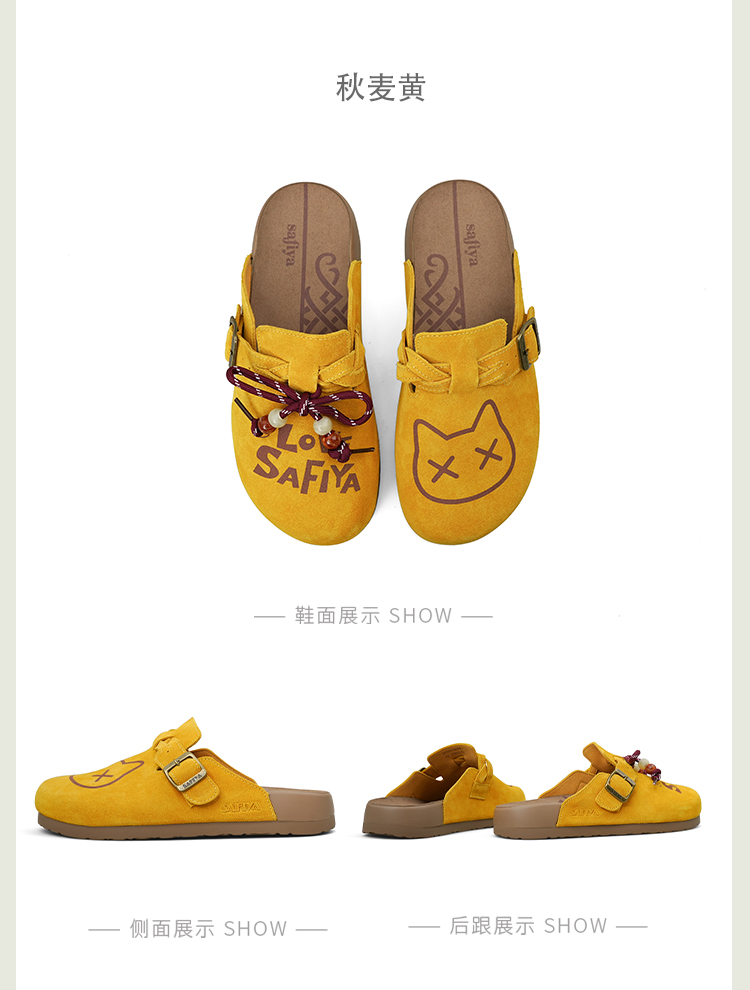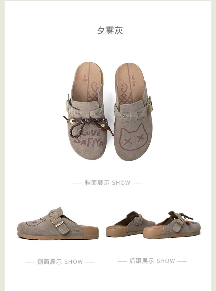 Safiya/索菲娅2025可爱卡通一脚蹬懒人休闲包头百搭软底勃肯拖SFD3110075