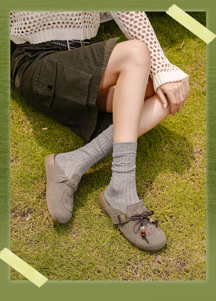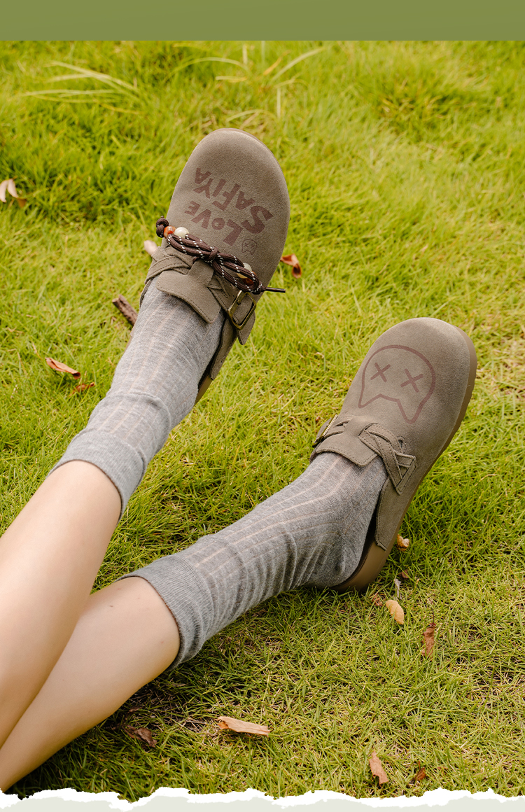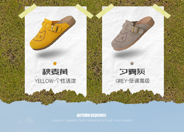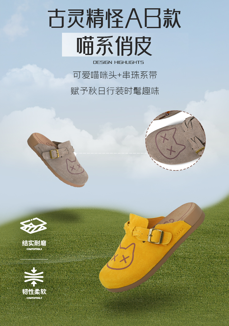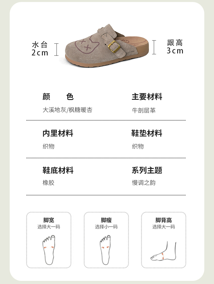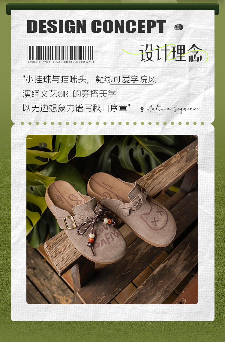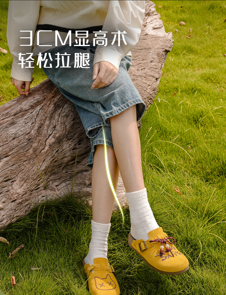 Safiya/索菲娅2025可爱卡通一脚蹬懒人休闲包头百搭软底勃肯拖SFD3110075