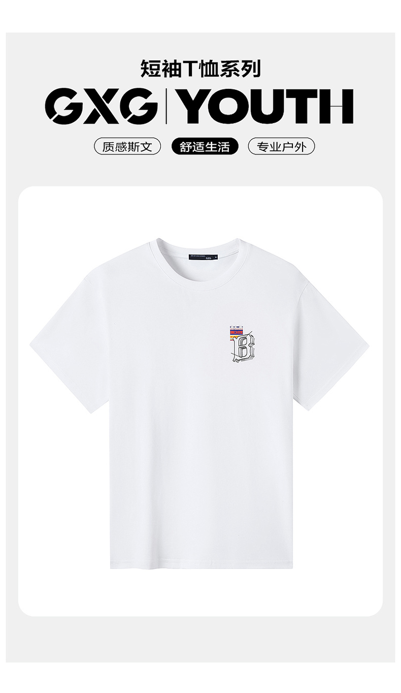 GXG男装【撞色字母】夏季时尚百搭印花男士圆领休闲纯棉短袖t恤K&C