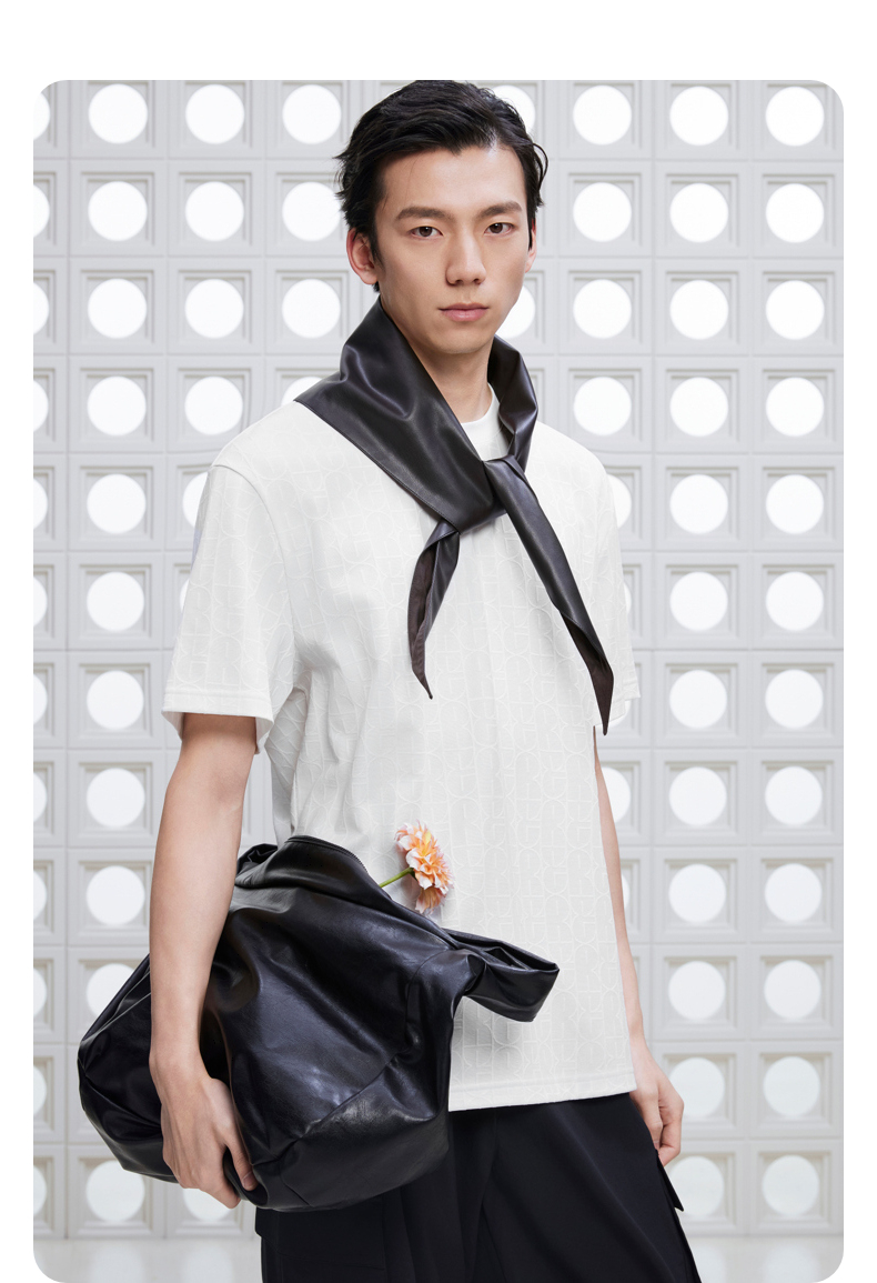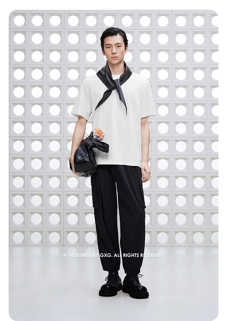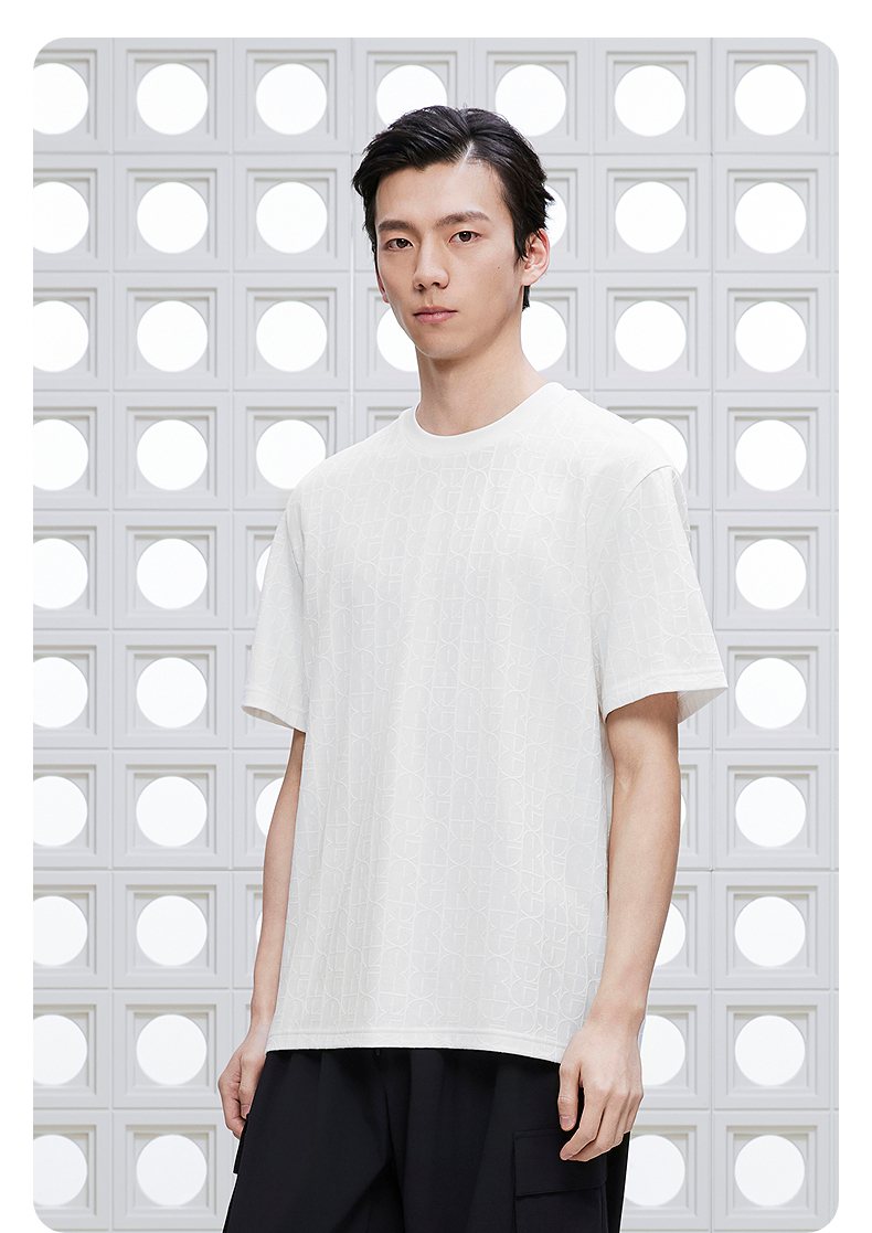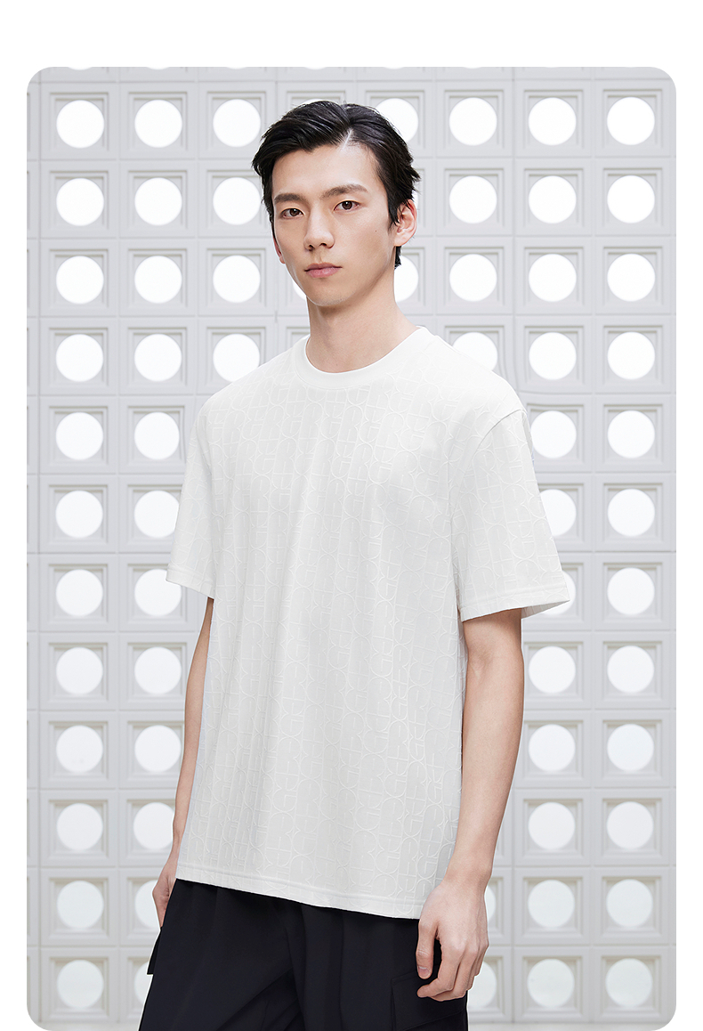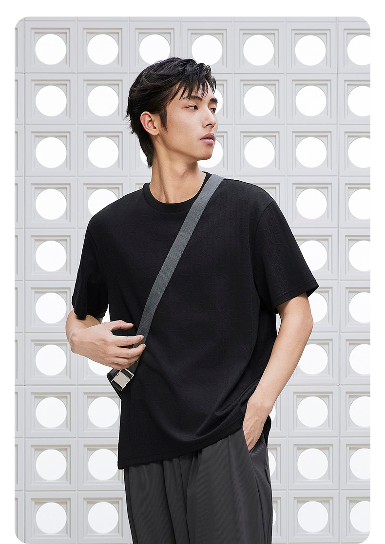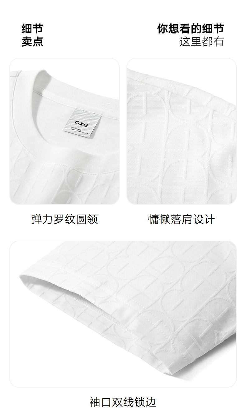 GXG男装 圆领T恤双色肌理材质上衣短袖针织 2025夏季新品