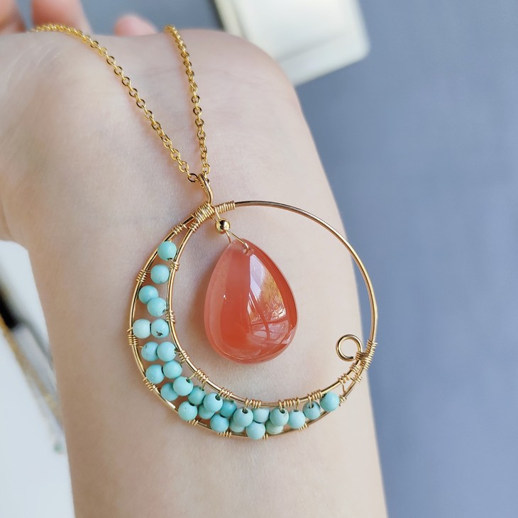 编码:10429190004松石南红项链尺寸:36.2mm售价:698元