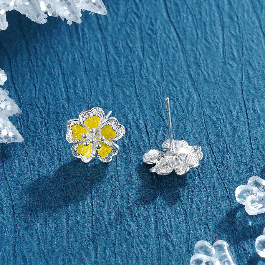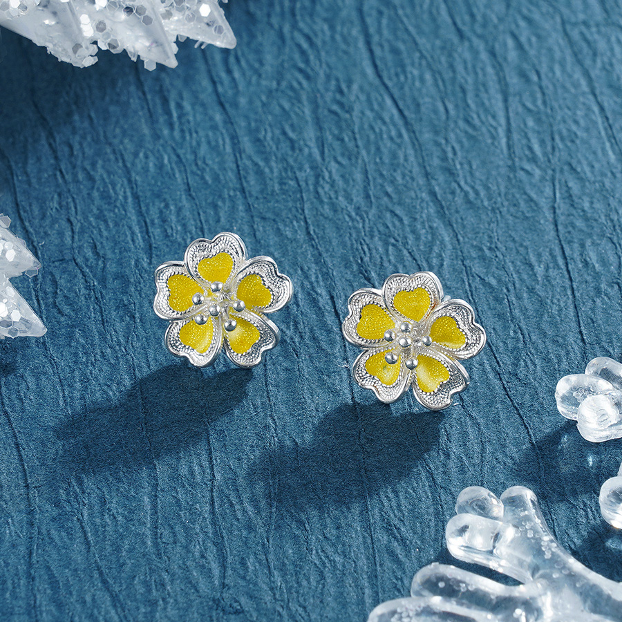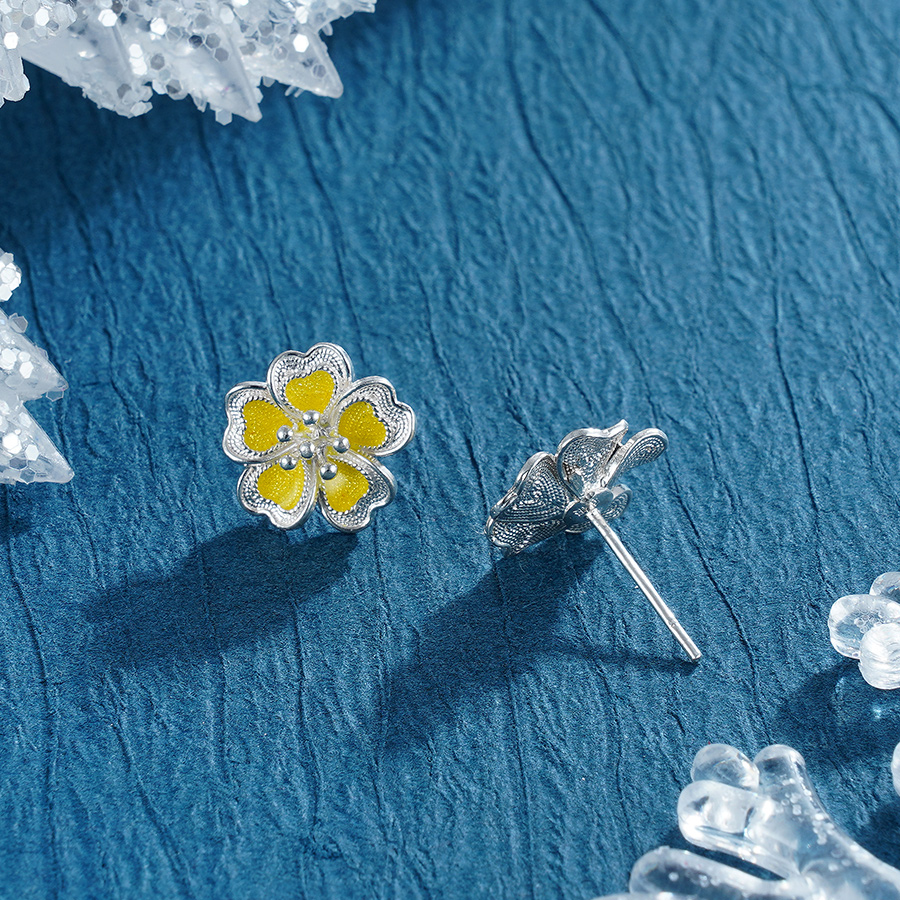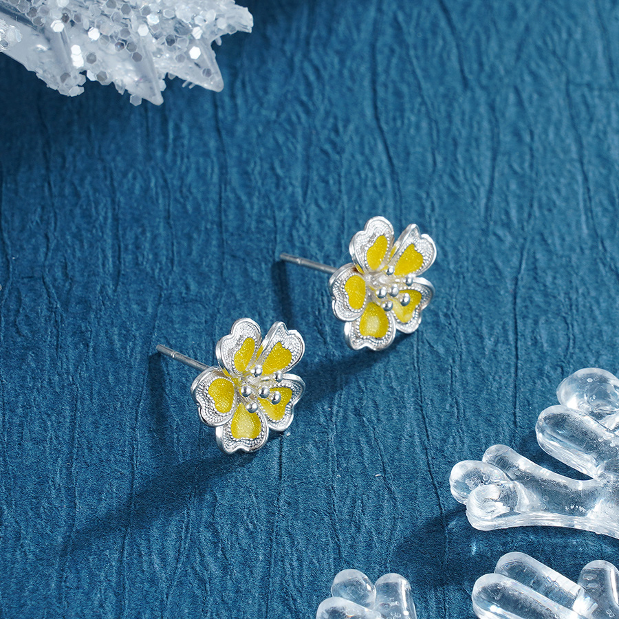 【寓意】:耳钉灵感来源于花朵,采用珐琅工艺,黄色小花精致细腻,焕发清新活力。为整体装扮增添亮点,尤其适合春季佩戴。