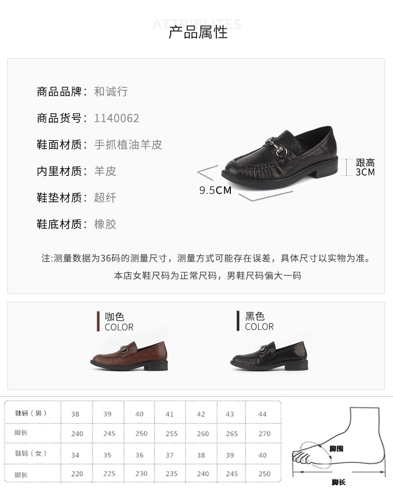 和诚行 2024秋冬新款百搭复古英伦小皮鞋女舒适真皮乐福鞋1140062