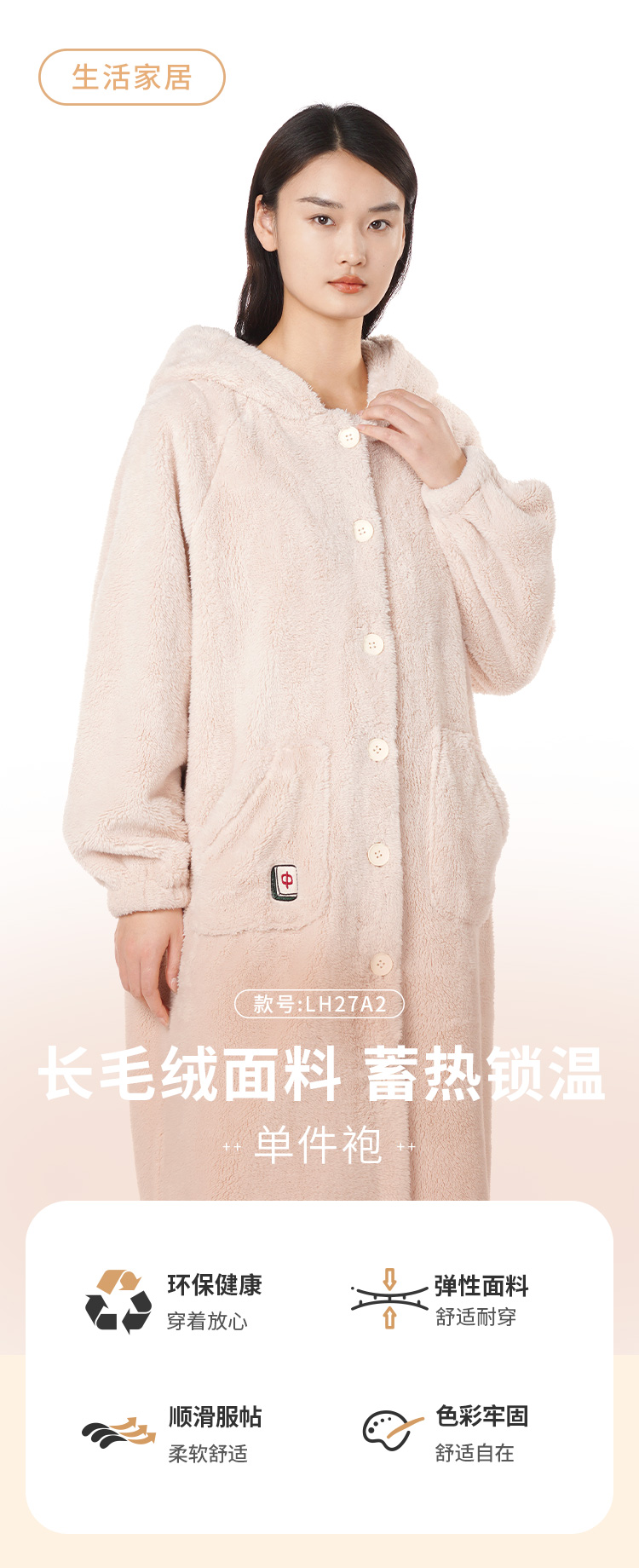 都市丽人生活家居女士法兰绒单件袍长毛绒厚家居服单件袍睡衣LH27A2
