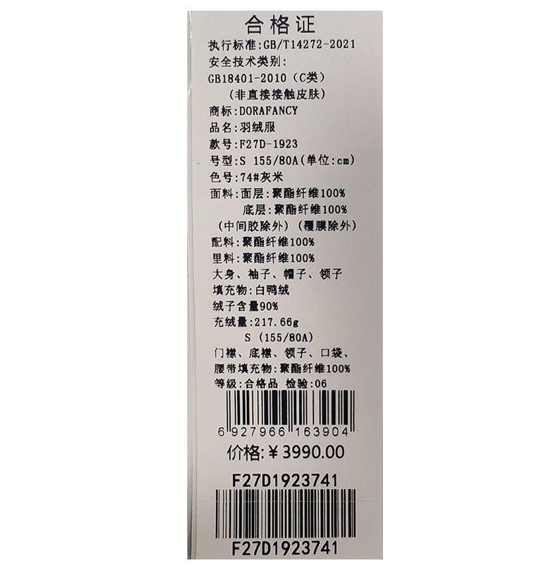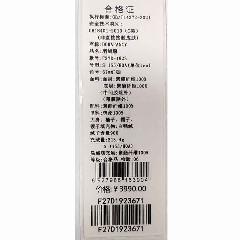 朵拉梵西羽绒服F27D1923