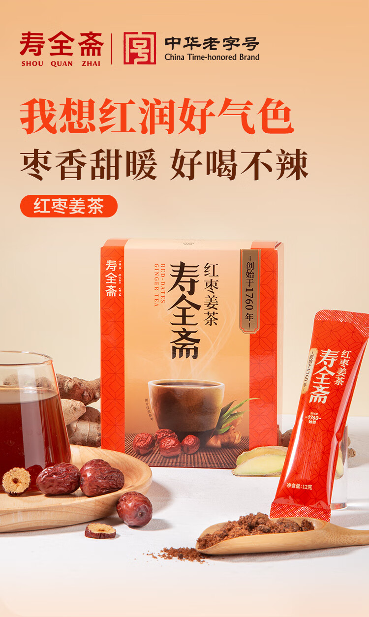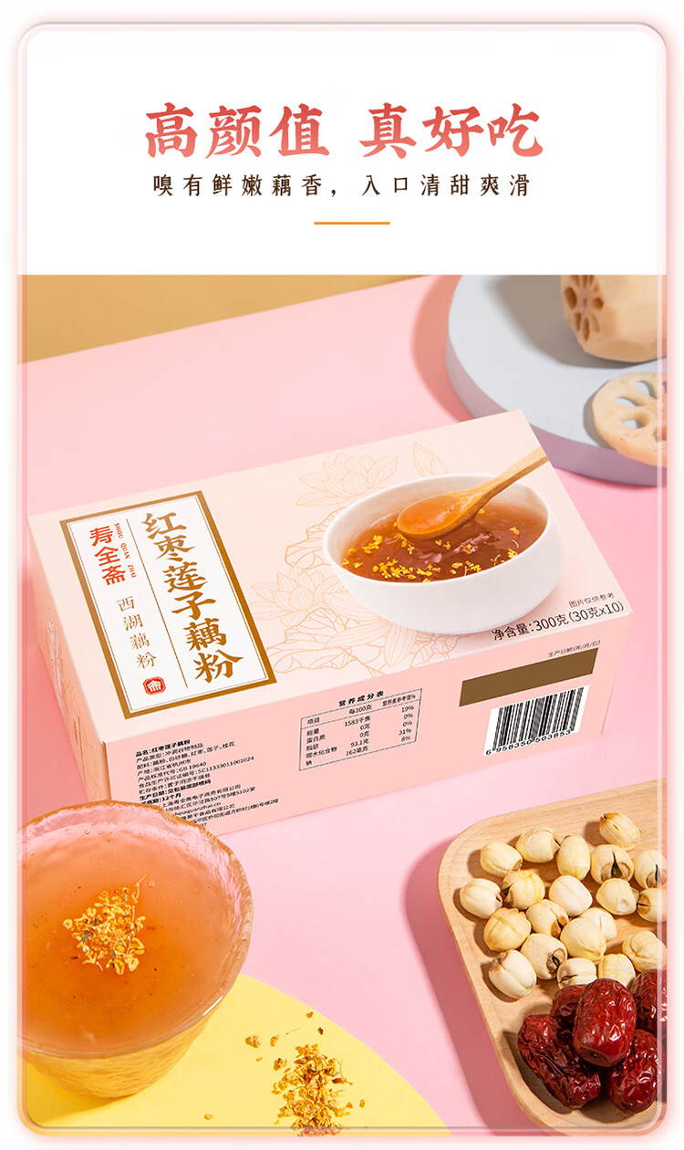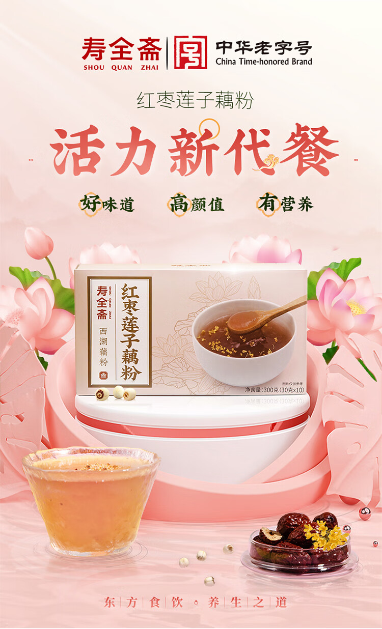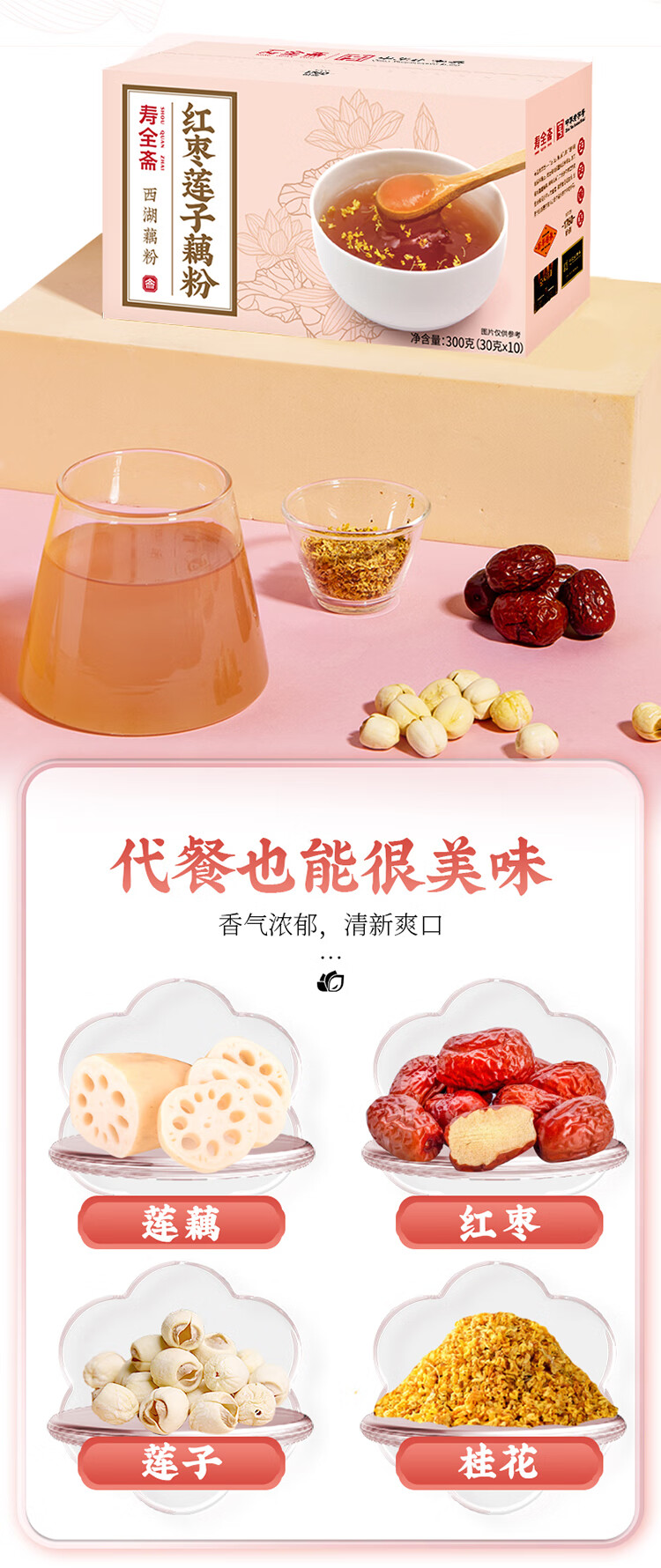 【分仓直发包邮】寿全斋暖心组合720g(西湖藕粉(红枣莲子)300g*2盒+红枣姜茶120g*1盒)