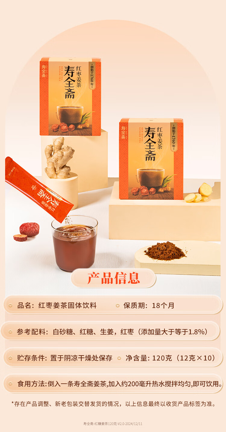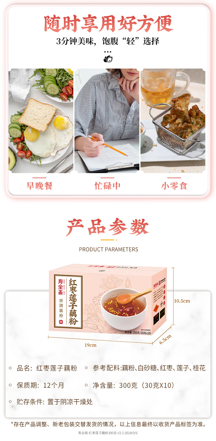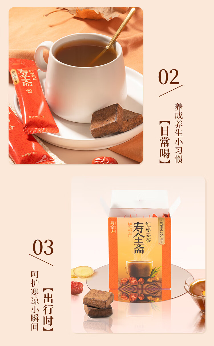 【分仓直发包邮】寿全斋暖心组合720g(西湖藕粉(红枣莲子)300g*2盒+红枣姜茶120g*1盒)