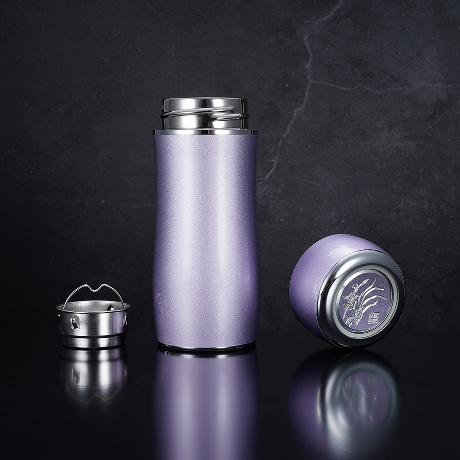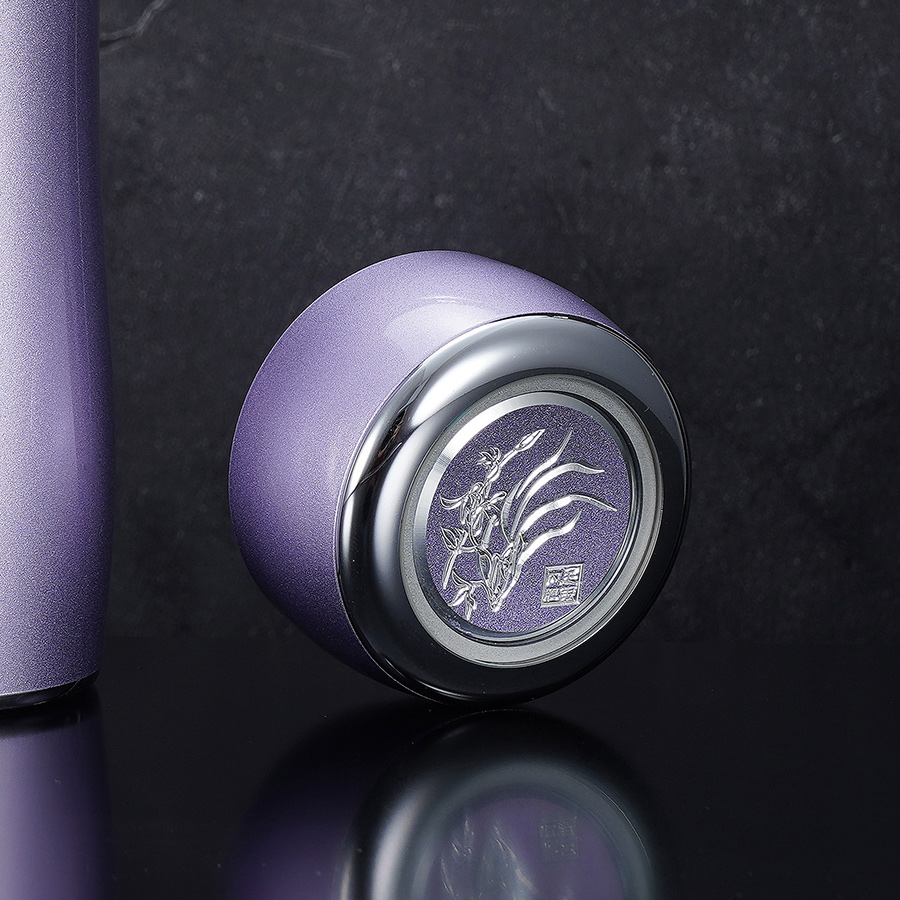 【寓意】:小蛮腰足银内胆杯,流线型淡紫色杯身,似有茶香袅袅飘散,婉约清雅,一手掌握。美人执于手中,与杯相得益彰,堪称绝配。