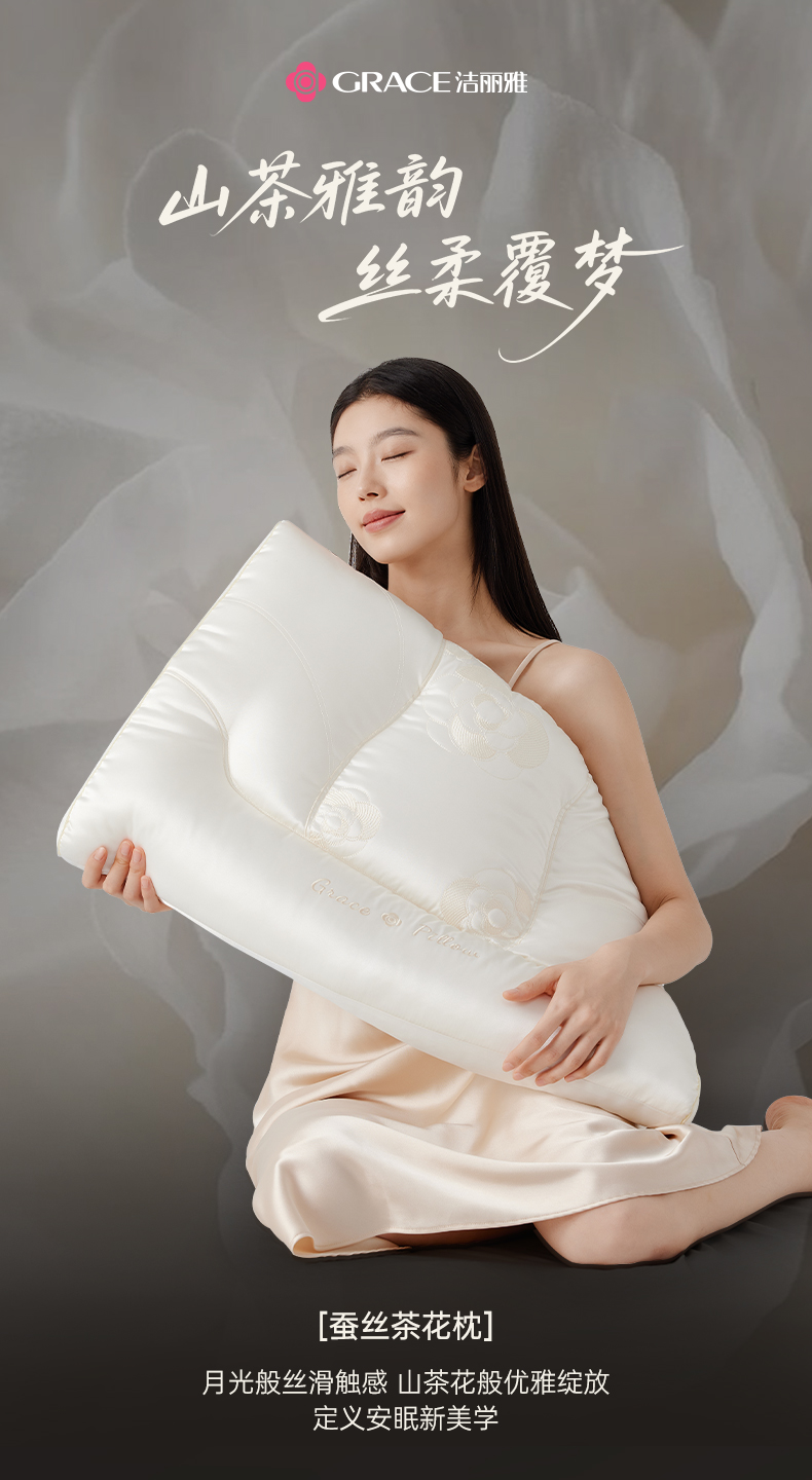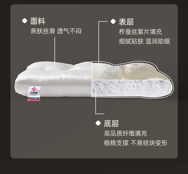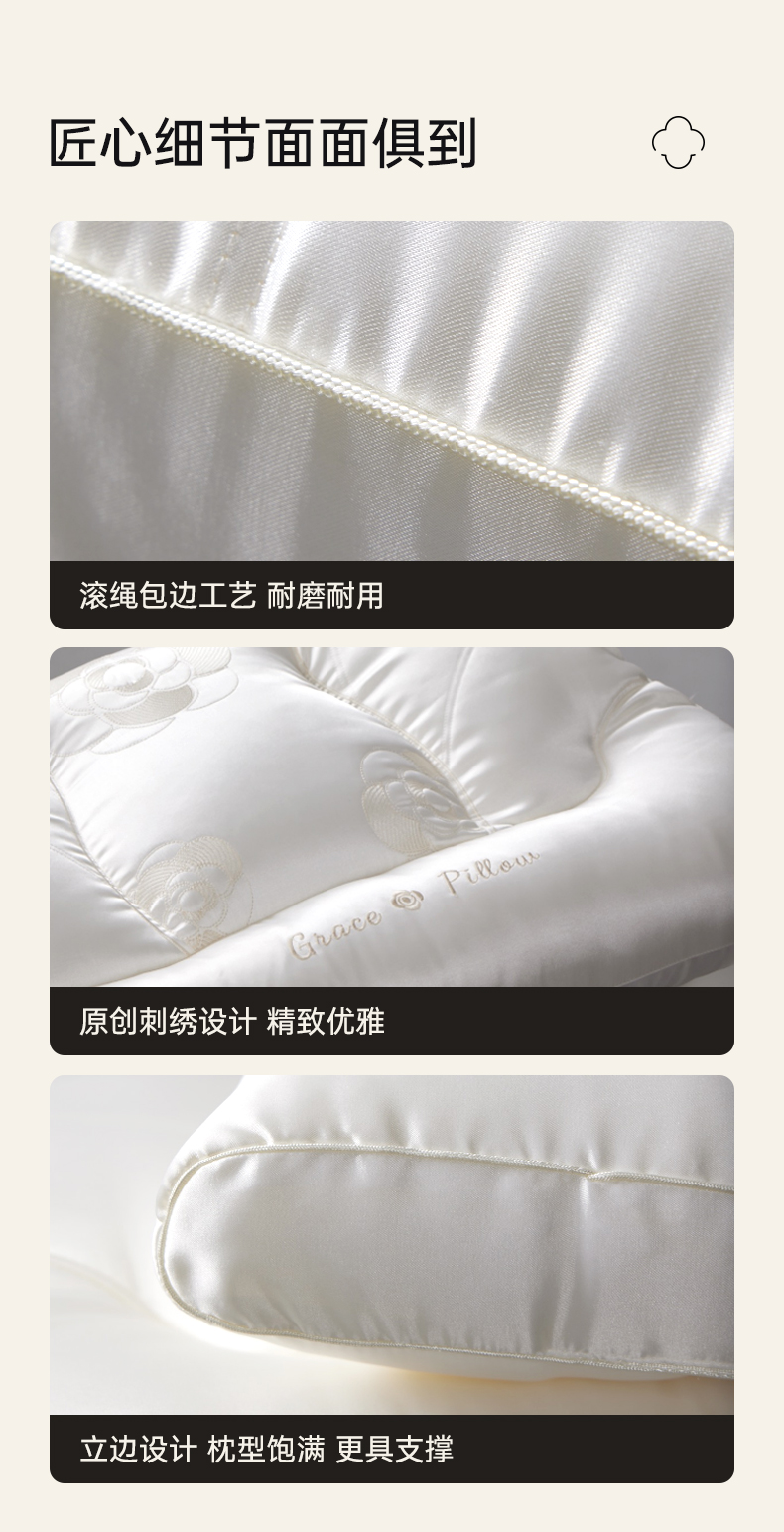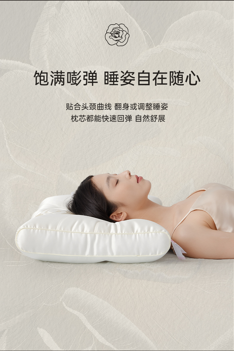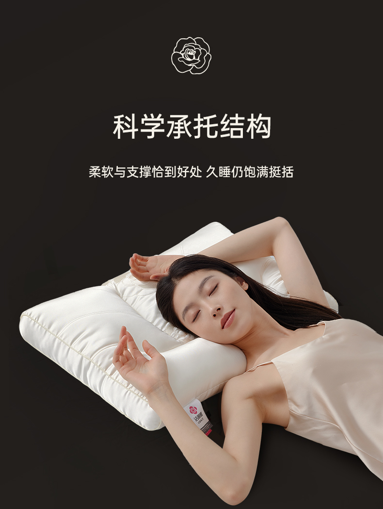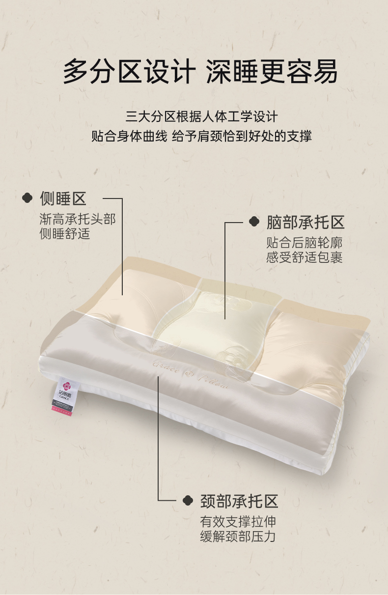 洁丽雅蚕丝茶花枕分区枕护颈成人睡眠家用枕头透气支撑按摩枕宿舍