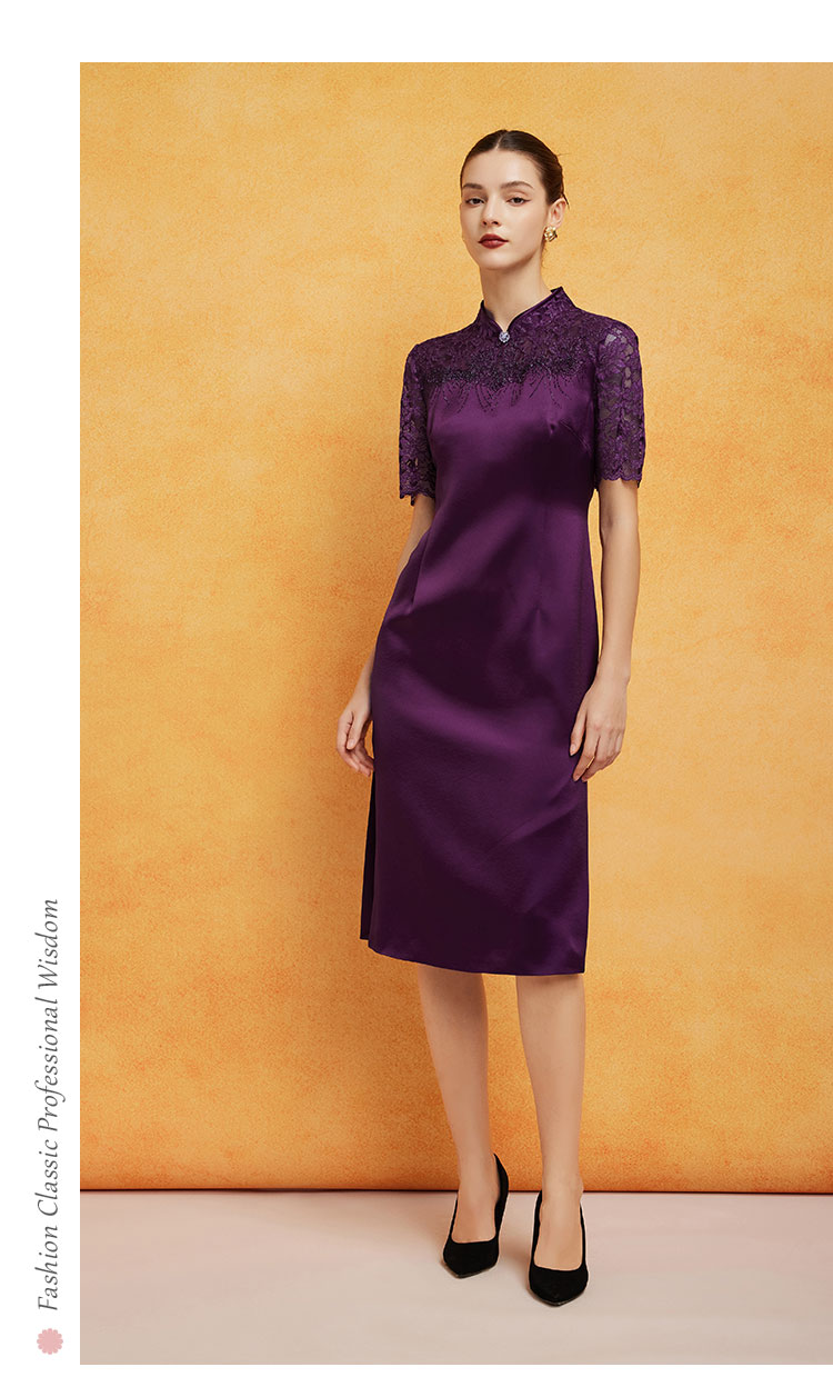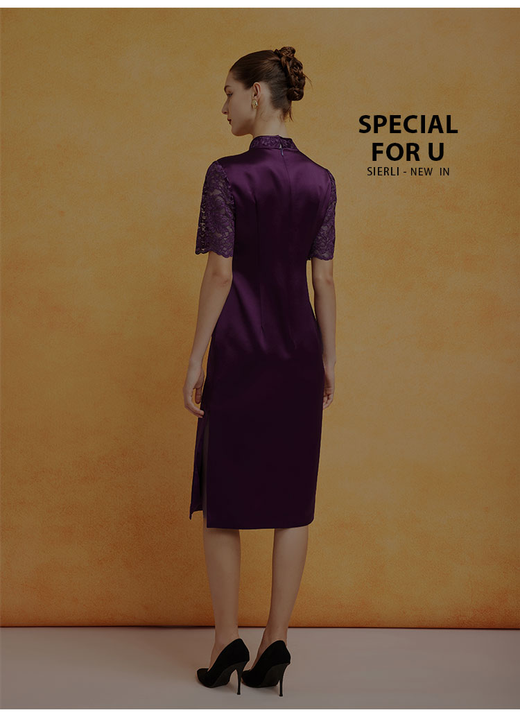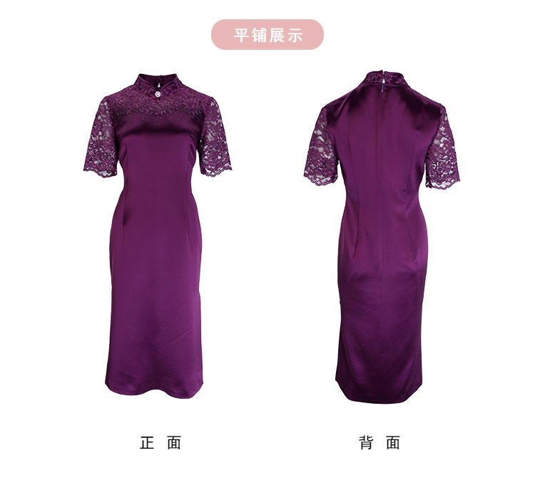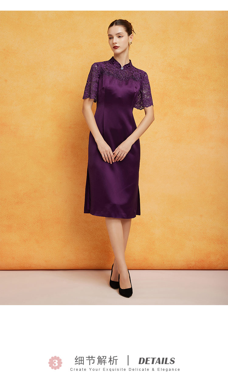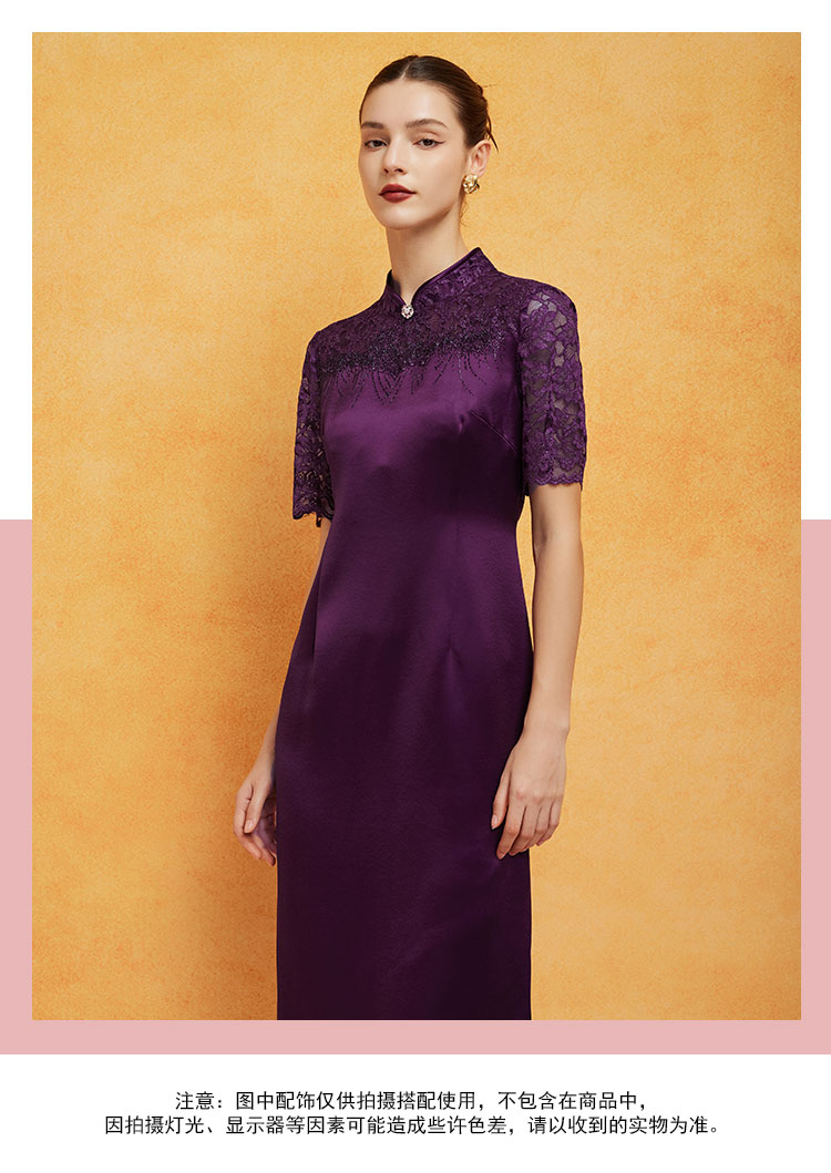 PF8E7斯尔丽2024新款喜婆婆宴会拼接蕾丝改良旗袍烫钻醋酸修身显瘦连衣裙
