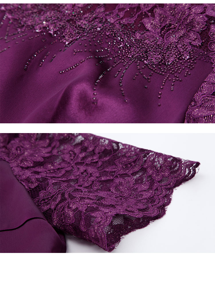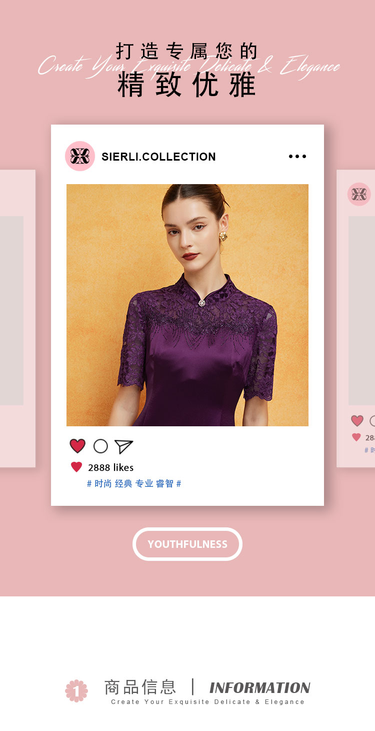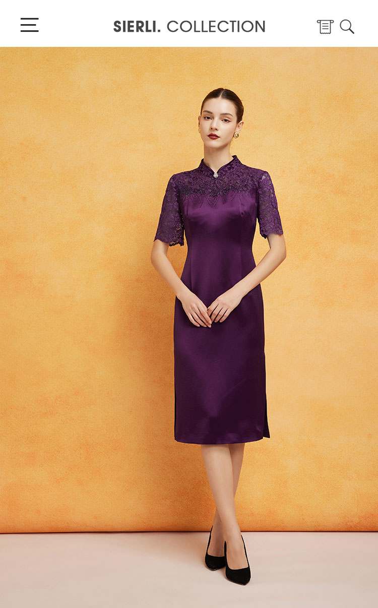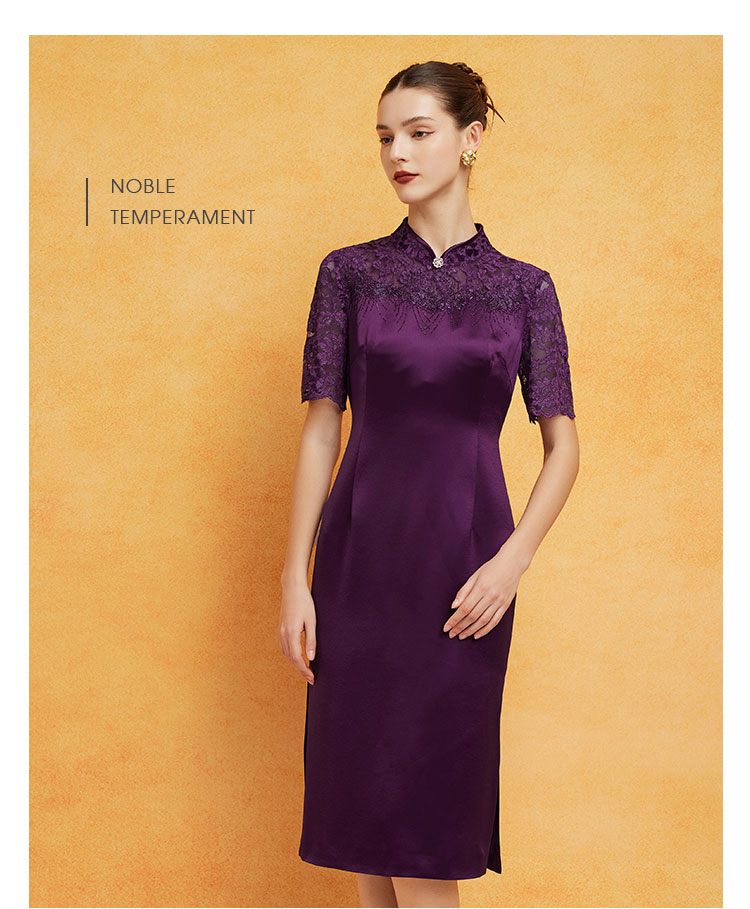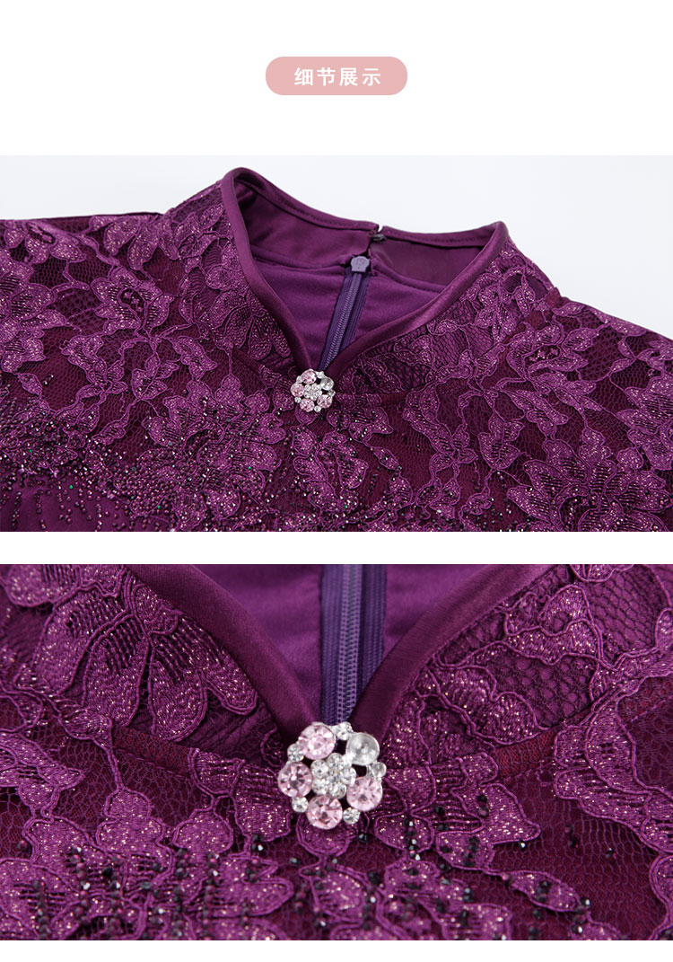 PF8E7斯尔丽2024新款喜婆婆宴会拼接蕾丝改良旗袍烫钻醋酸修身显瘦连衣裙