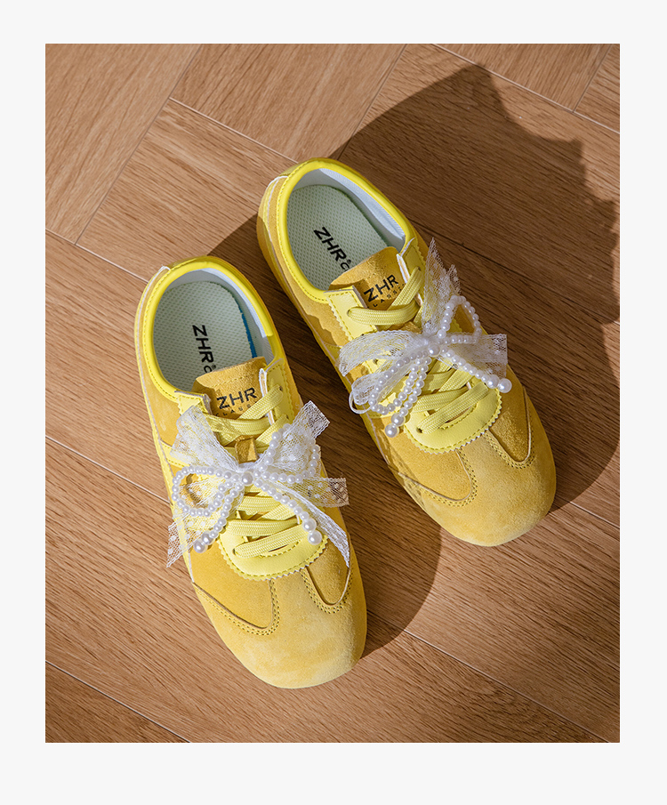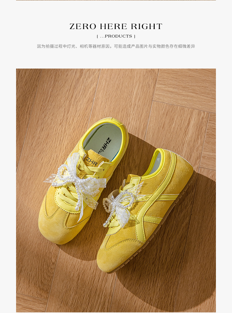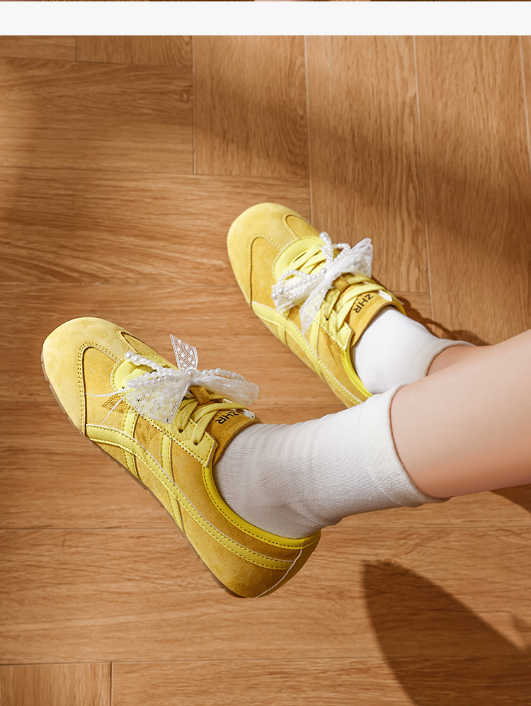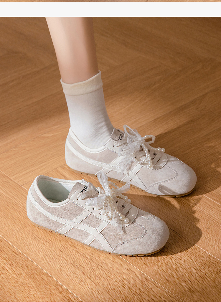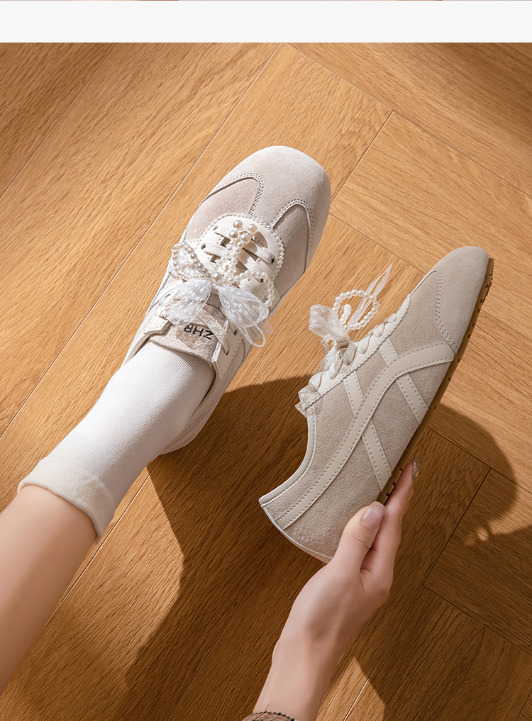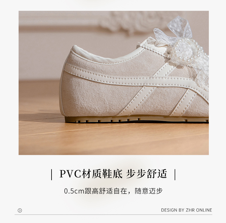 ZHR透气芭蕾德训鞋女夏季穿搭薄款2025网纱珍珠鞋带休闲小白鞋