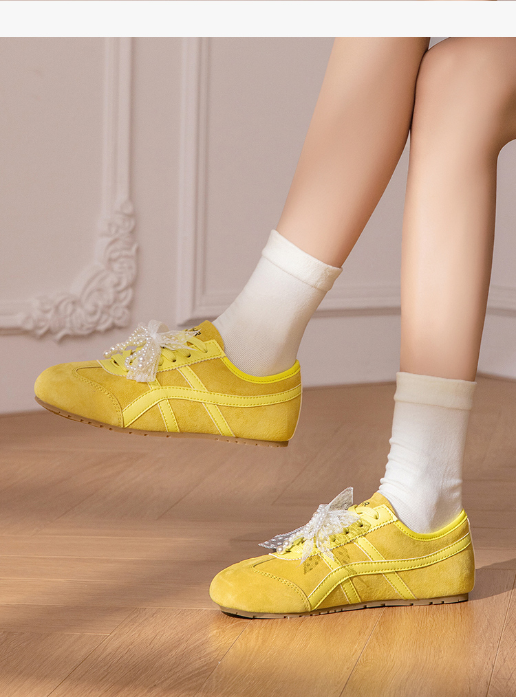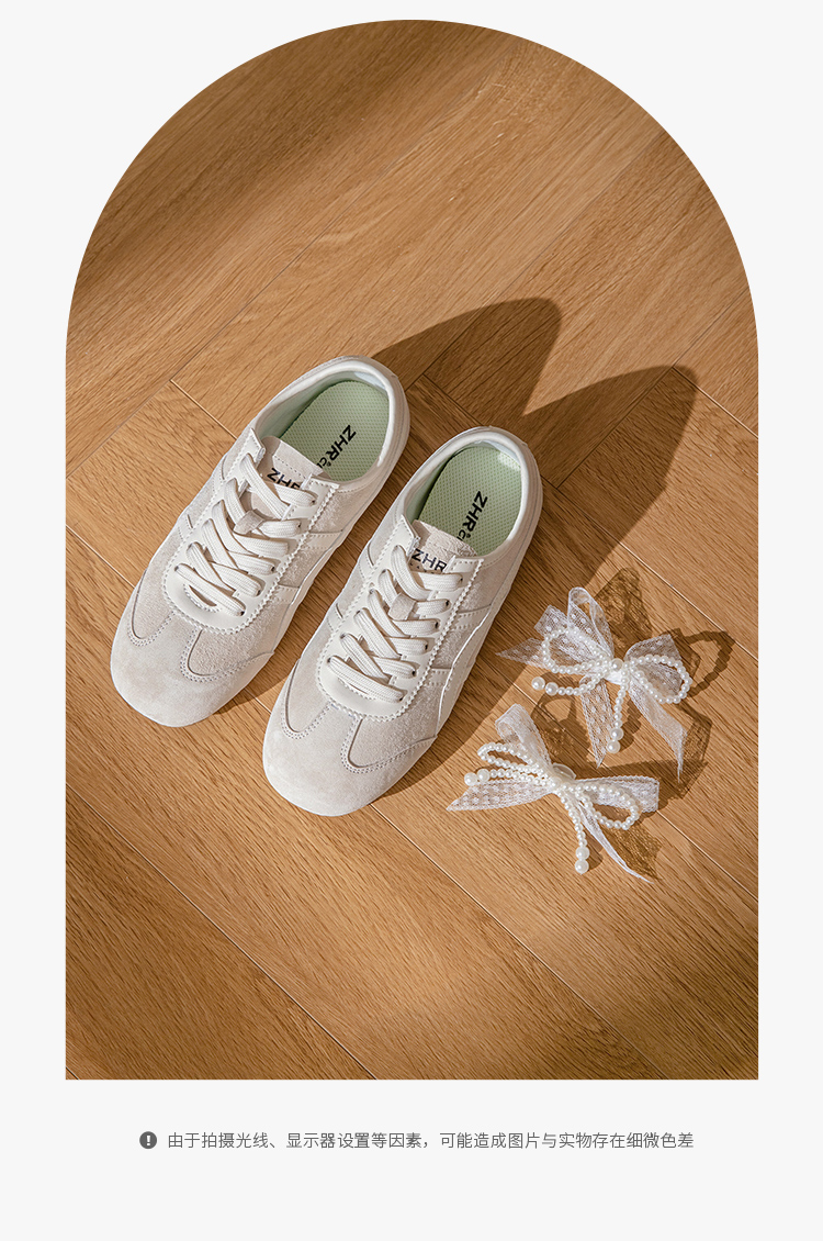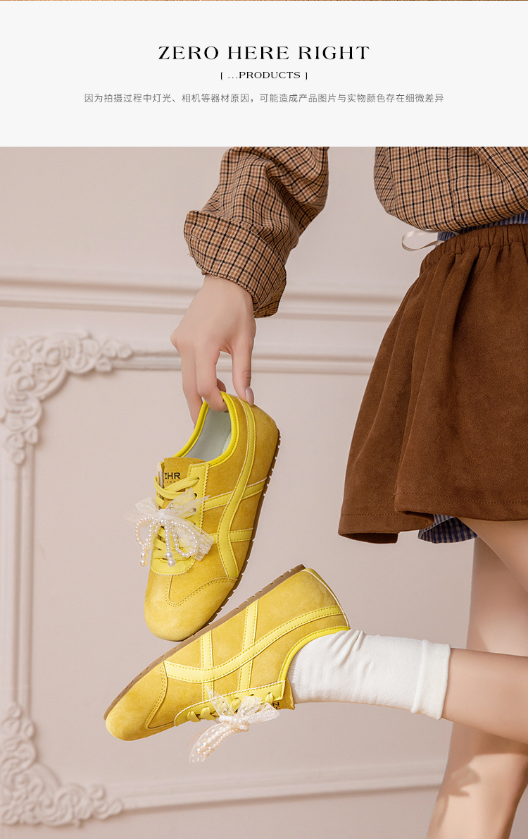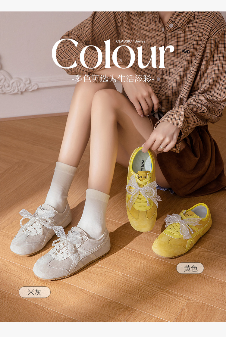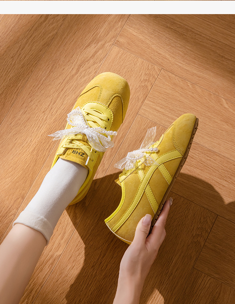 ZHR透气芭蕾德训鞋女夏季穿搭薄款2025网纱珍珠鞋带休闲小白鞋
