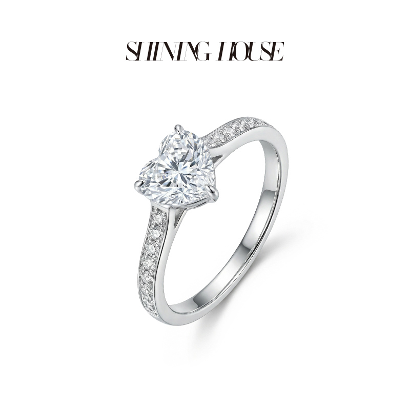 ShiningHouse[培育] 18k金钻石戒指 心形刻面形1.5克拉钻人工真钻人造钻石K金戒指设计感简约钻石戒指悦己送礼臻选【此商品不支持7天无理由退货退款】预计3日发货