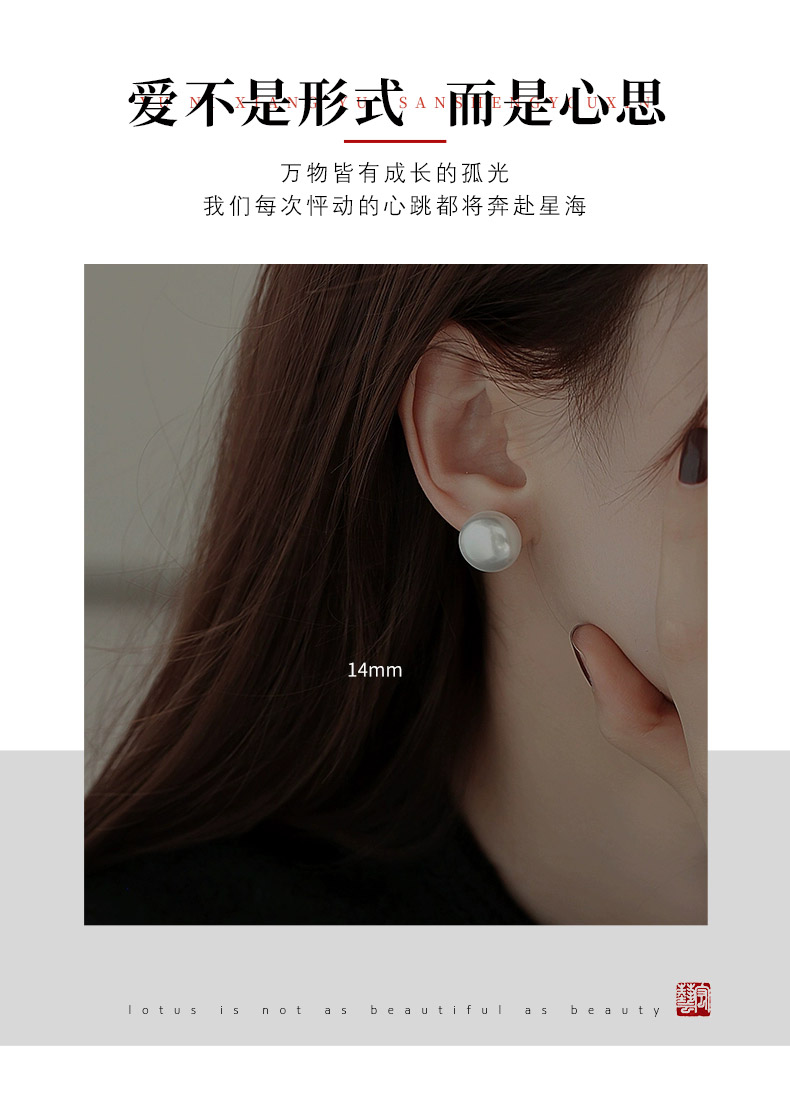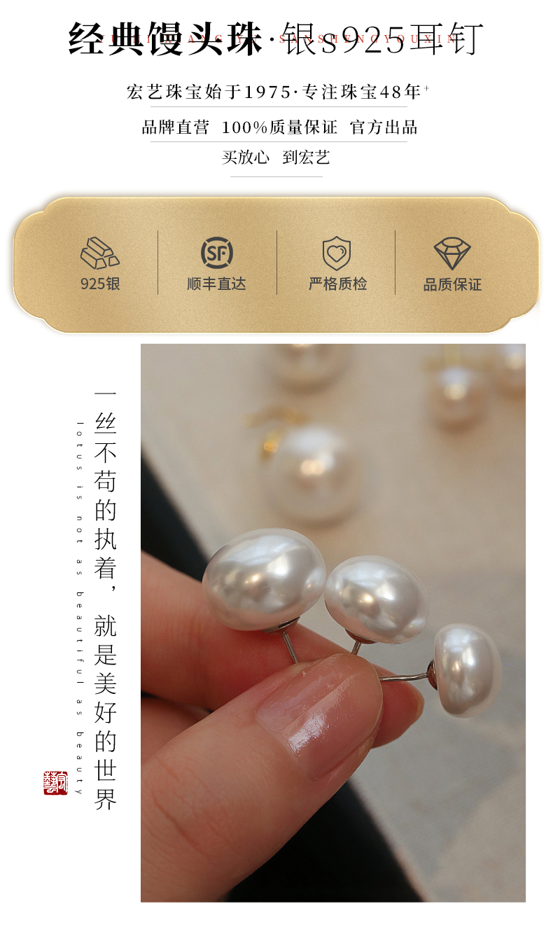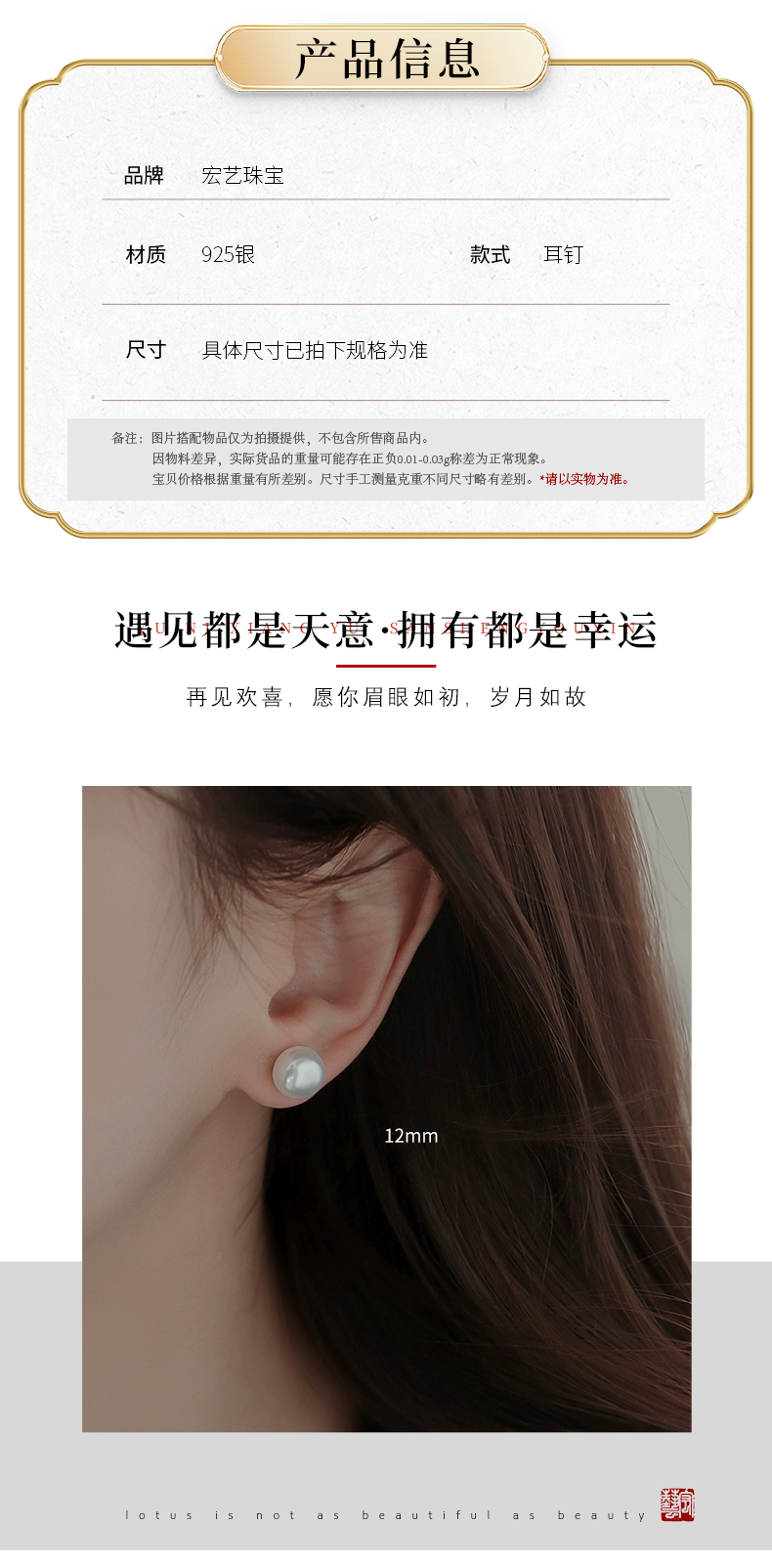 【宏艺珠宝】925纯银天然珍珠耳钉基础经典百搭馒头珠小巧个性养耳洞·银s925耳饰