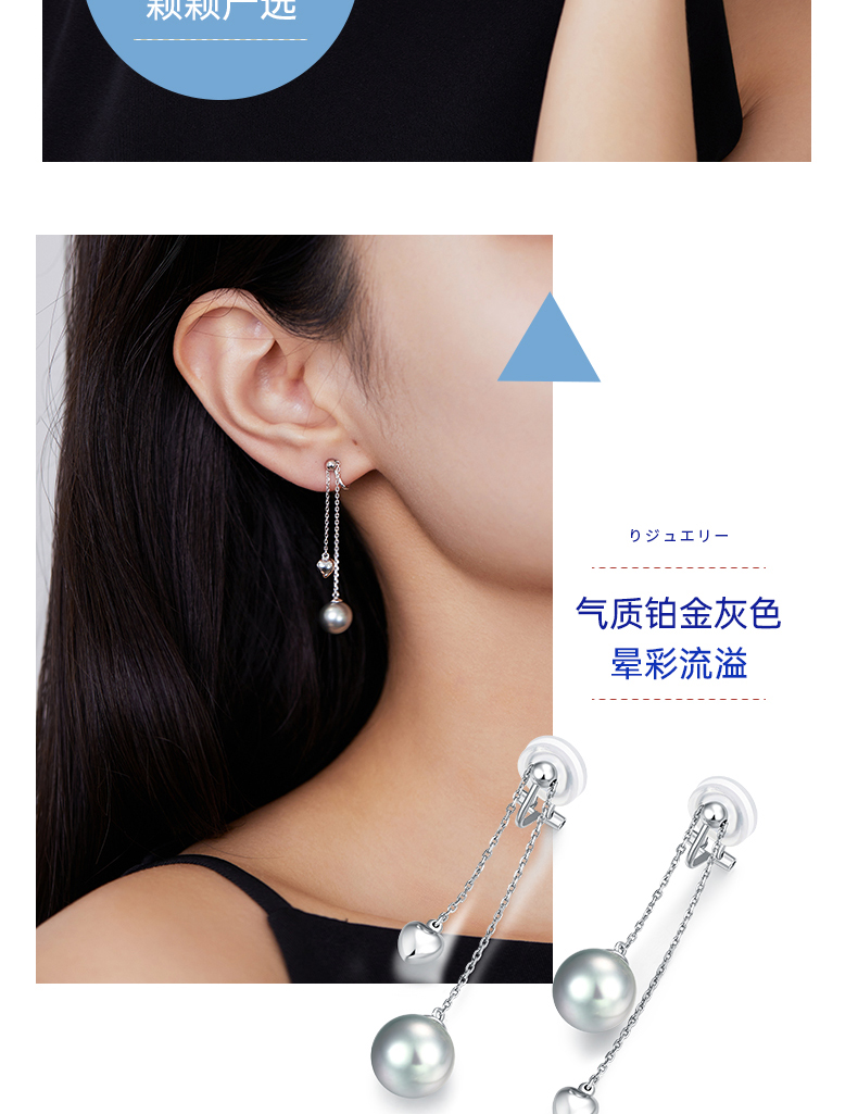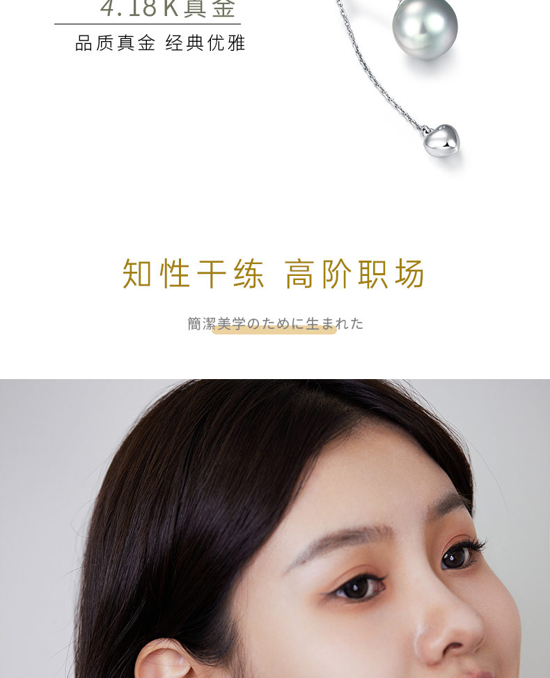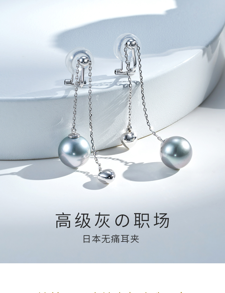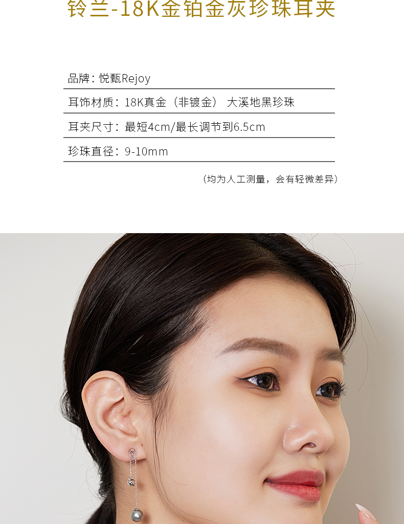 【天猫同款】悦甄 18K金铂金灰珍珠耳夹 铃兰