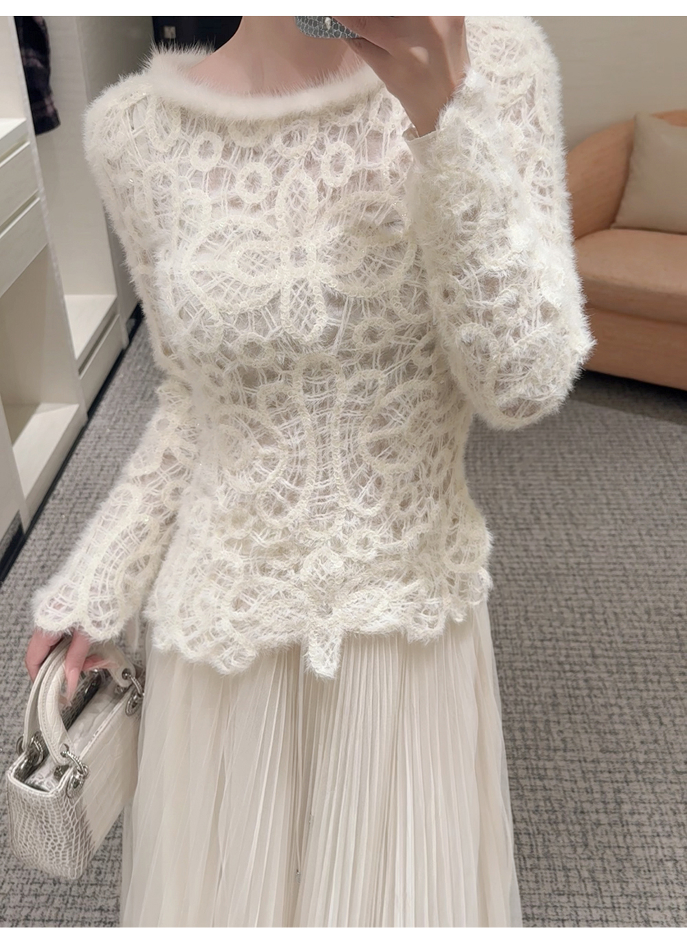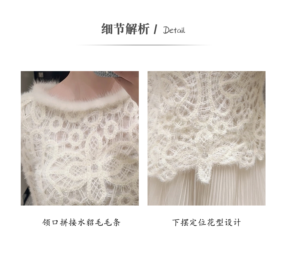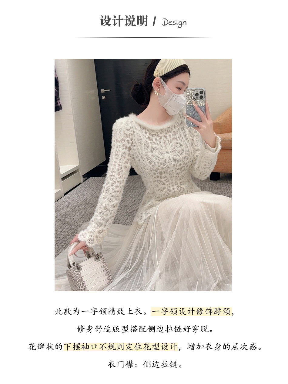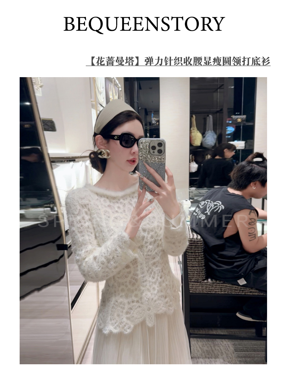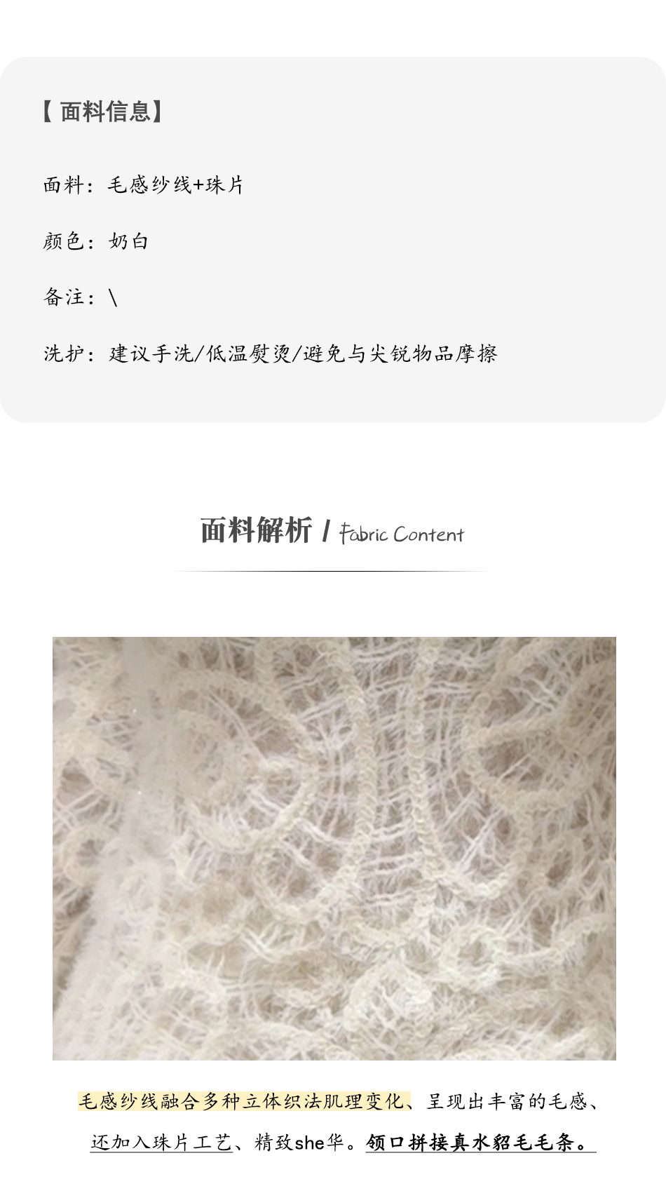 【孤品样衣,不退不换】 【花蔷曼塔】柔软时尚弹力针织拼接水貂毛圆领打底衫女