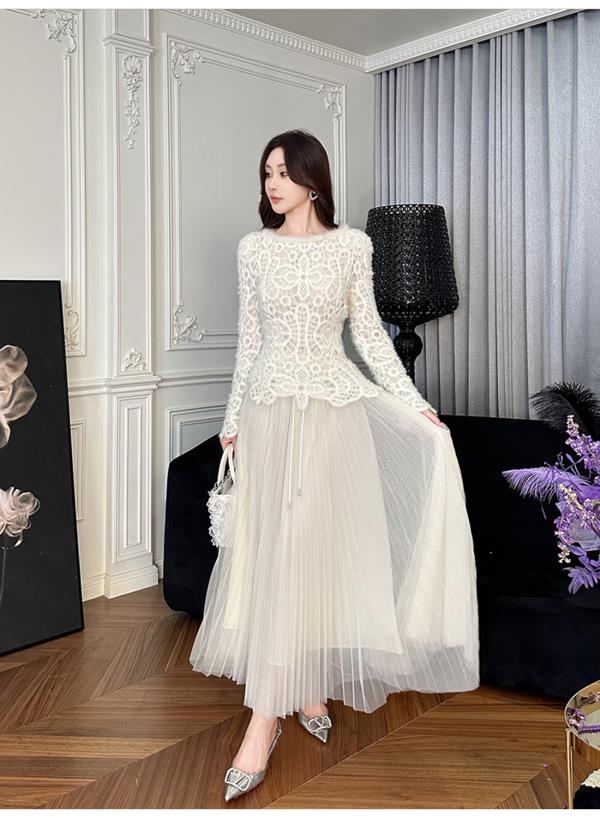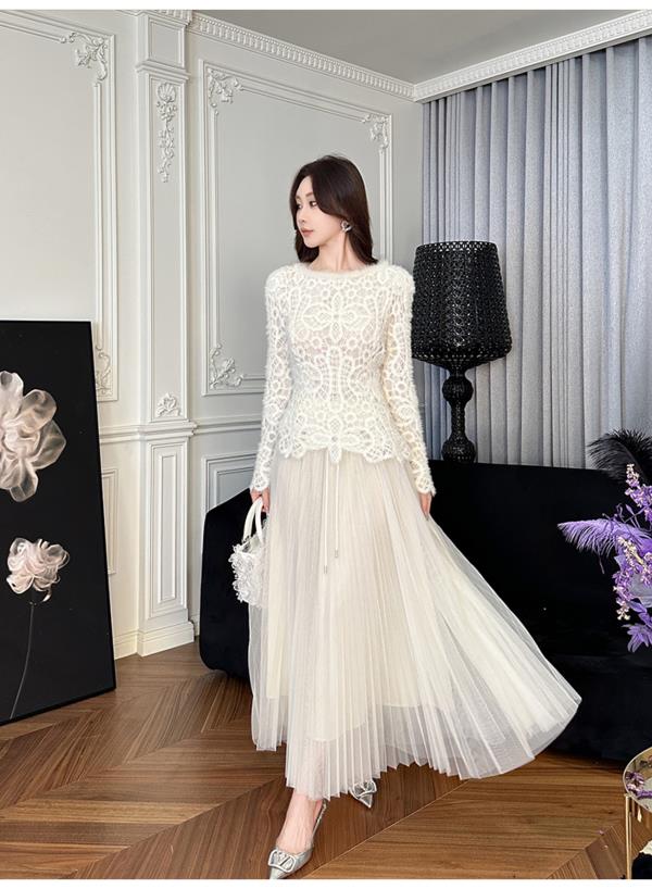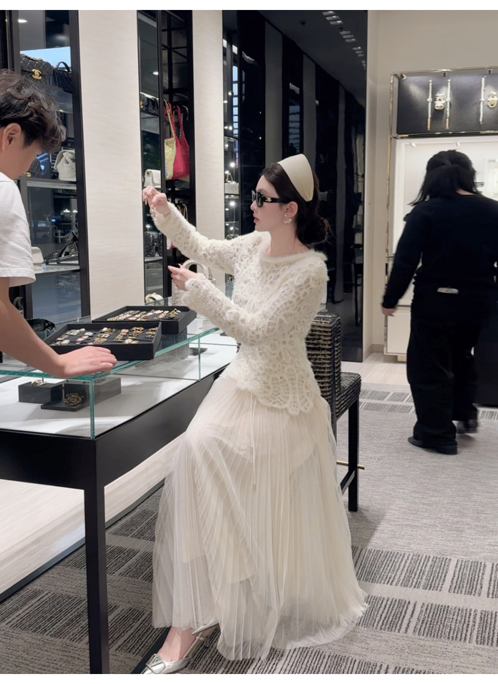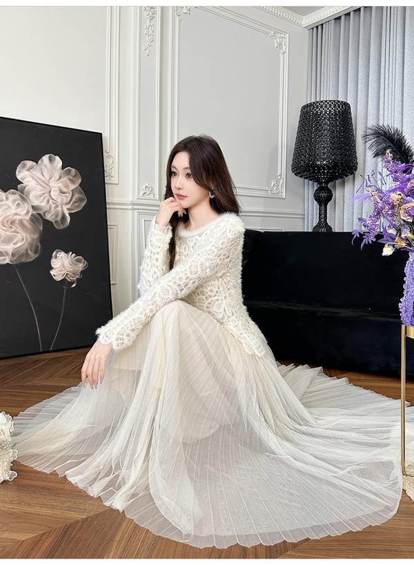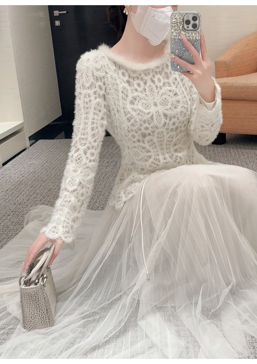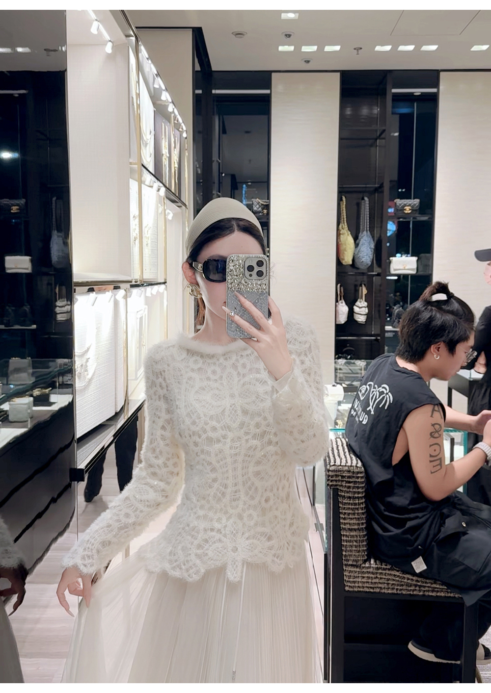 【孤品样衣,不退不换】 【花蔷曼塔】柔软时尚弹力针织拼接水貂毛圆领打底衫女