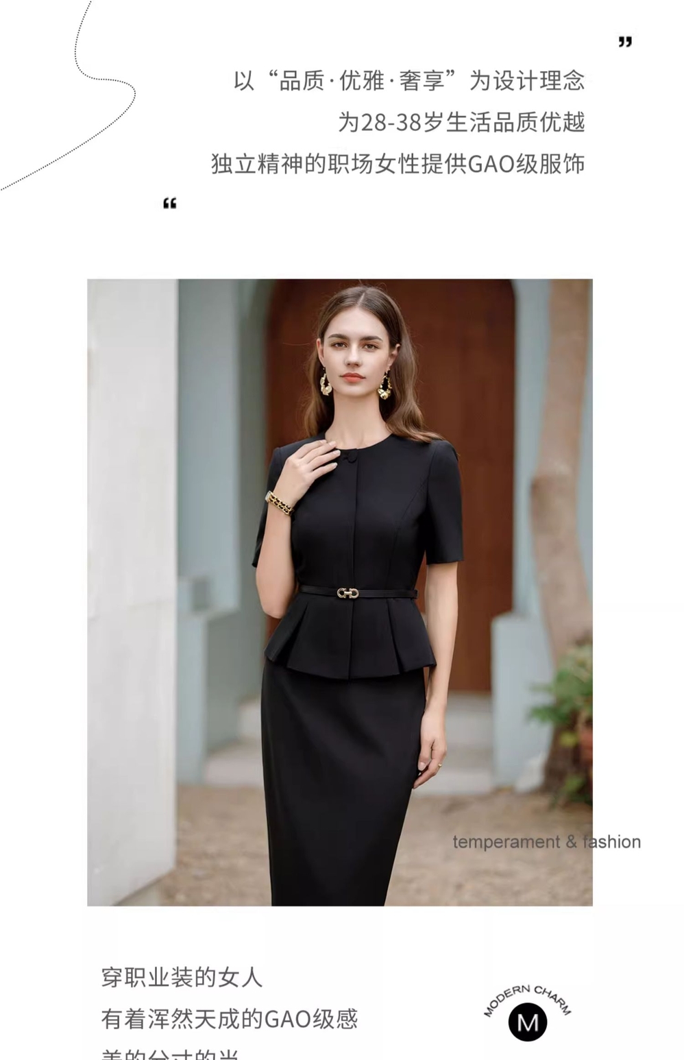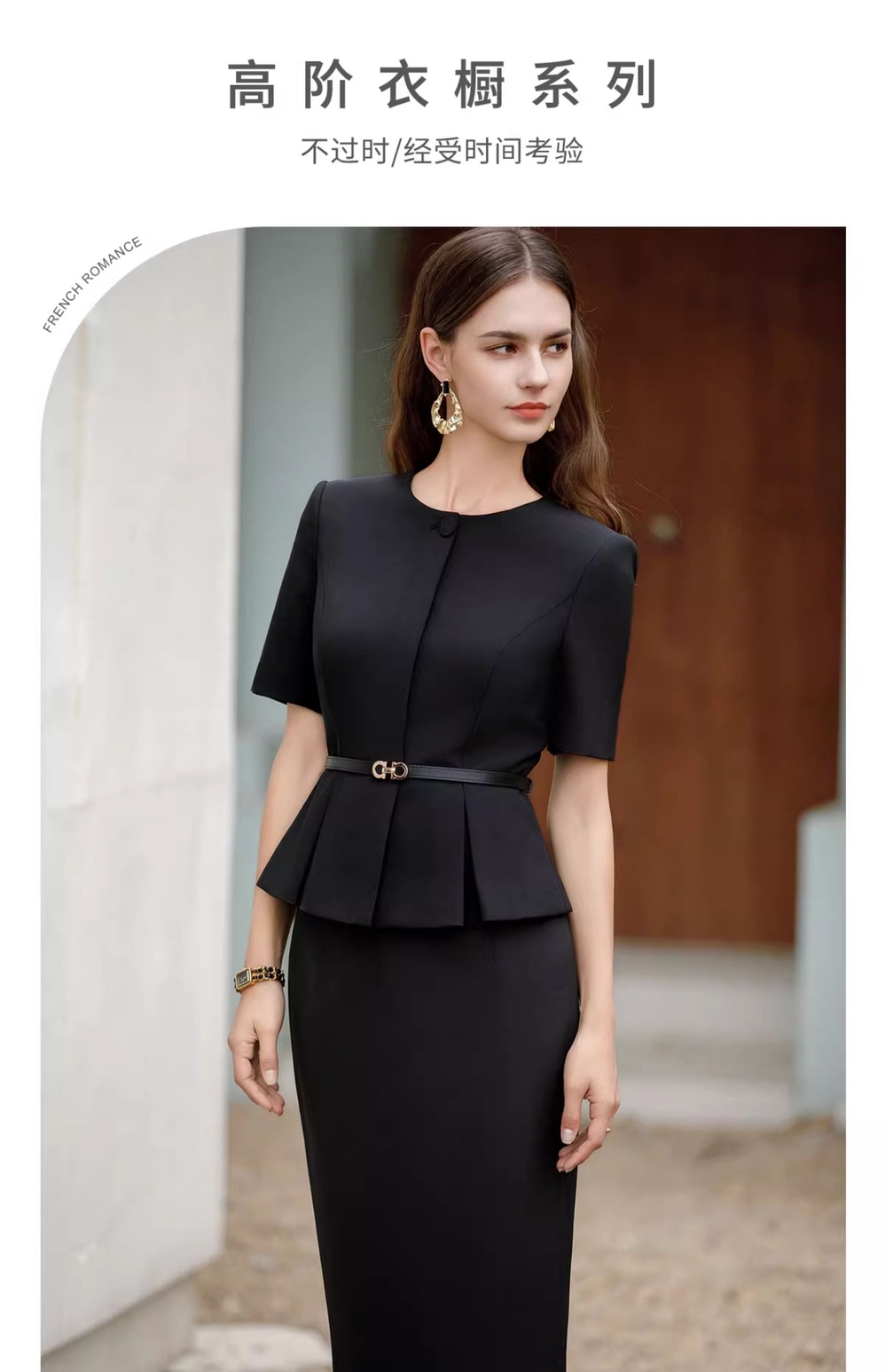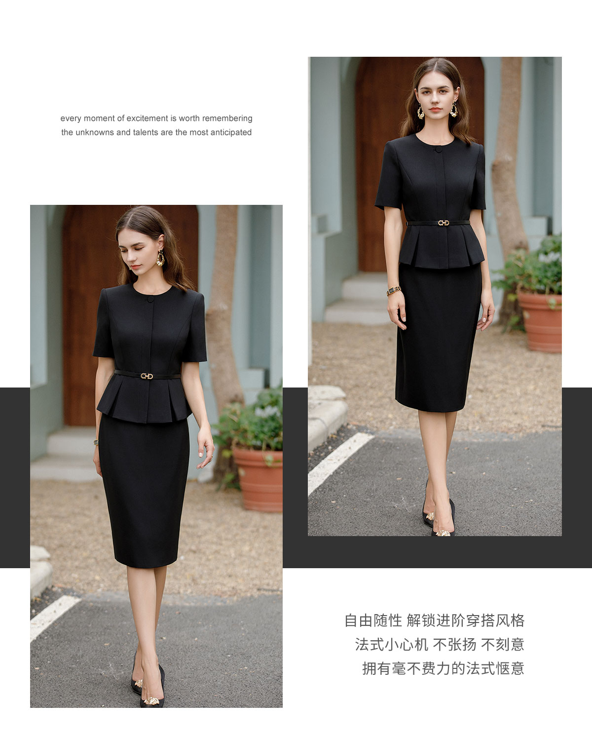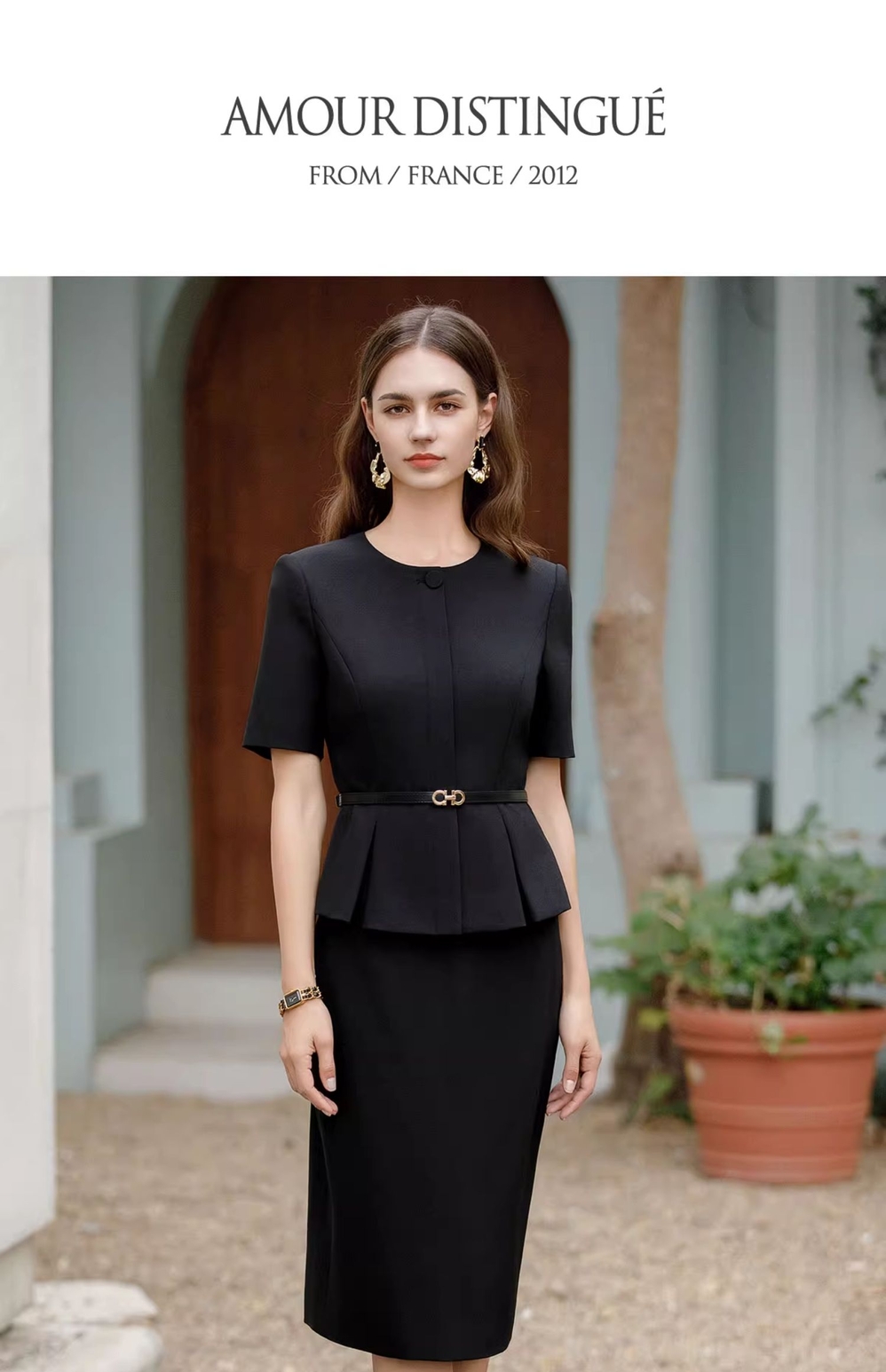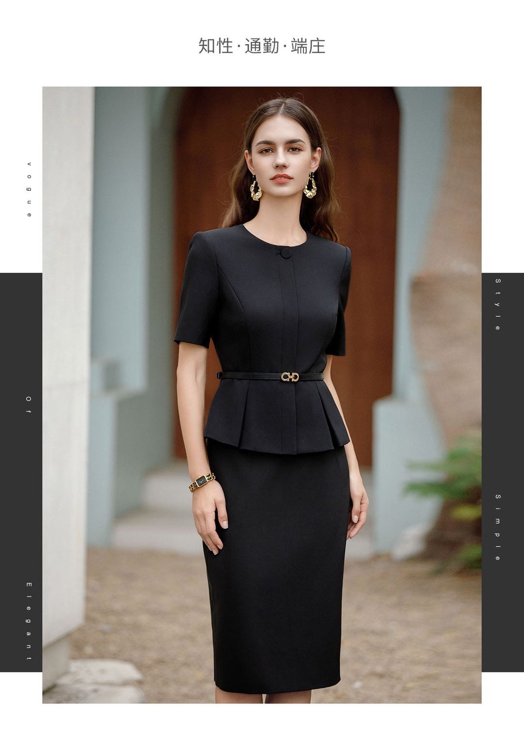 IWY/夏季短袖职业西装半裙黑色气质绑带显瘦西服裙职业女裙套装CS1974