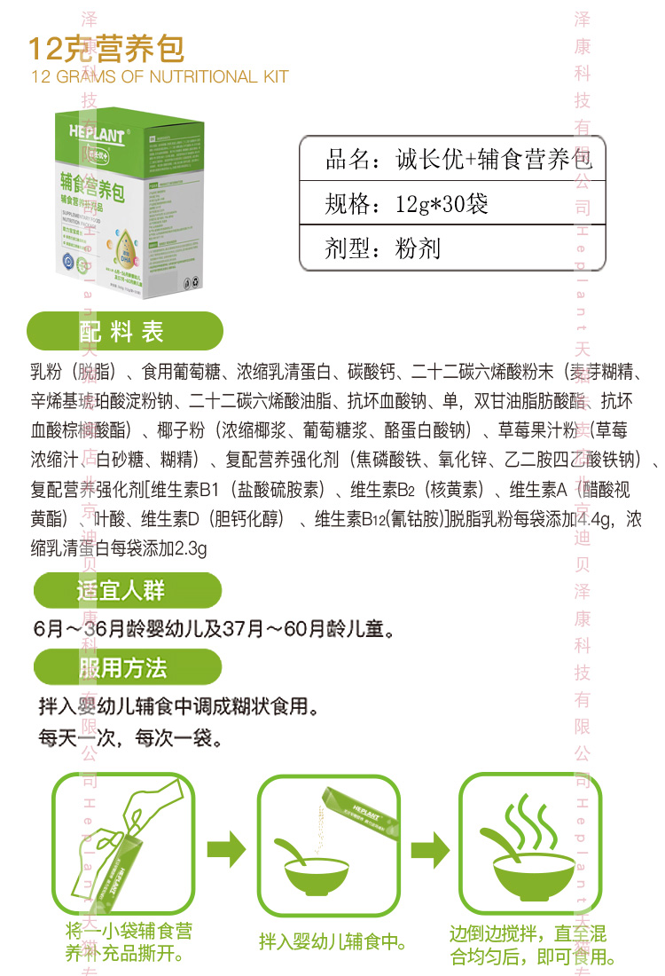 【Heplant】辅食营养包 含DHA+钙铁锌B族多种维生素 改善营养不良