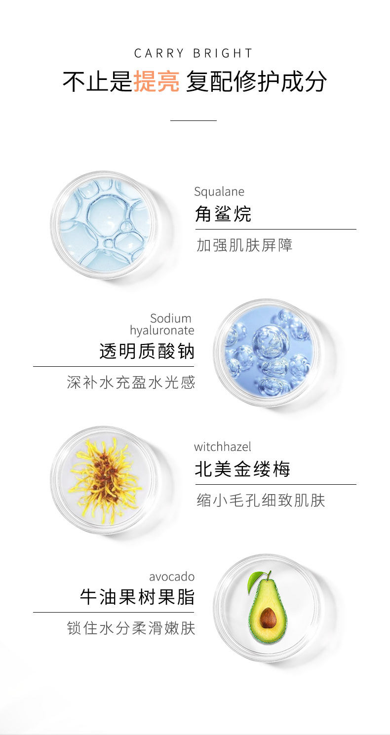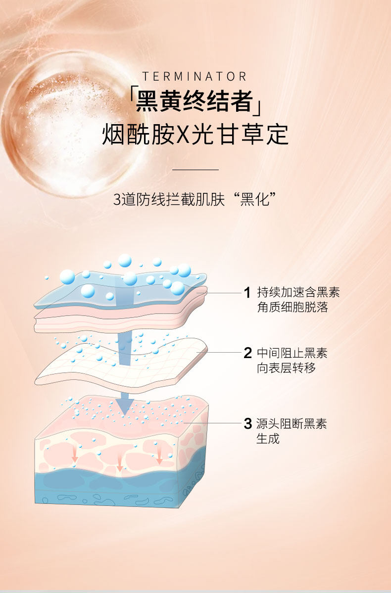 加上烟酰胺和光甘草定等多种草本提亮皮肤变得通透有光泽,就像打了水光针一样