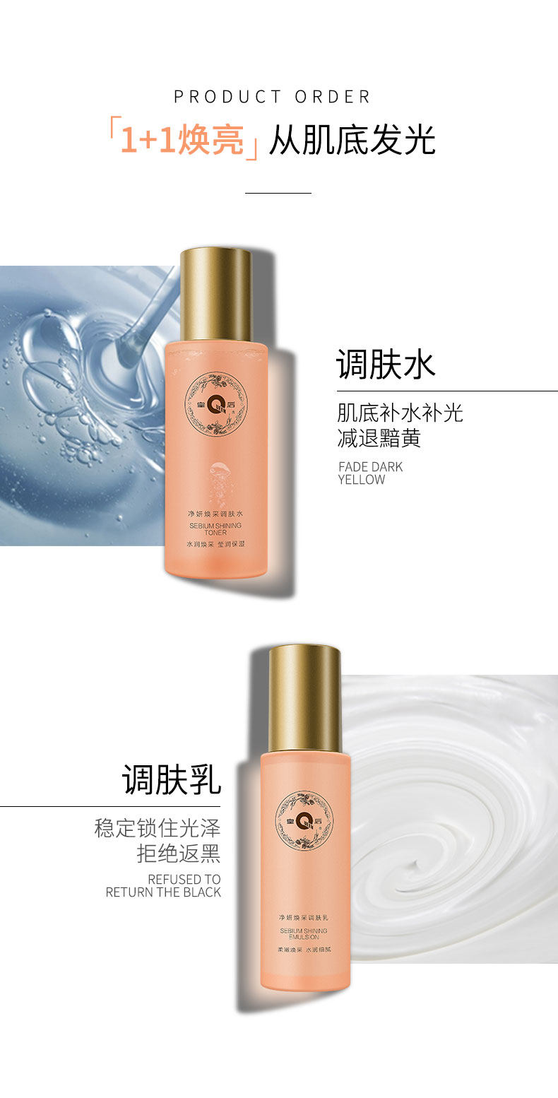 净妍焕采调肤水,深入肌底,滋养保湿,为淡斑打基础。
