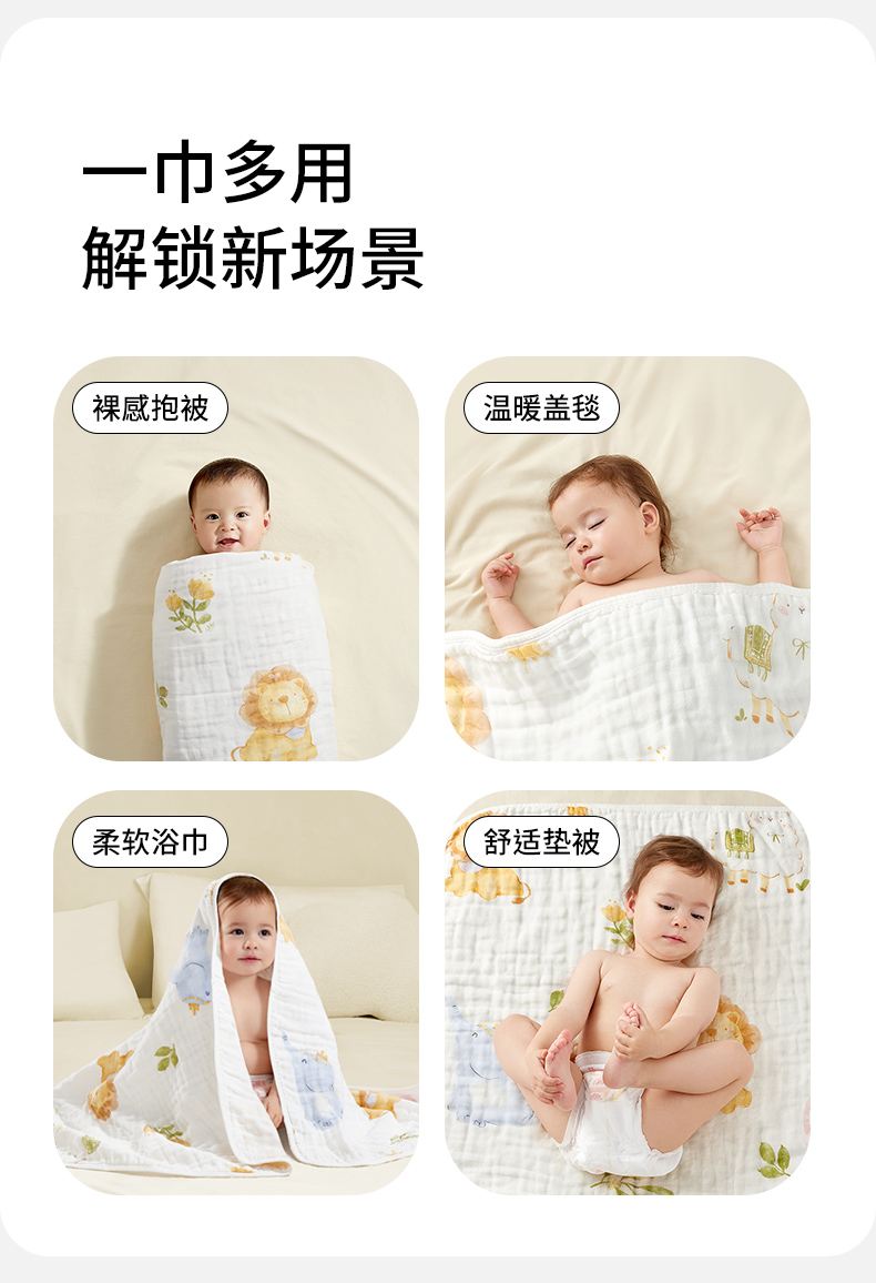 【爆】婴儿浴巾新生纱布纯棉宝宝儿童专用初生超软全棉大尺寸秋冬6层a类