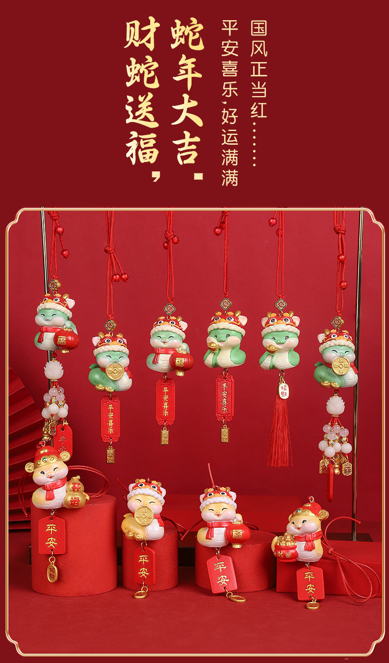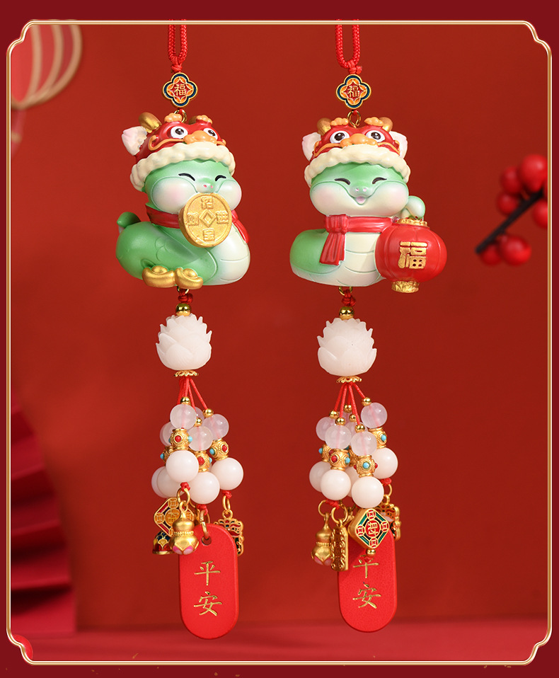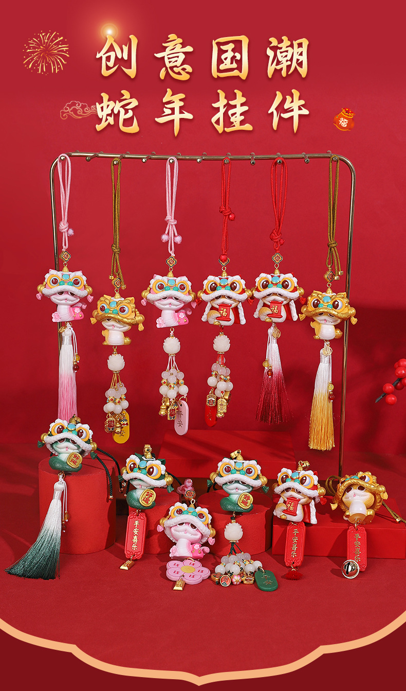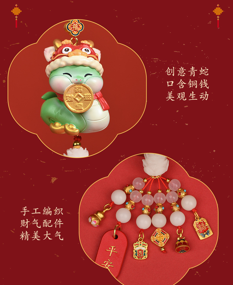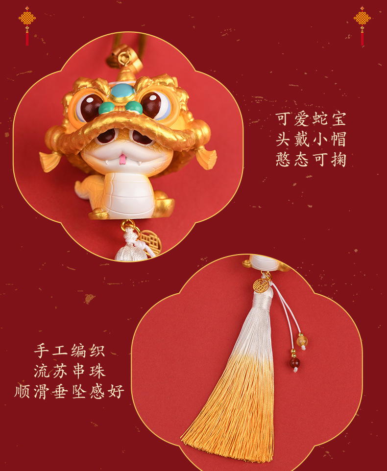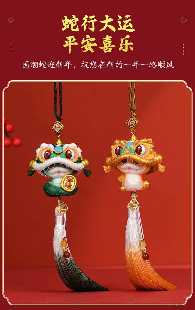 【2025国潮蛇年挂件】汽车挂饰 车内后视镜醒狮吊坠 车载新年礼物生肖蛇