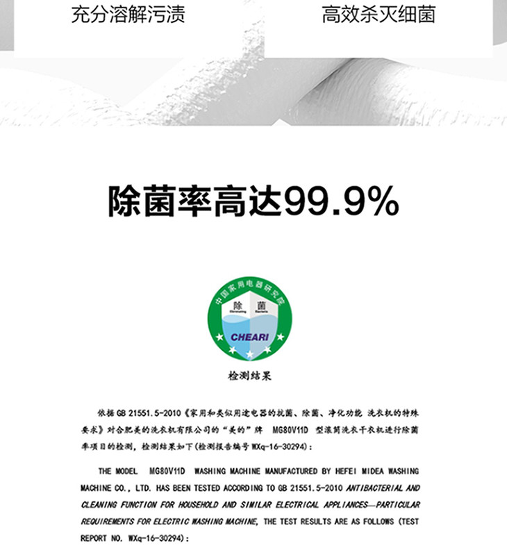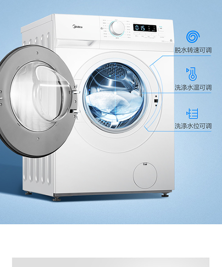 美的(Midea)滚筒洗衣机全自动 8公斤 食用级巴氏除菌洗 8KG大容量 95度高温筒自洁 MG80V11D