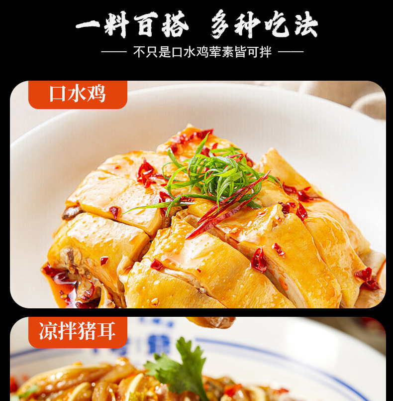 超值3包装!【一包料好味道,秒变大厨!】口水鸡调料 手撕鸡凉拌汁 红油凉拌菜辣椒油 餐饮70g1包-QA