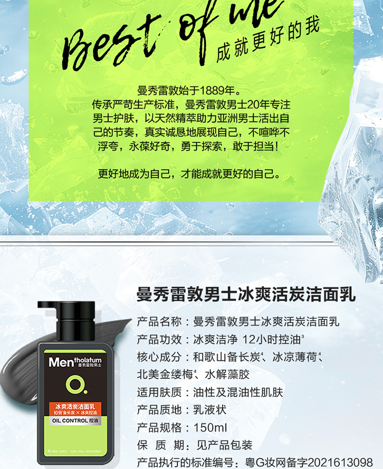 曼秀雷敦男士冰爽活炭洁面150g(4805006)