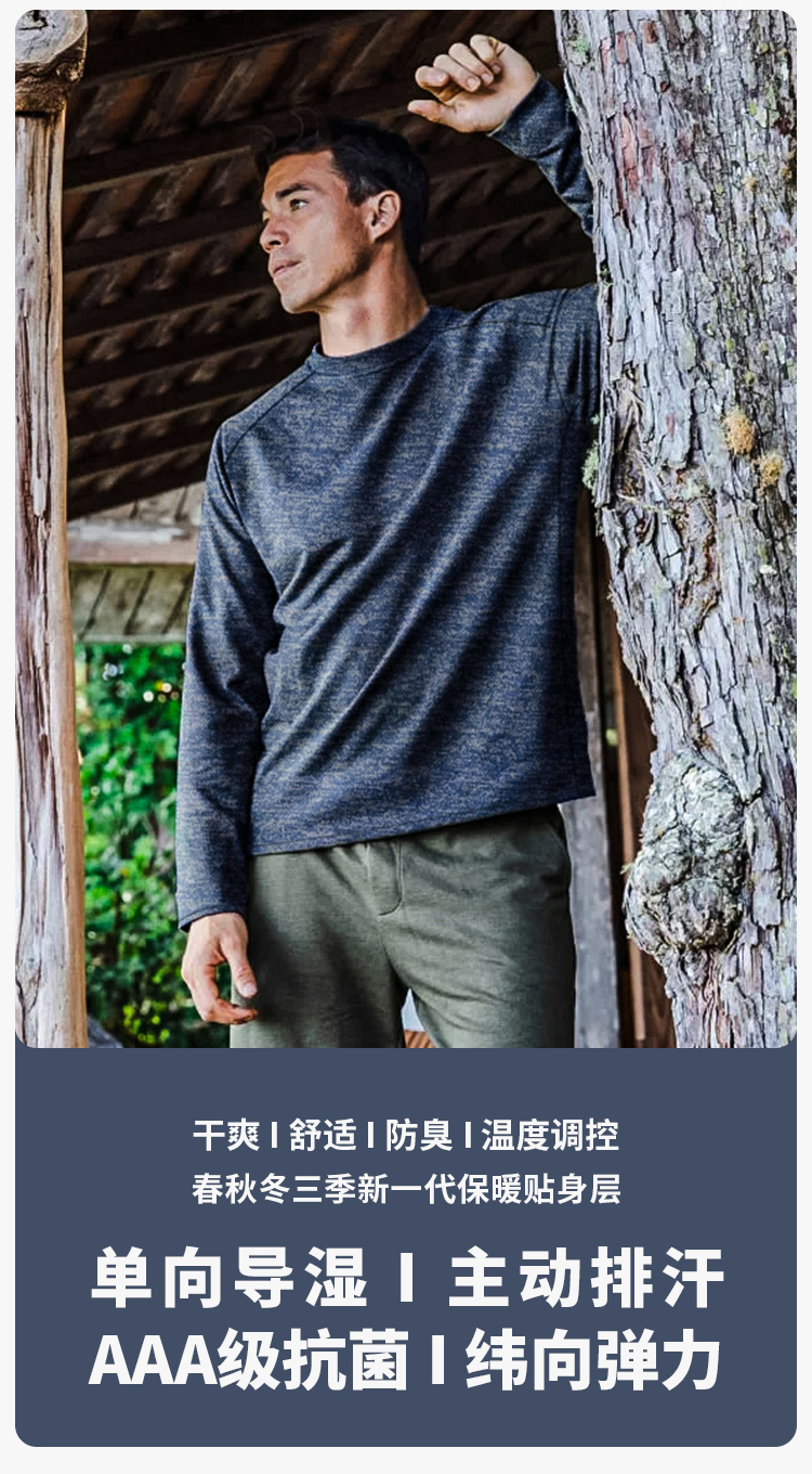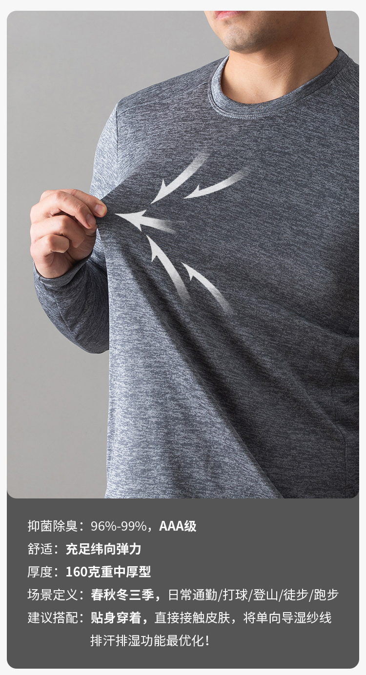 男士保暖衣主动排汗单向导湿抑菌除臭抓绒厚T恤打底通勤户外-6017