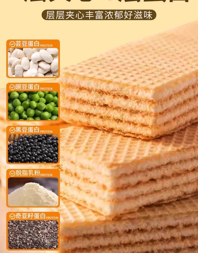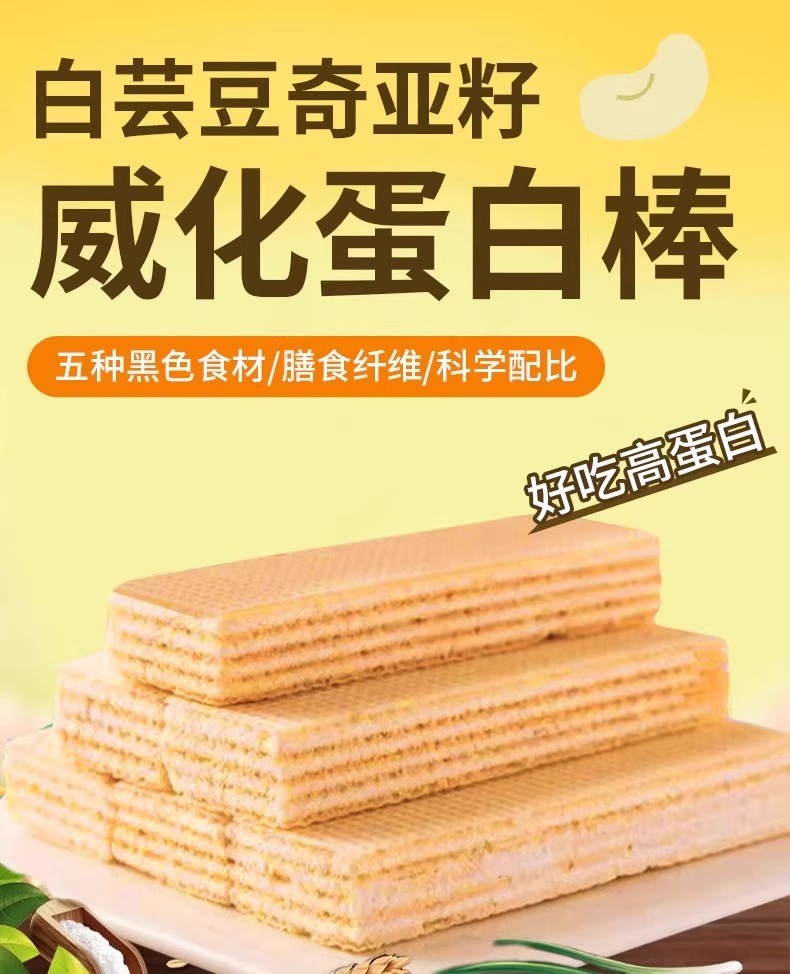 【3盒】白芸豆奇亚籽威化蛋白棒、无蔗糖威化饼干、营养早餐代餐零食、独立小包装、200g/盒