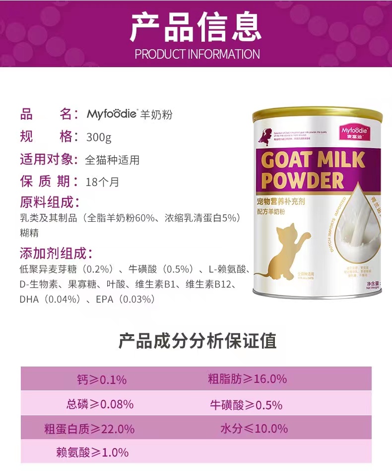 麦富迪猫咪羊奶粉300g猫猫专用幼猫成猫宠物怀孕营养品补钙保健品