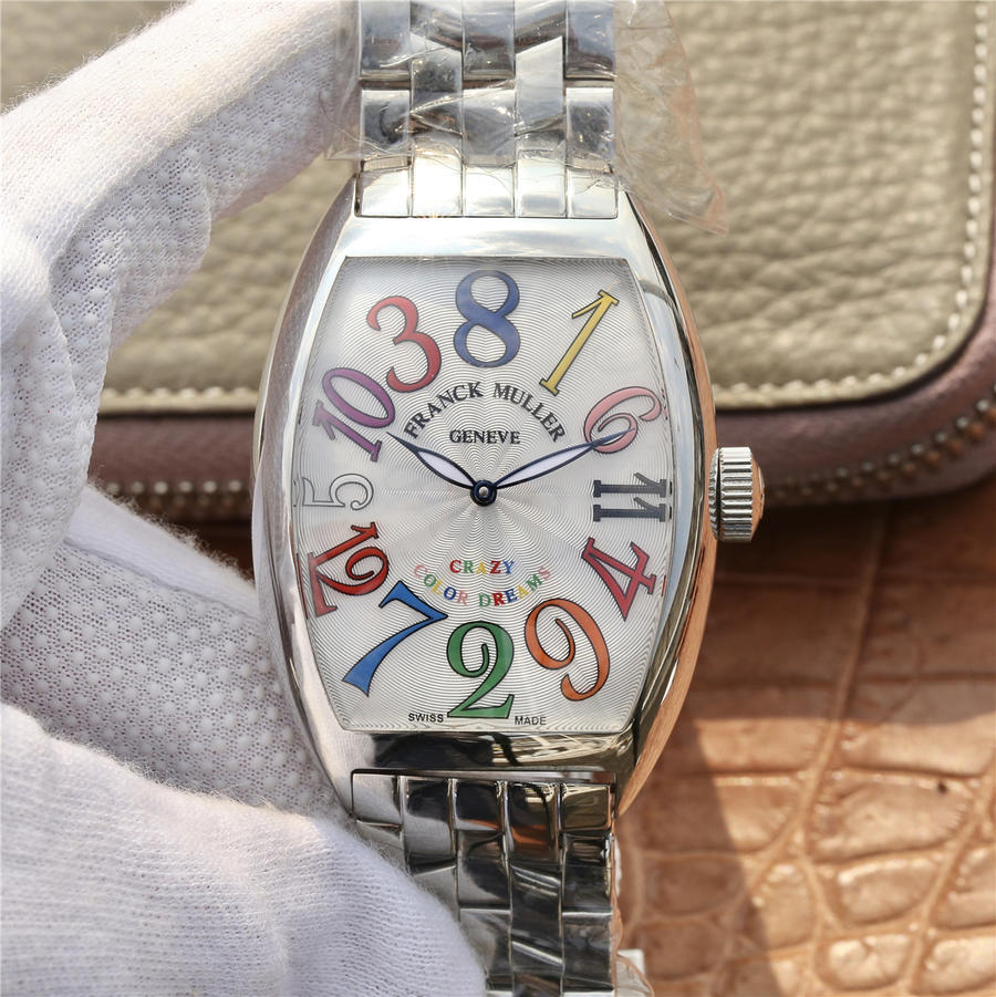法兰克穆勒全新升级版 Crazy Hours乱跳腕表,突破传统方式显示时间,定制版FM2001 自动上链机械机芯 原装1:1 功能 暗喻不拘一格的独立型格,蓝宝石镜面 永不刮花 1:1 原装壳套可以通用 烧蓝钢超级夜光指针 搪瓷表盘经过十几道工序制作而成,不惜代价还原正品! 复古摩登与现代张扬兼具,佩戴于腕间,彰显独特品味。